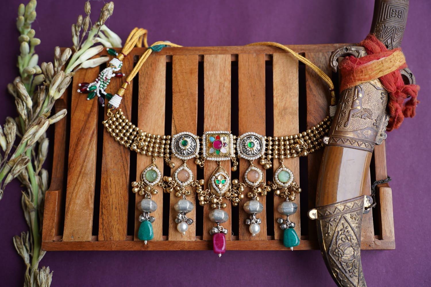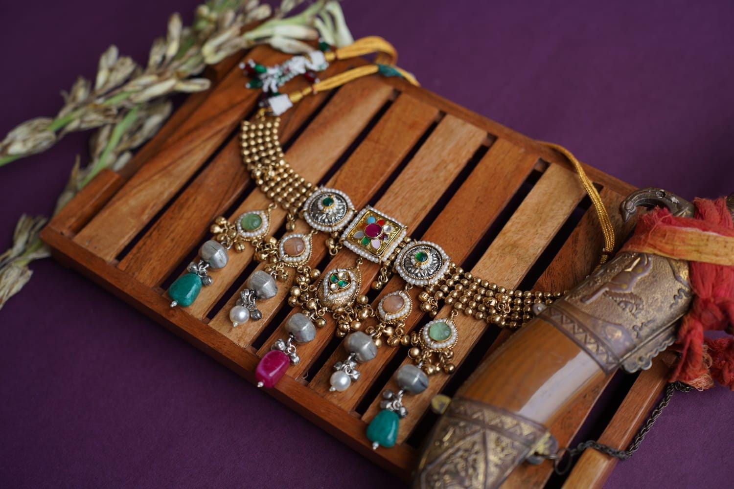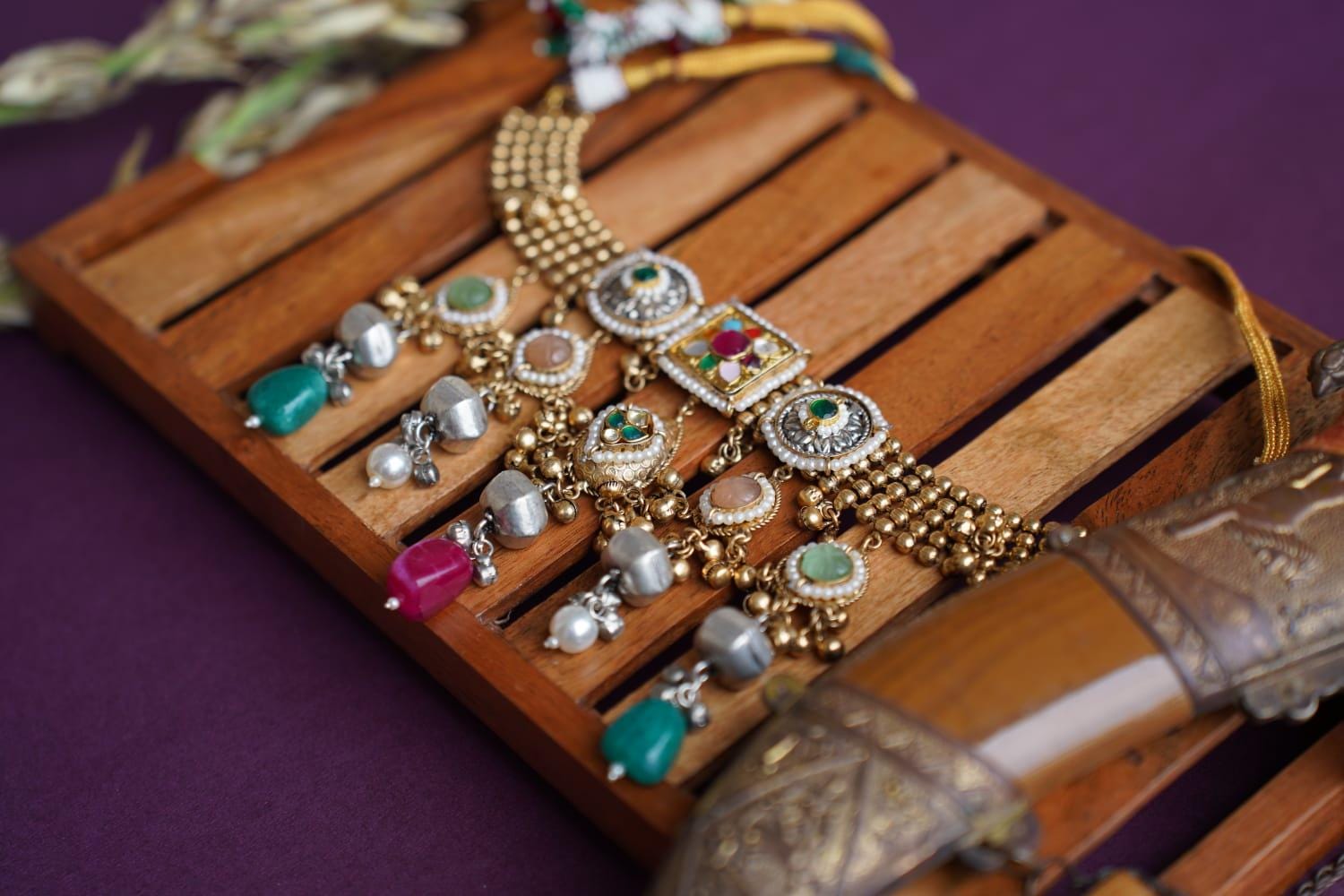From the bold green stones to the intricate carvings and playful ghungroos, every detail tells a story of timeless craftsmanship and royal grace. 💚💛🔔
