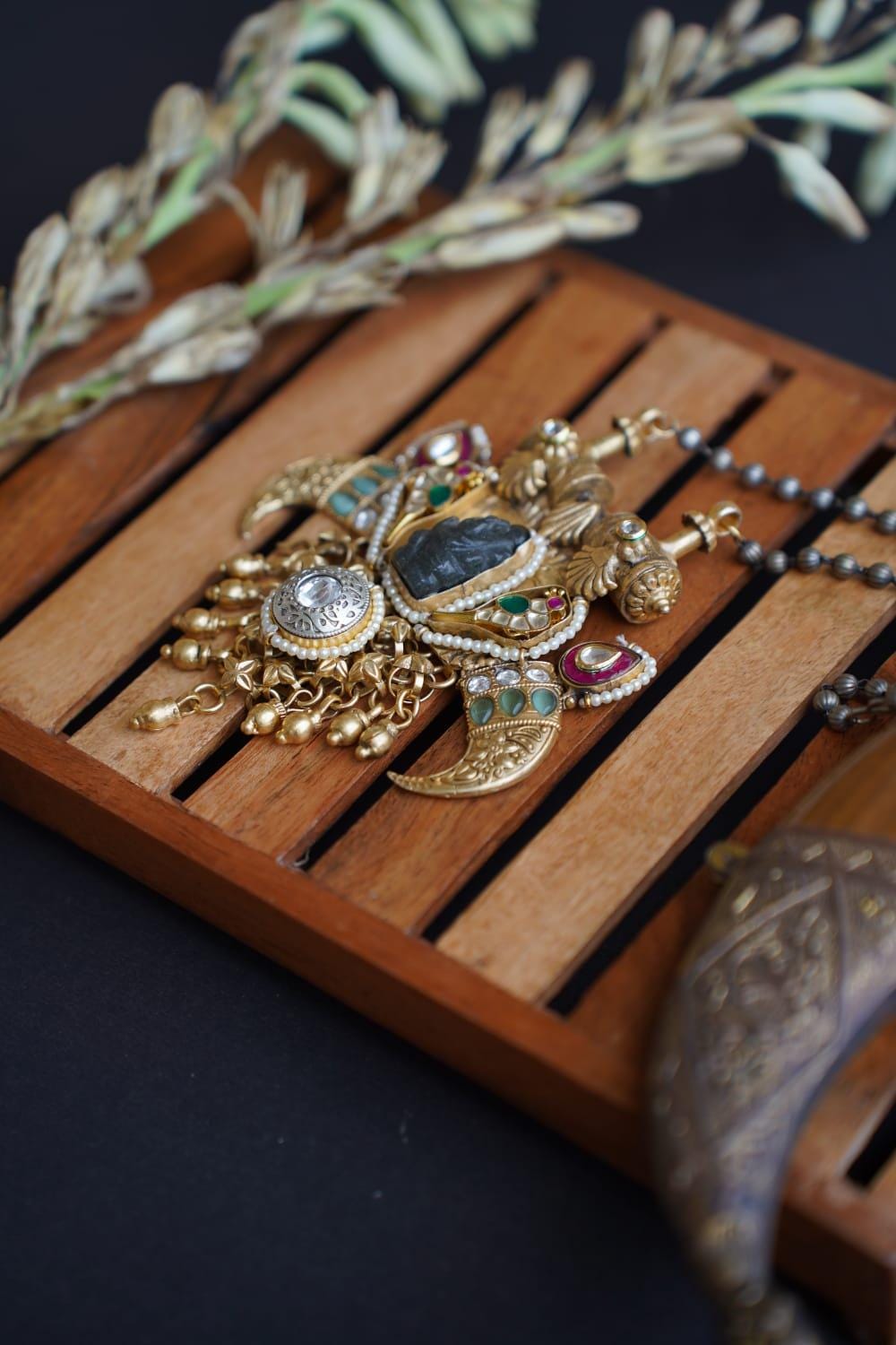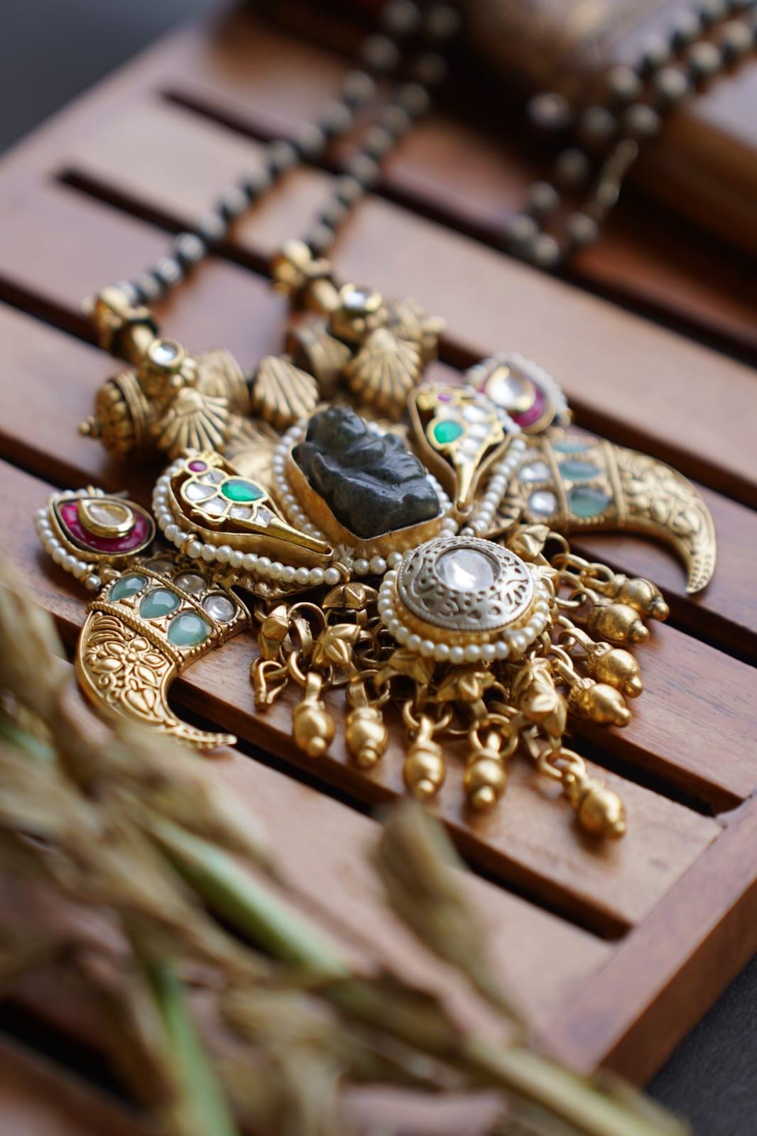From the bold green stones to the intricate carvings and playful ghungroos, every detail tells a story of timeless craftsmanship and royal grace. 💚💛🔔