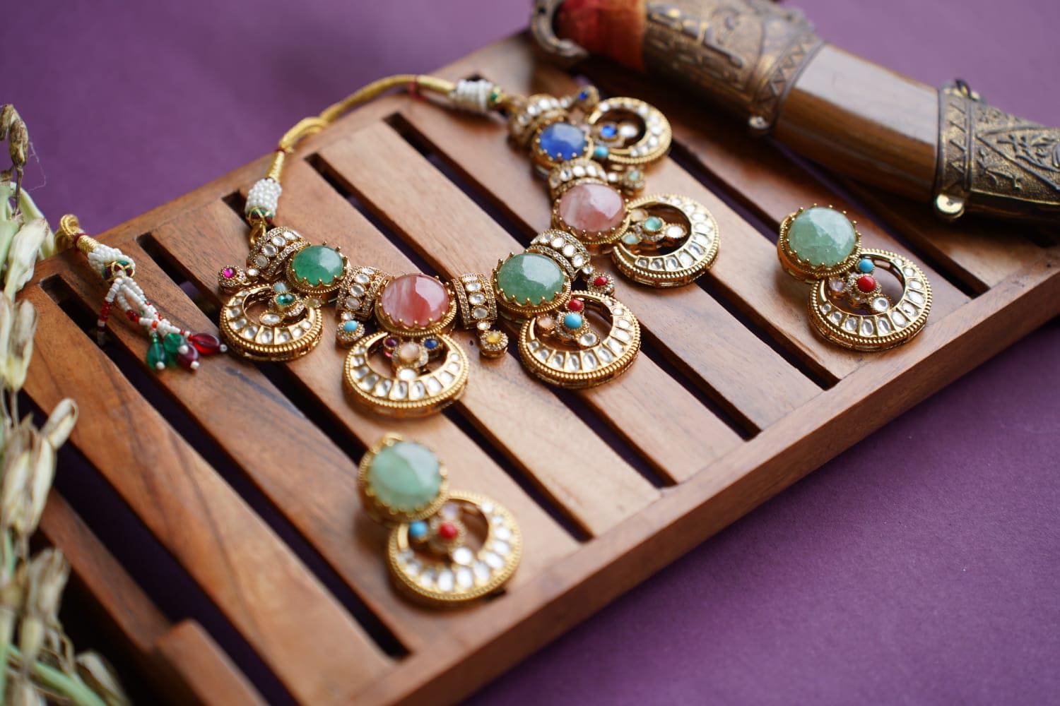From the bold green stones to the intricate carvings and playful ghungroos, every detail tells a story of timeless craftsmanship and royal grace. 💚💛🔔