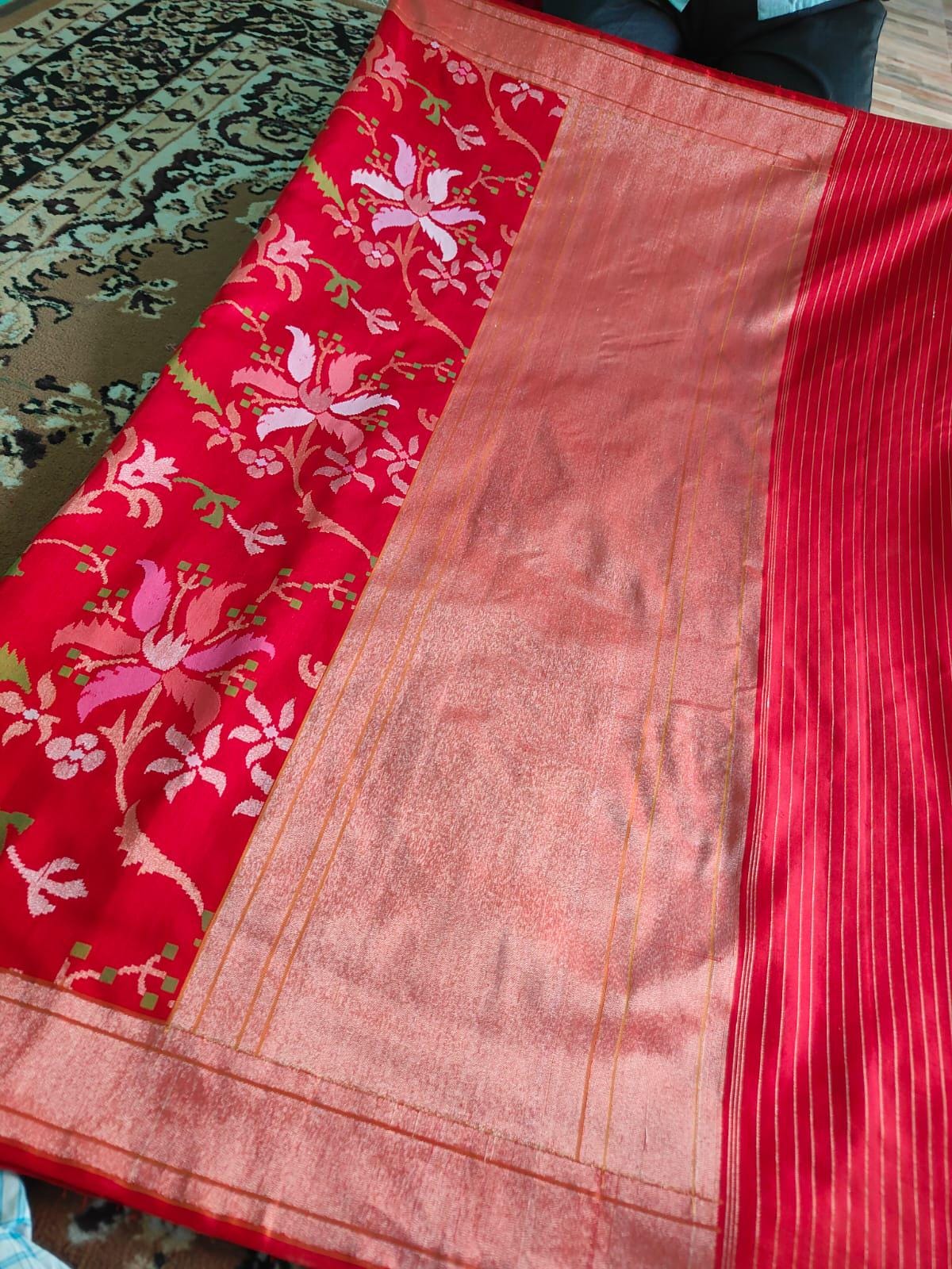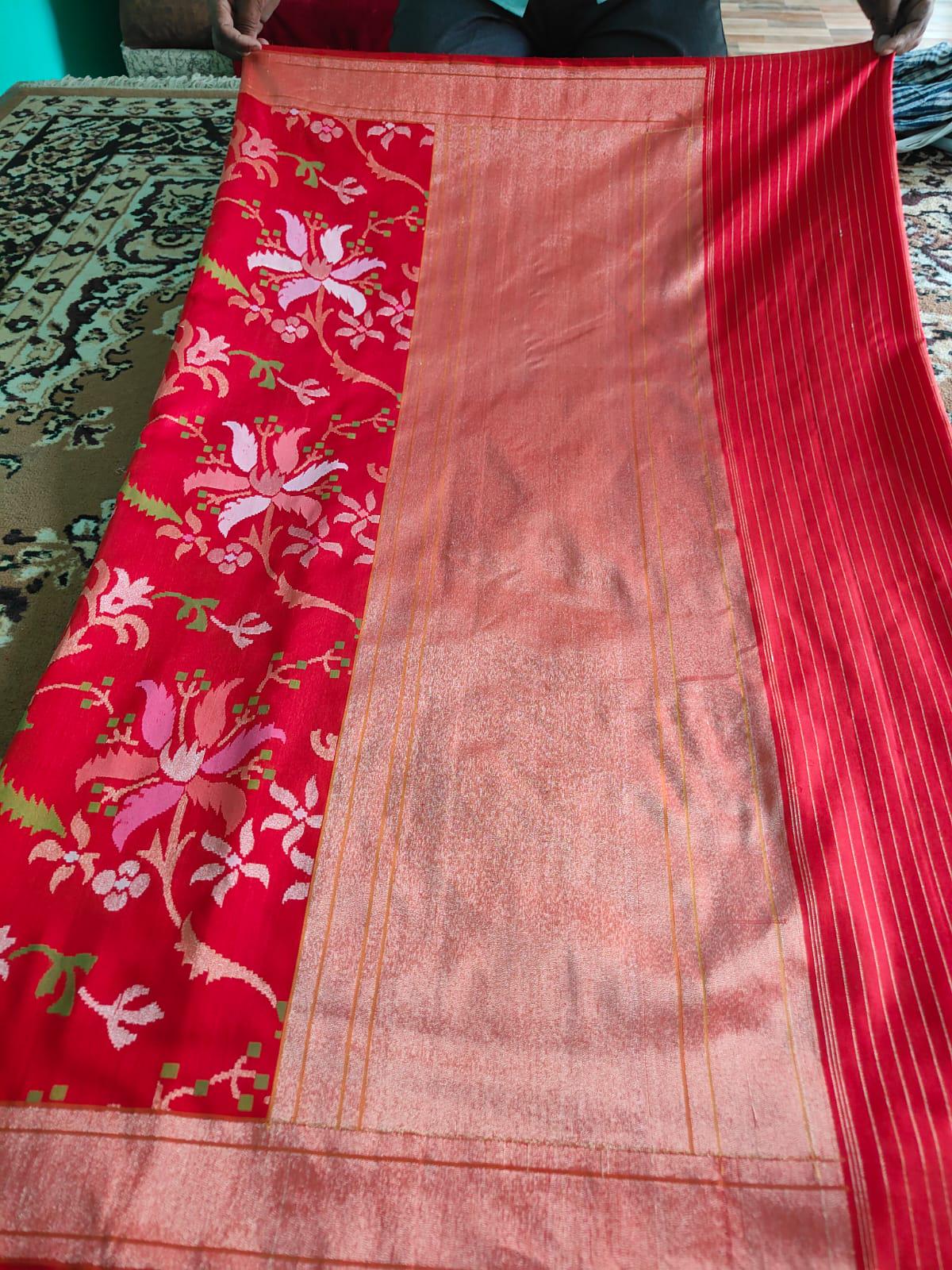 Katan Real gold Zari Saree by handloom weavers of Banaras, silk mark certified.