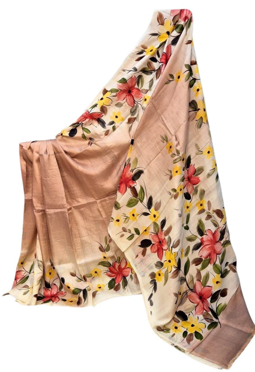 Handloom Katan Silk Saree, Bishnupur Block Print, Wedding Rangkat Sona Ropa