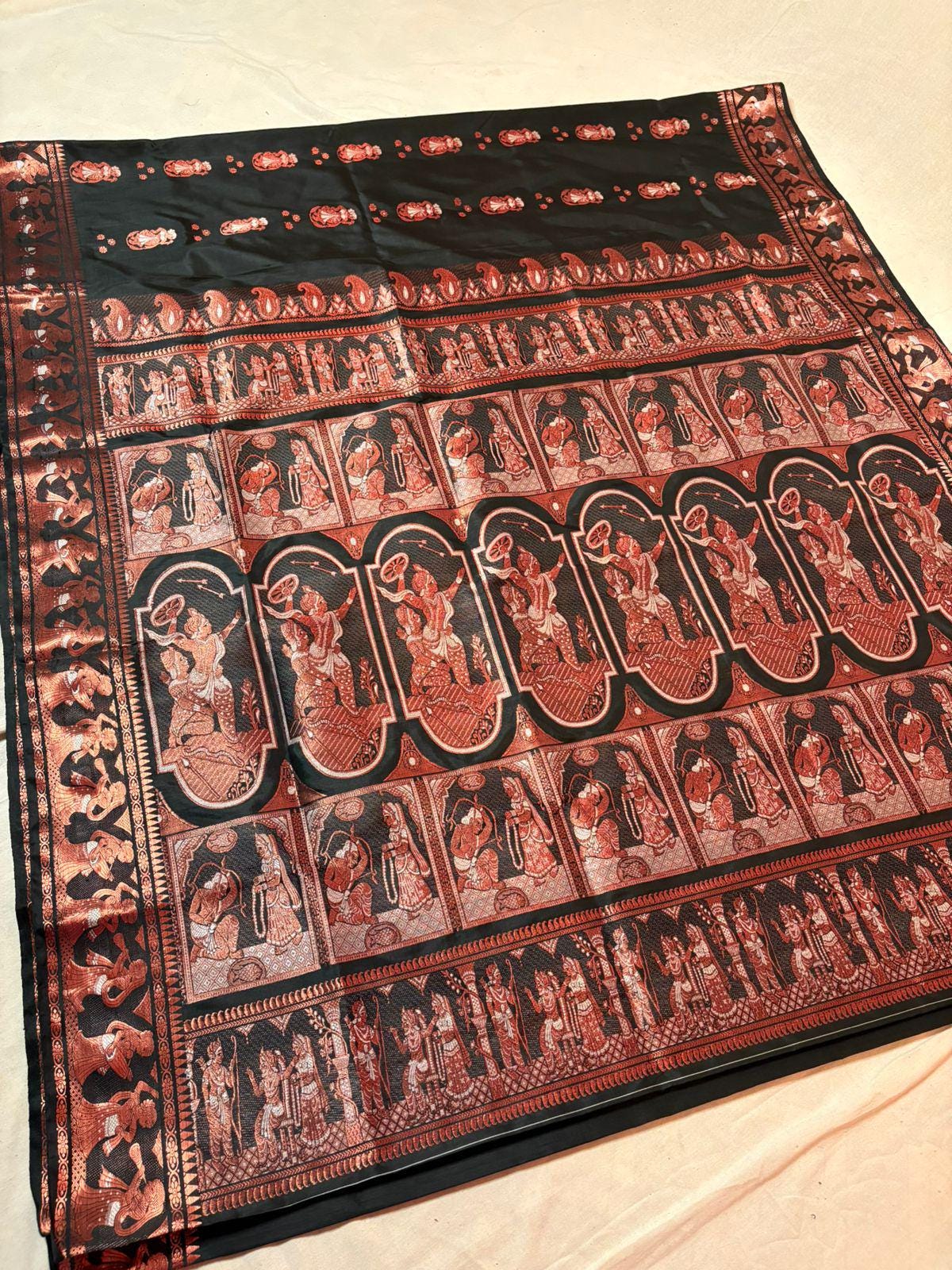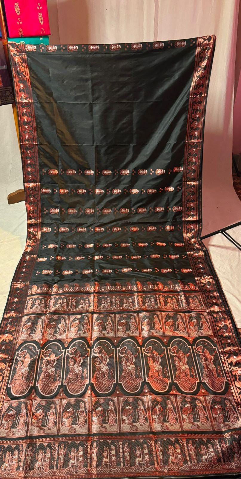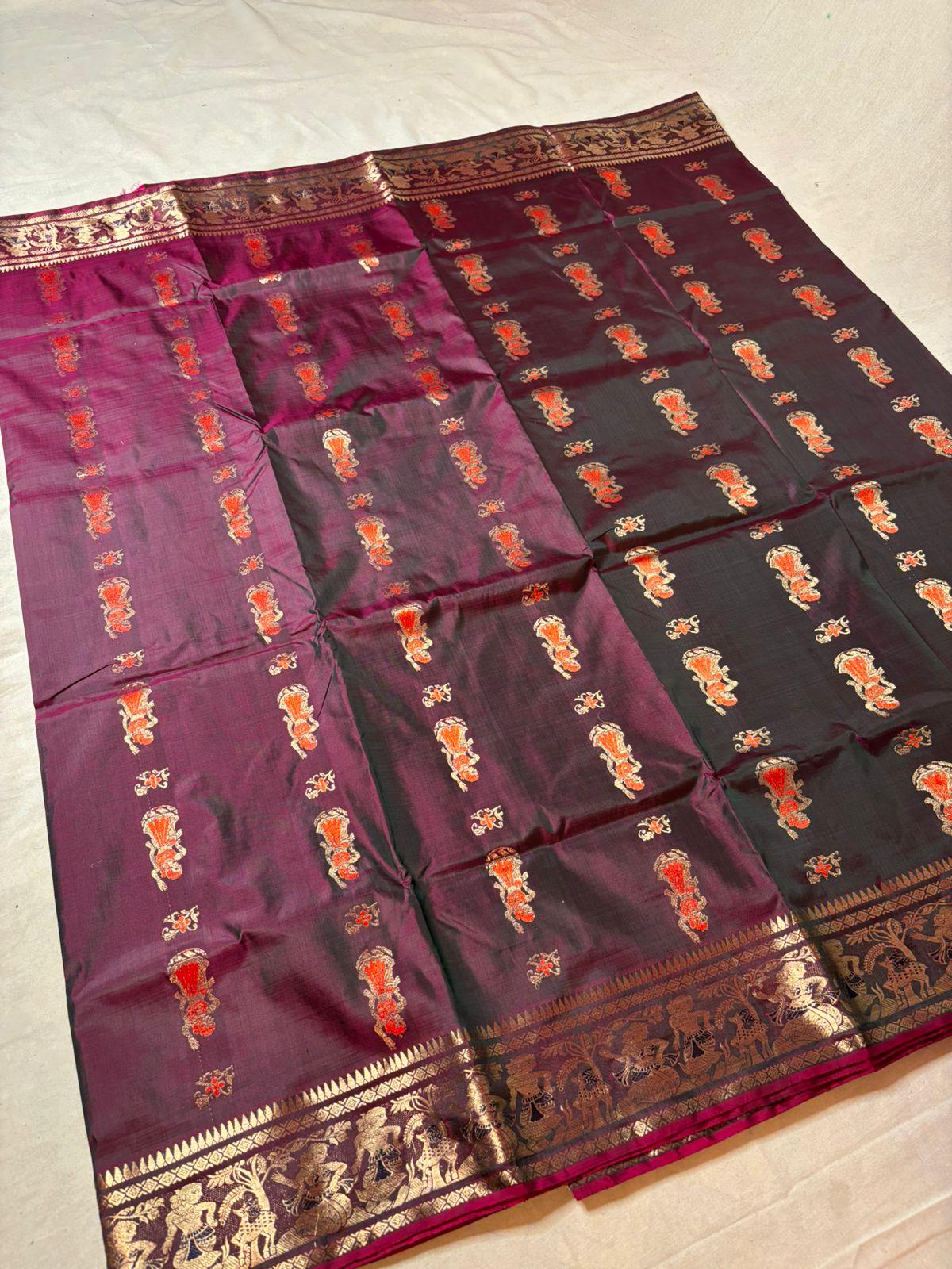 Experience the luxury of weaving Katan bishnupuri Silk, adorned with exquisite handloom Weave and a stunning organic Kolkata silk weave. This saree is a perfect fusion of heritage and contemporary elegance, making it ideal for weddings, festive occasions, and grand celebrations. A timeless masterpiece for your ethnic collection!