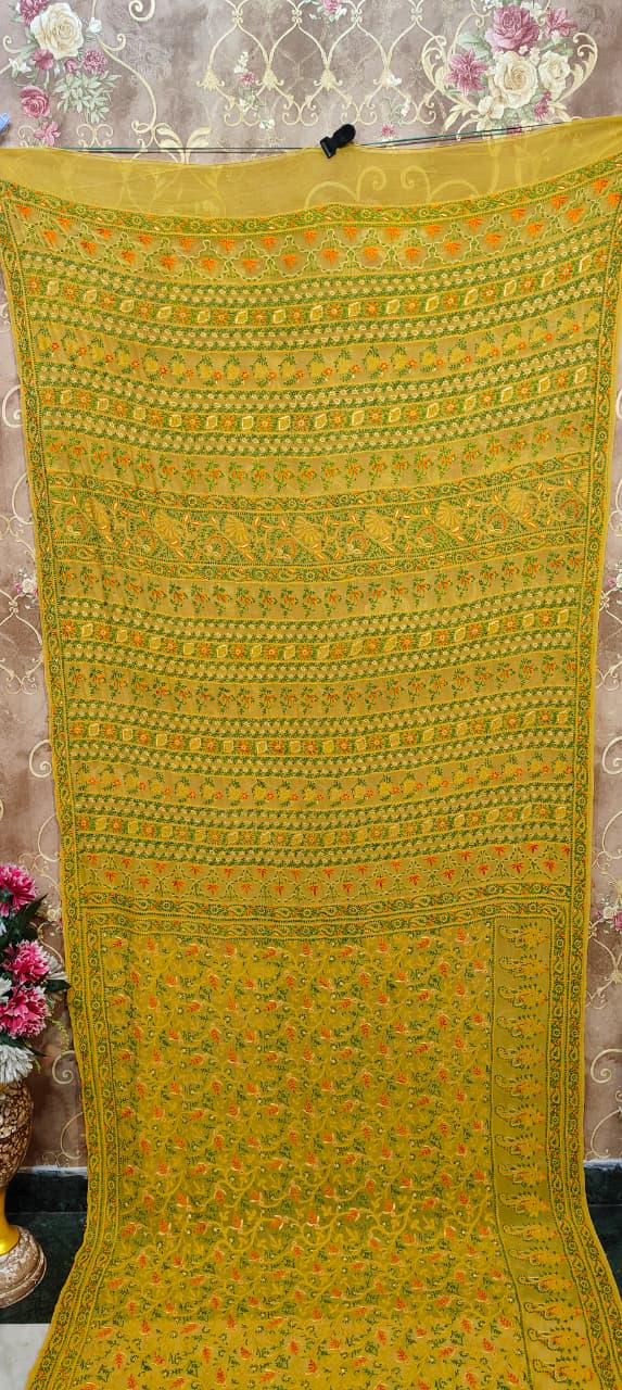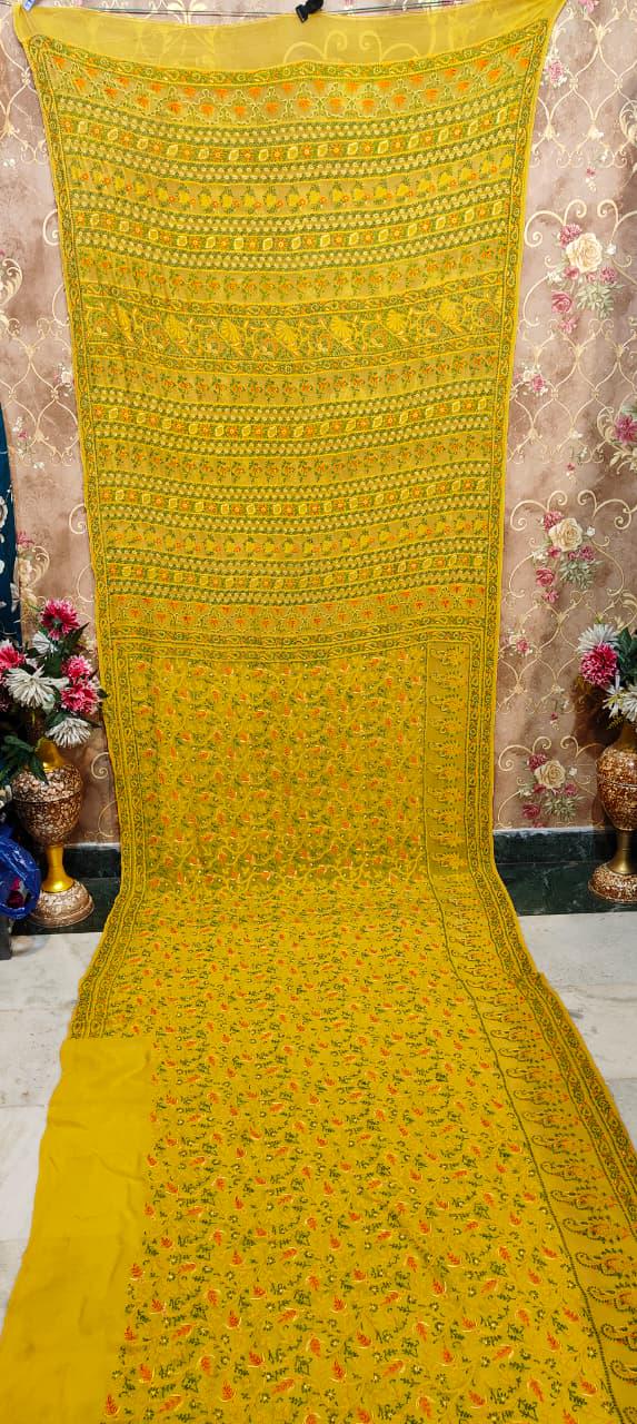 Drape yourself in timeless grace with this exquisite Khaddi Georgette Handloom Saree, adorned with intricate Handwork Chikankari Embroidery.🌿