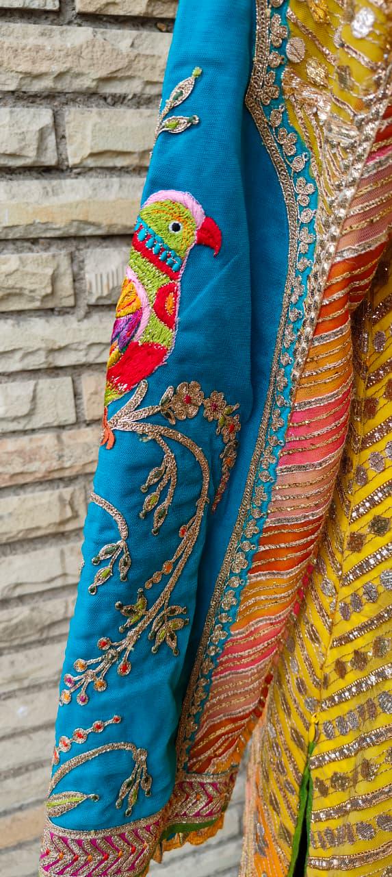 A regal, festive ensemble designed for special occasions, showcasing skilled craftsmanship and traditional artistry. Ideal for someone who wants to make a bold, beautiful statement at events.