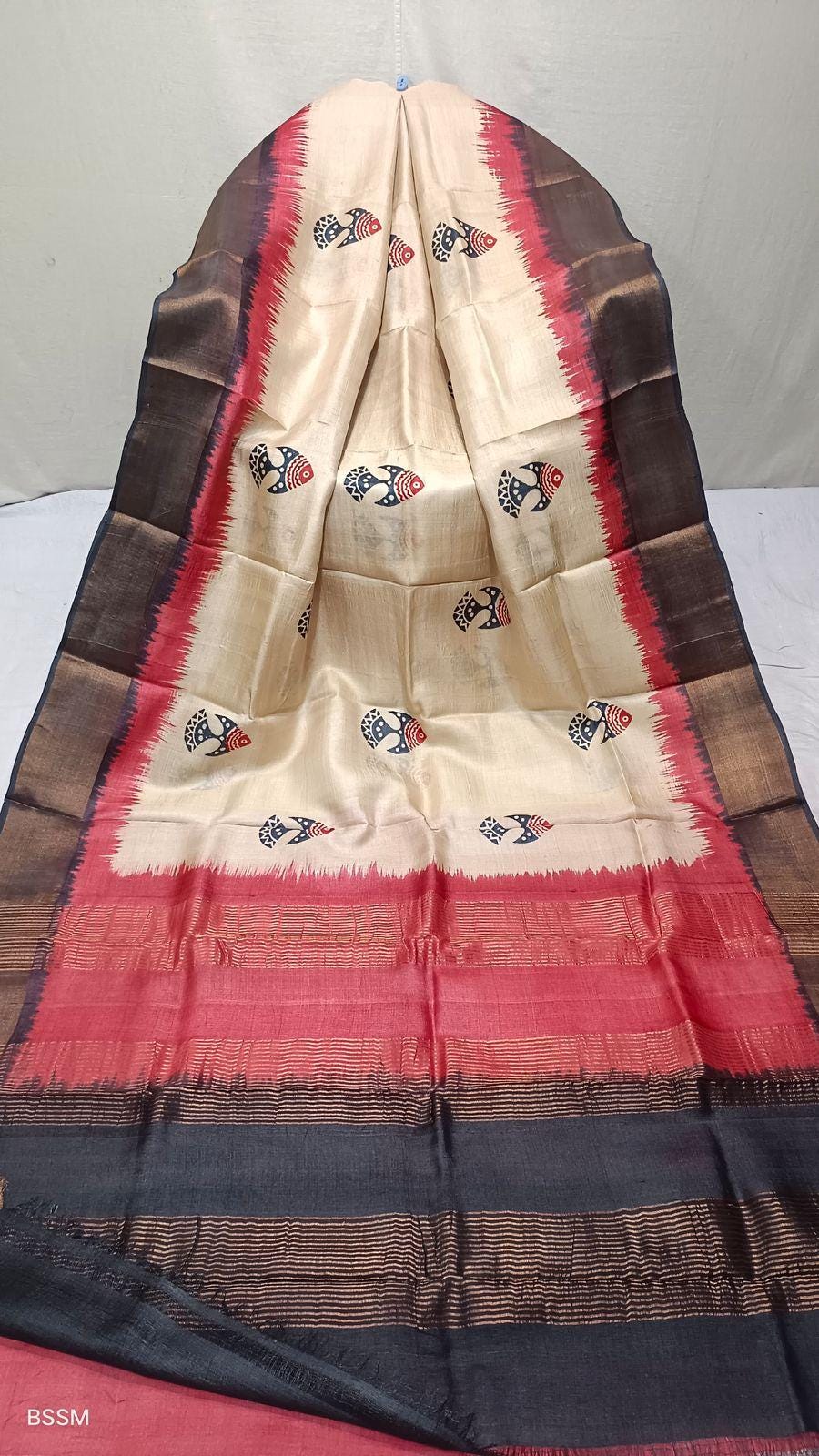 Muga Tussar Silk Saree, Kalamkari Handloom, Wedding Saree