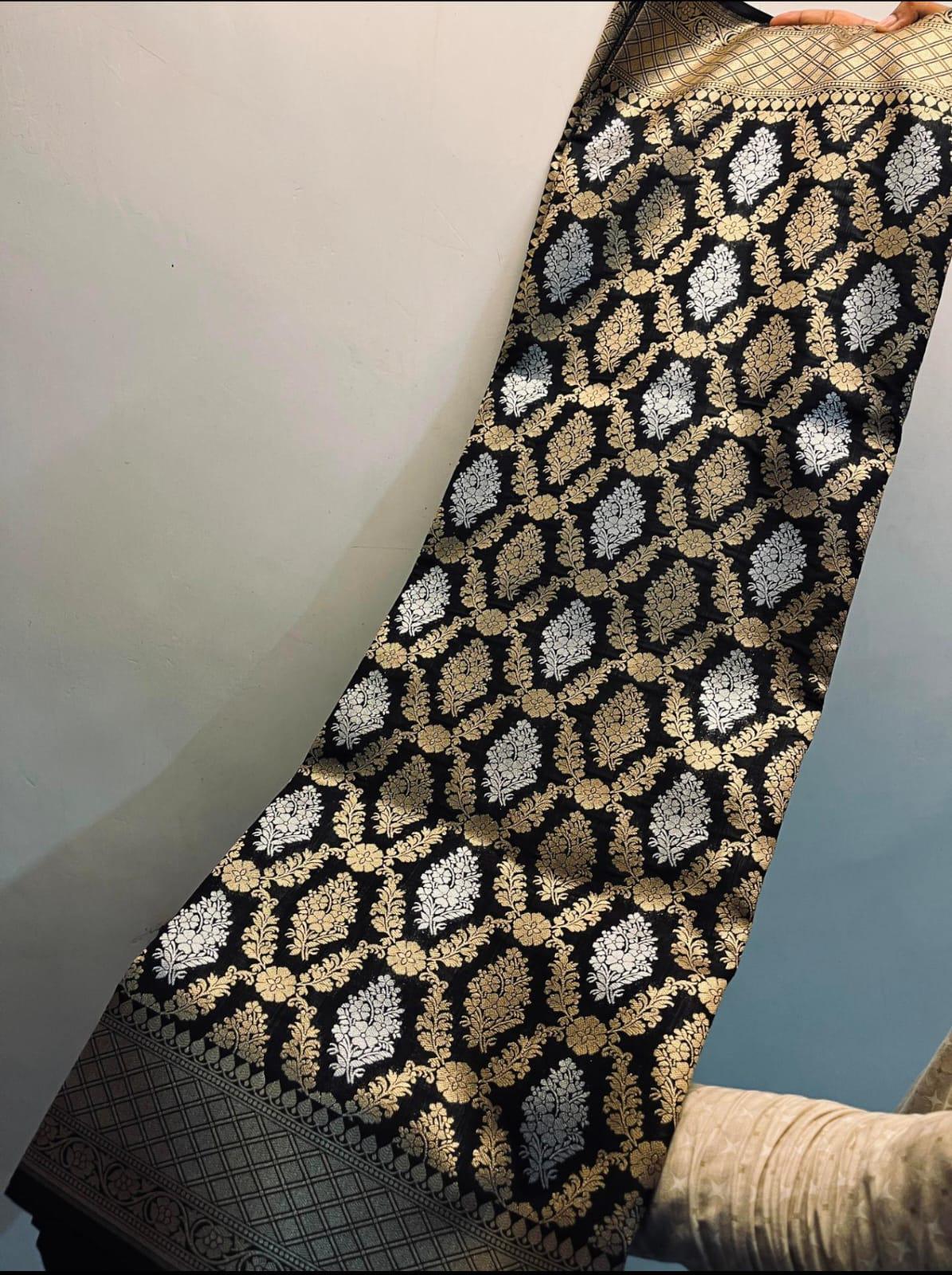 Experience the luxury of khaddi katan tissue Silk, adorned with exquisite handloom prints and a stunning organic banaras silk weave. This saree is a perfect fusion of heritage and contemporary elegance, making it ideal for weddings, festive occasions, and grand celebrations. A timeless masterpiece for your ethnic collection!