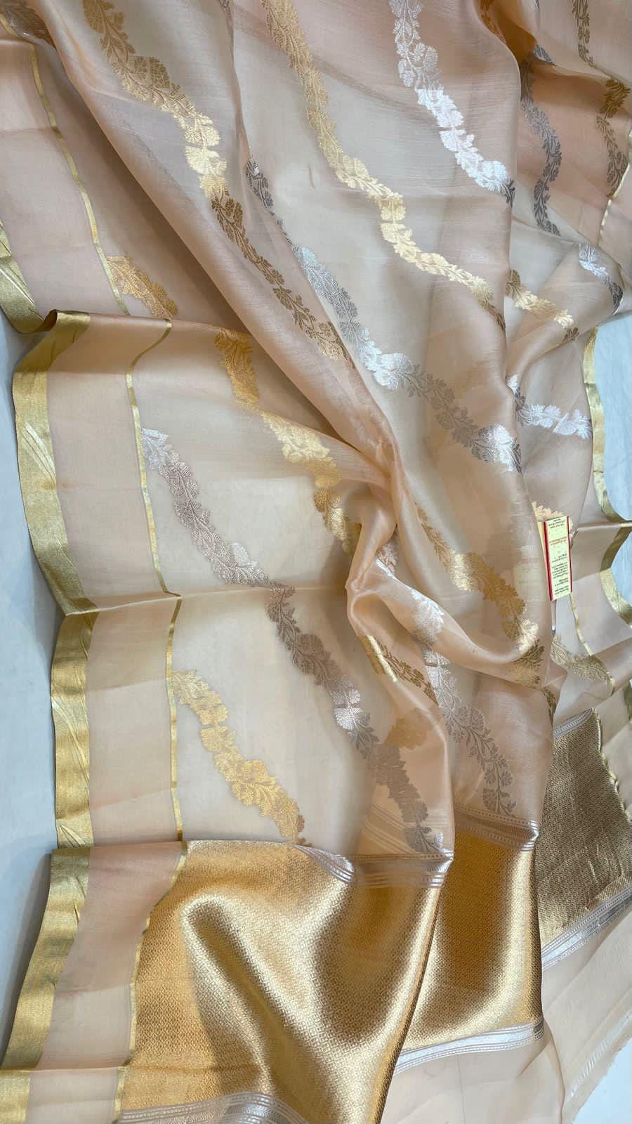 Kora Tissue Zari Silk Saree, Handloom Banarasi Border, Silk Mark