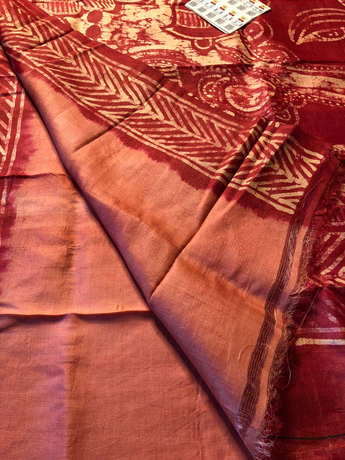 Handloom Tussar Silk Saree, Bishnupur Weave, Eco Leaf Print
