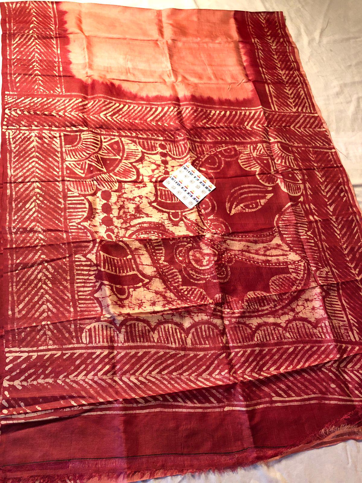 Experience the luxury of weaving TUSSAR Eco Print bishnupuri weave, adorned with exquisite handloom Weave and a stunning organic Kolkata silk weave. This saree is a perfect fusion of heritage and contemporary elegance, making it ideal for weddings, festive occasions, and grand celebrations. A timeless masterpiece for your ethnic collection!