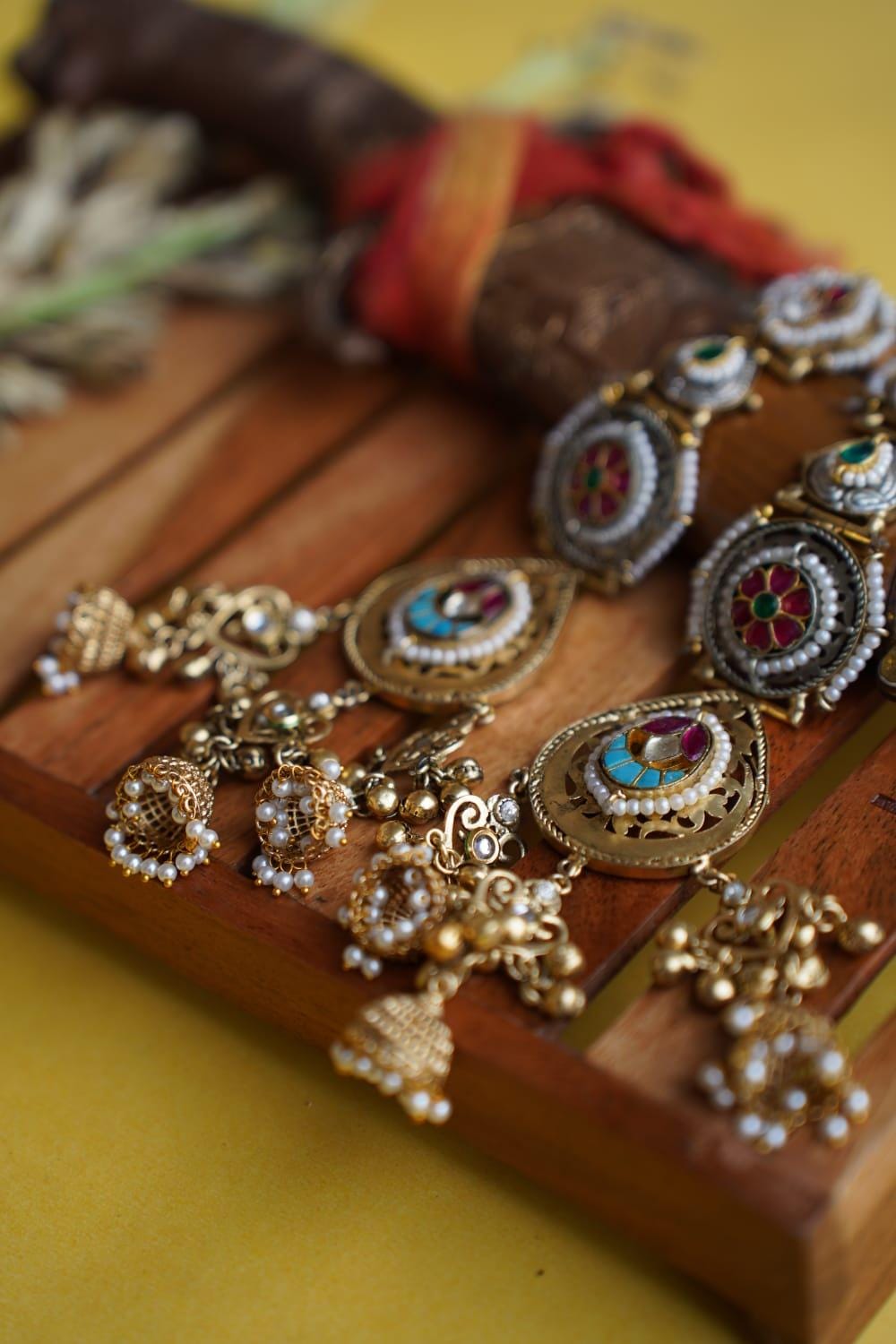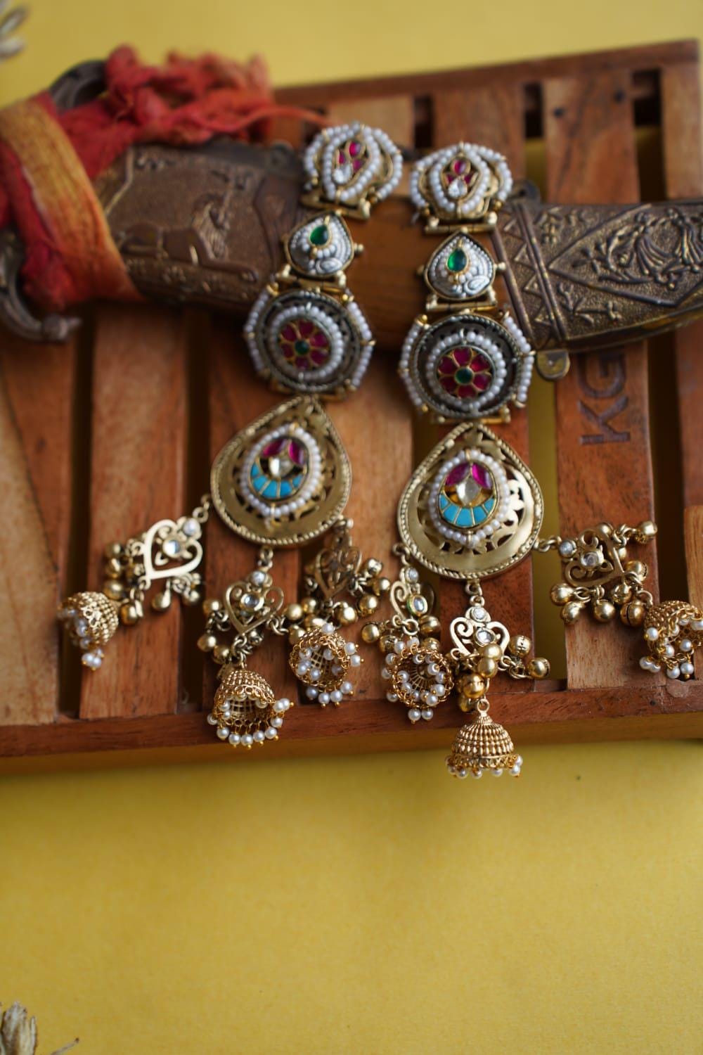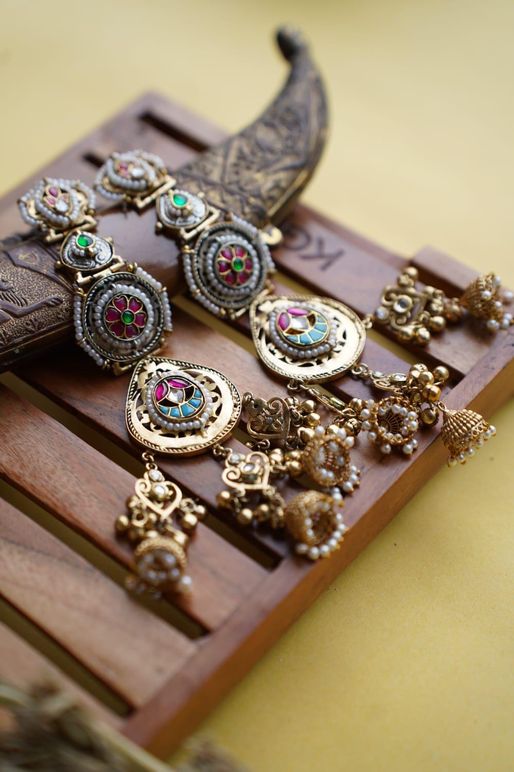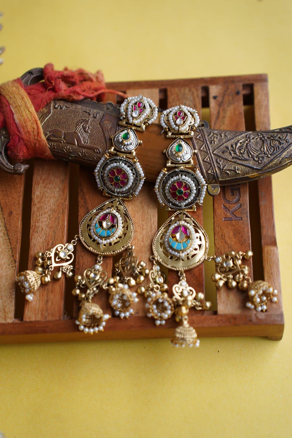 #BrassBeauty #KundanKlassics #JhumkaLove #DesiJewels #TraditionalVibes #EarringGoals #HandcraftedWithLove #RoyalAdornments #MadeInIndia #SwarnSajavat