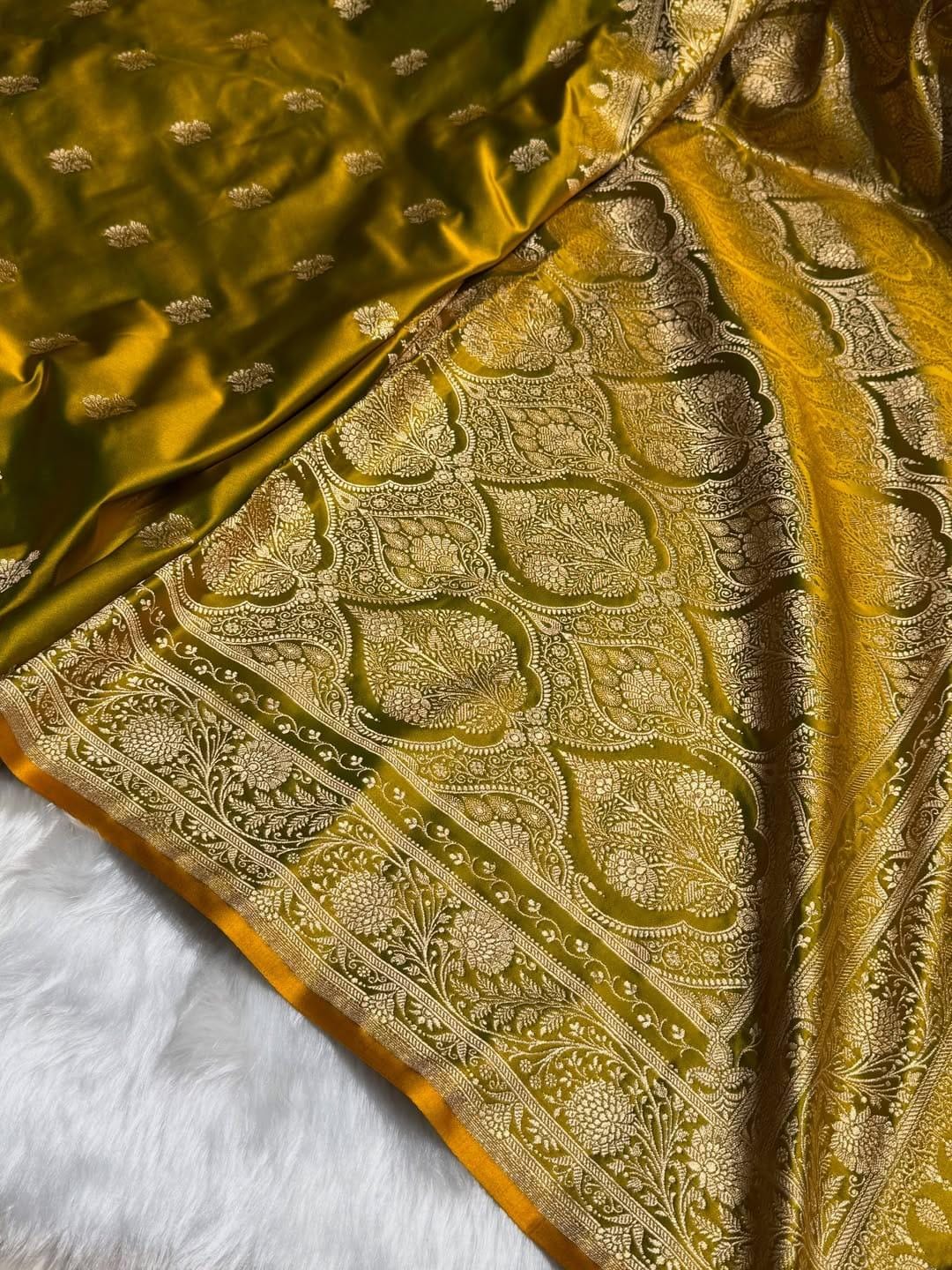 Mashru Katan Zari Silk Saree: Banarasi Handloom Weaving, Silk Mark
