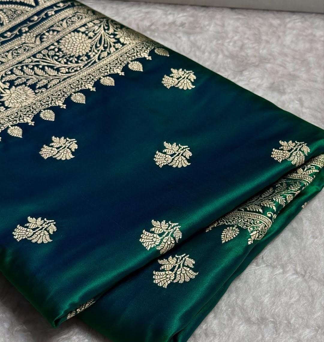 Experience the luxury of Mashru katan Silk, adorned with exquisite handloom prints and a stunning organic banaras silk weave. This saree is a perfect fusion of heritage and contemporary elegance, making it ideal for weddings, festive occasions, and grand celebrations. A timeless masterpiece for your ethnic collection!