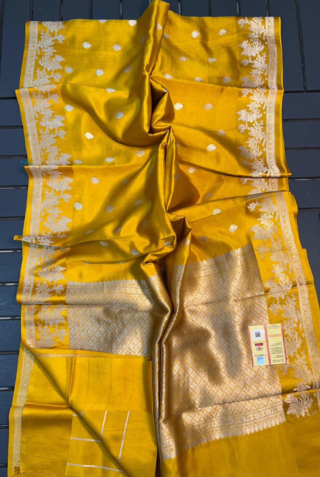 Pure Authentic Hand Weave raw mango Banarasi Saree With Blouse Piece