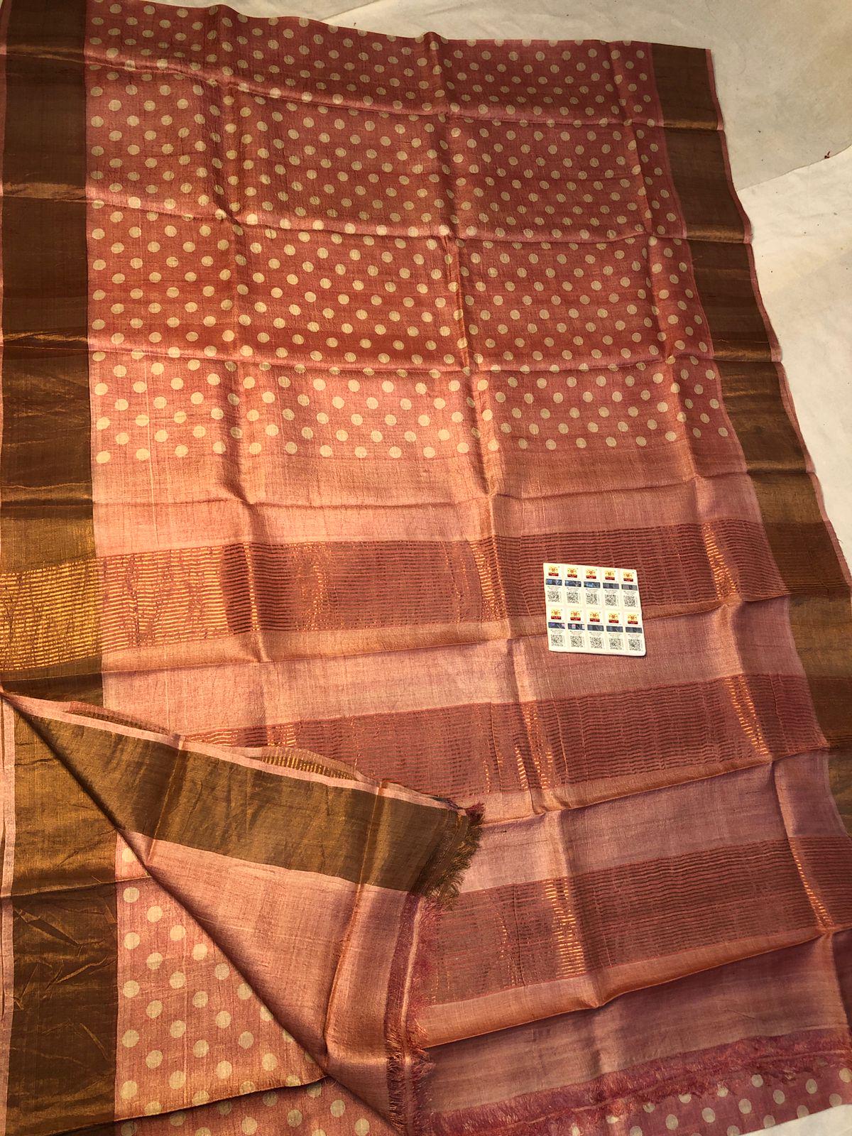 Experience the luxury of tussar Munga Silk, adorned with exquisite handloom prints and a stunning organic muga silk weave. This saree is a perfect fusion of heritage and contemporary elegance, making it ideal for weddings, festive occasions, and grand celebrations. A timeless masterpiece for your ethnic collection!