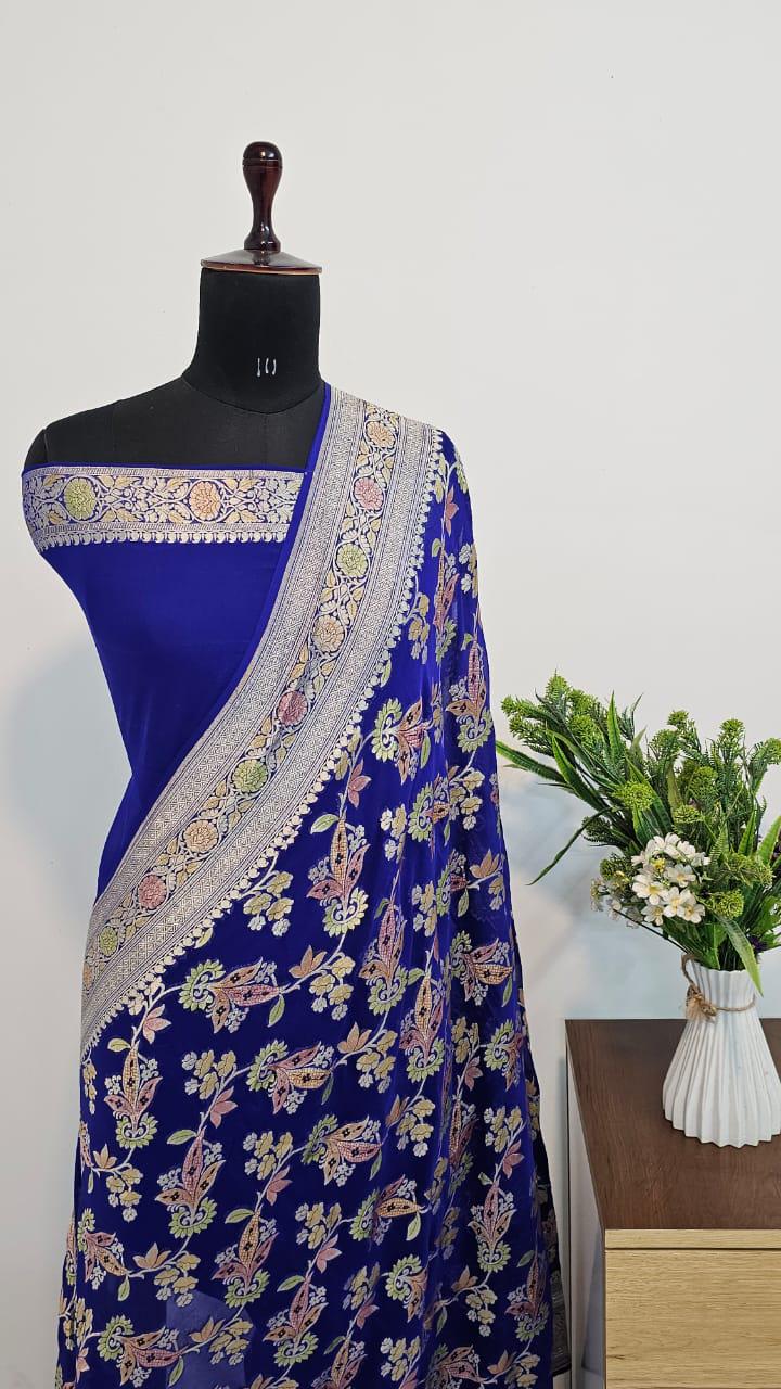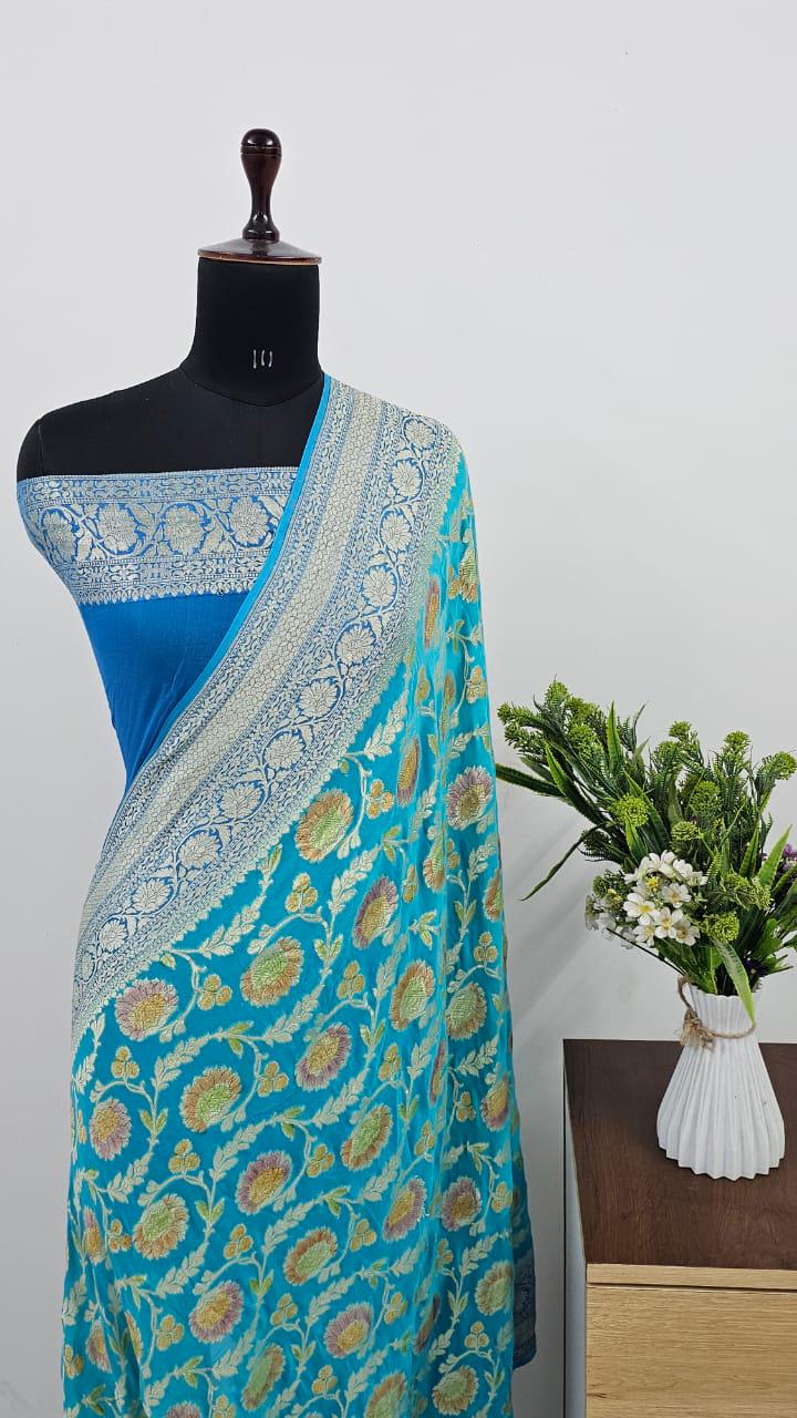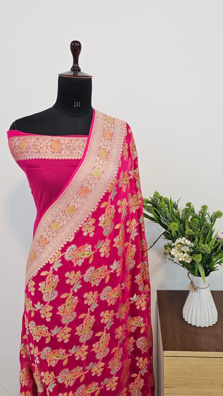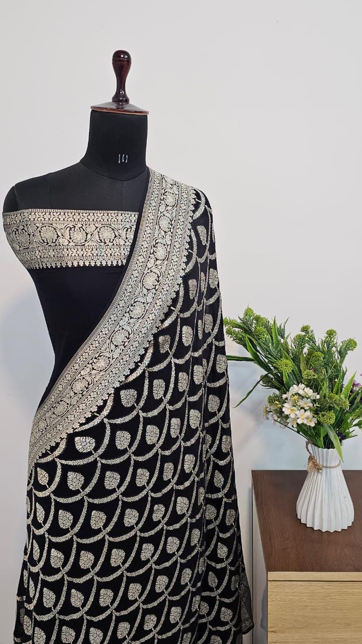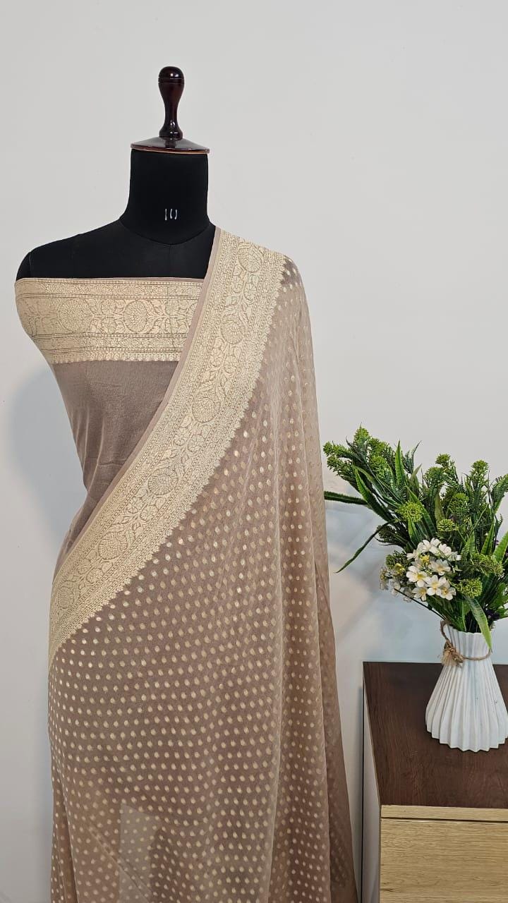 Handloom Banarasi Khaddi Georgette Saree, Silk Mark Certified