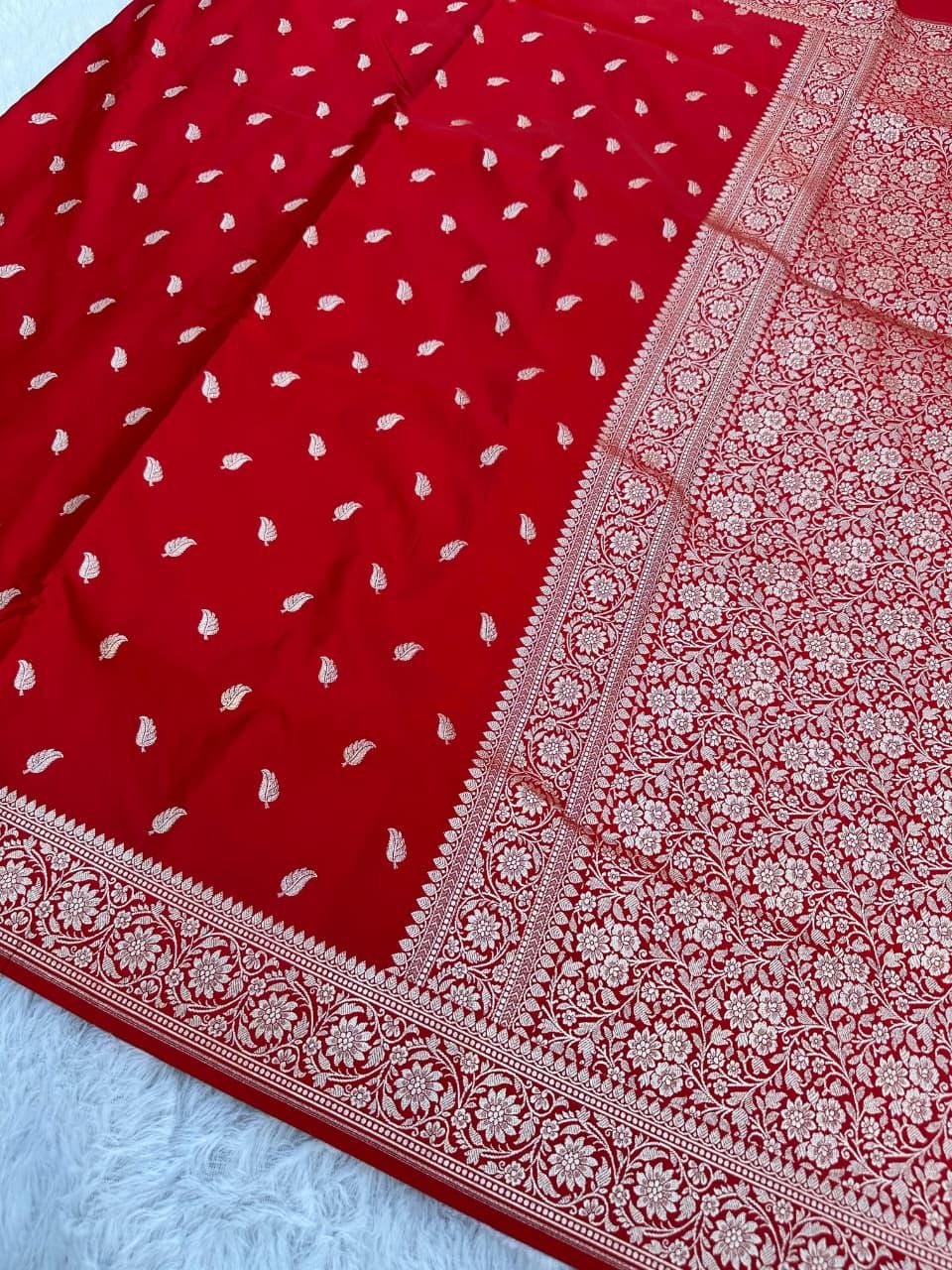 Experience the luxury of weaving Katan Silk, adorned with exquisite handloom Meenakari Weave and a stunning organic banaras silk weave. This saree is a perfect fusion of heritage and contemporary elegance, making it ideal for weddings, festive occasions, and grand celebrations. A timeless masterpiece for your ethnic collection!
