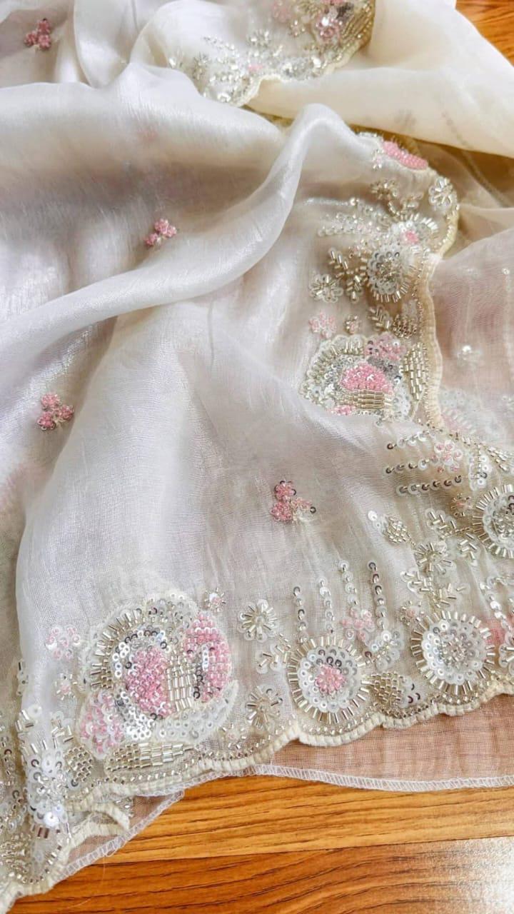 Experience the luxury of khaddi katan tissue Silk, adorned with exquisite handloom prints and a stunning organic banaras silk weave. This saree is a perfect fusion of heritage and contemporary elegance, making it ideal for weddings, festive occasions, and grand celebrations. A timeless masterpiece for your ethnic collection!