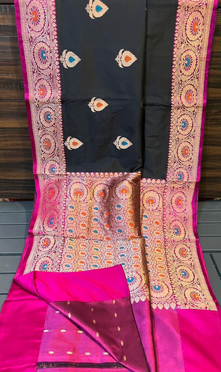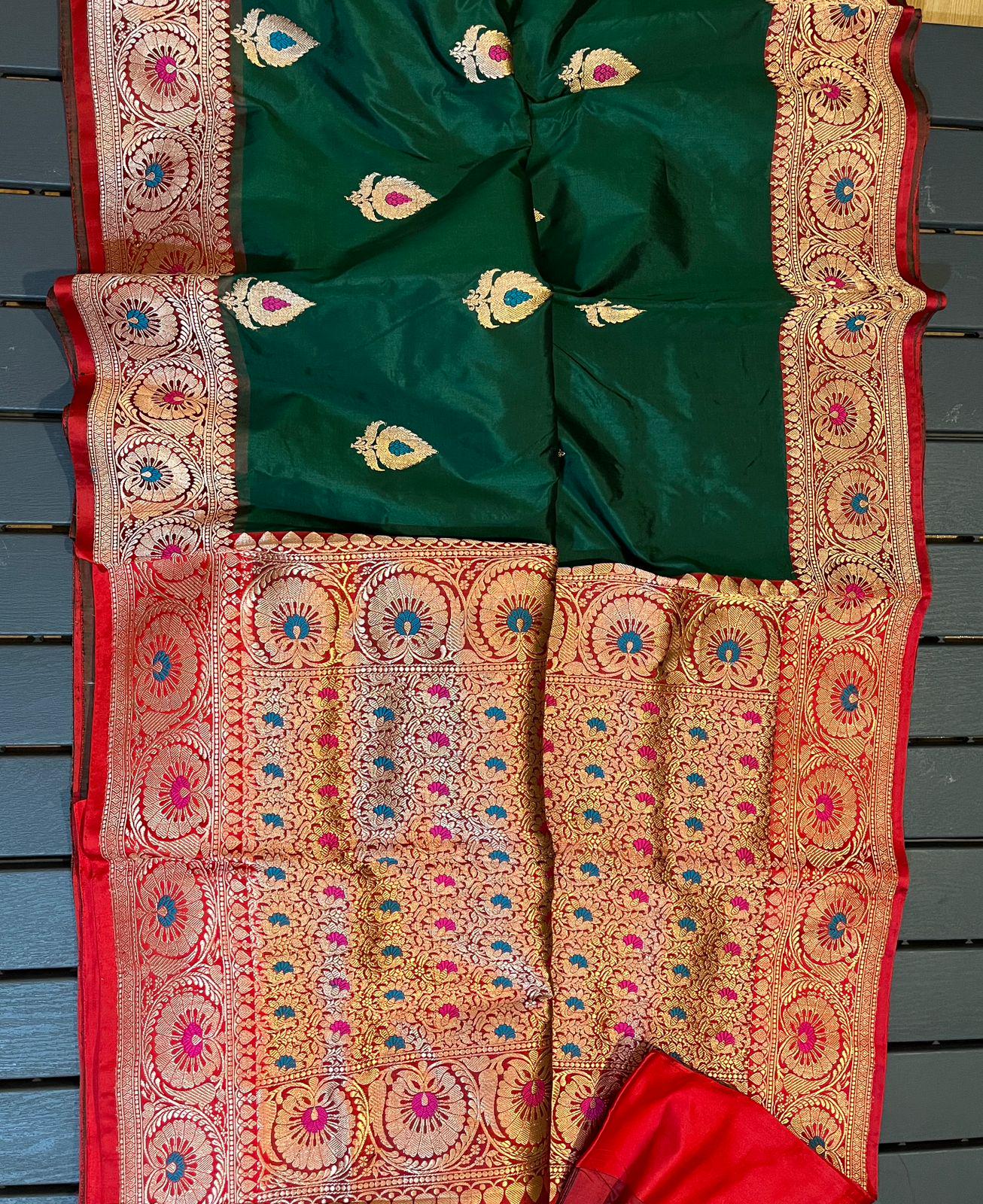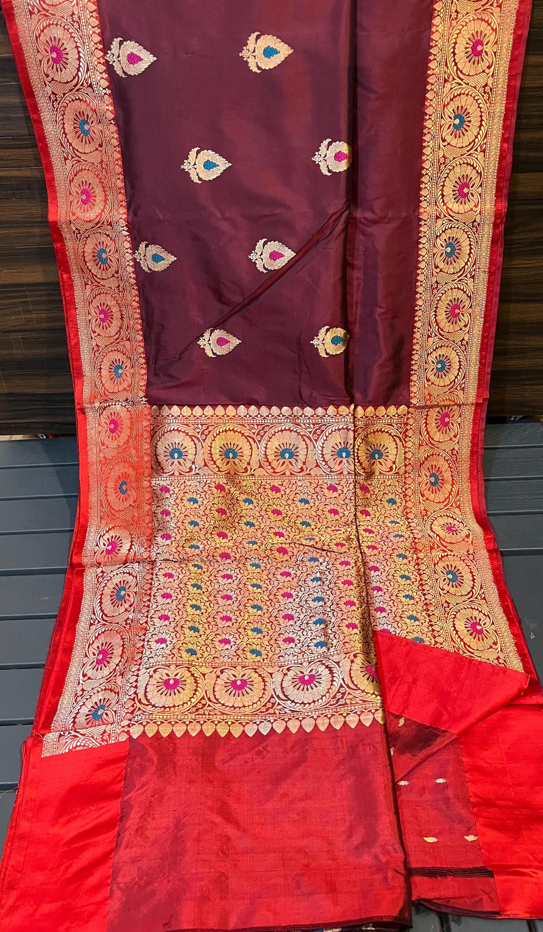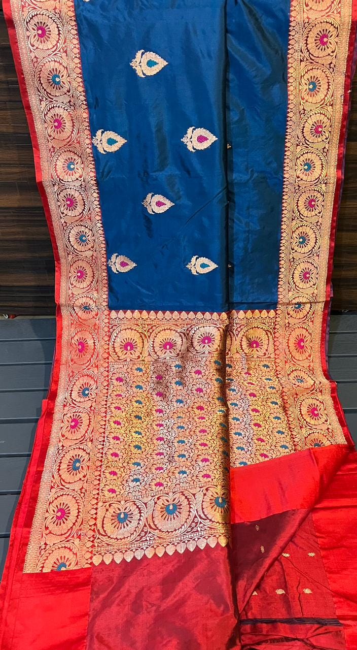 Experience the luxury of katan Silk, adorned with exquisite handloom prints and a stunning organic banaras silk weave. This saree is a perfect fusion of heritage and contemporary elegance, making it ideal for weddings, festive occasions, and grand celebrations. A timeless masterpiece for your ethnic collection!