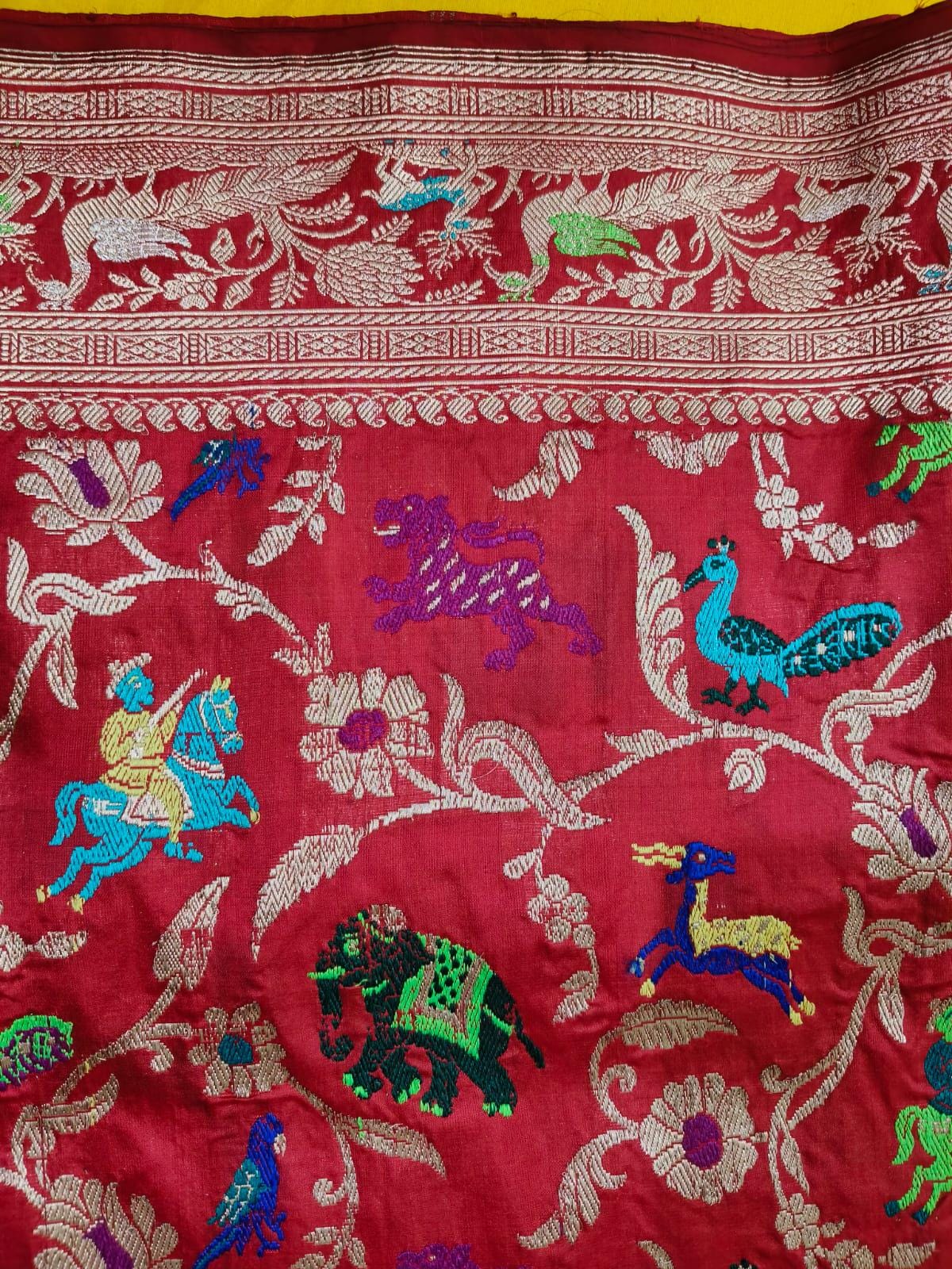 Handloom Katan Silk Wedding Saree, Banarasi Zari Meenakari Weave