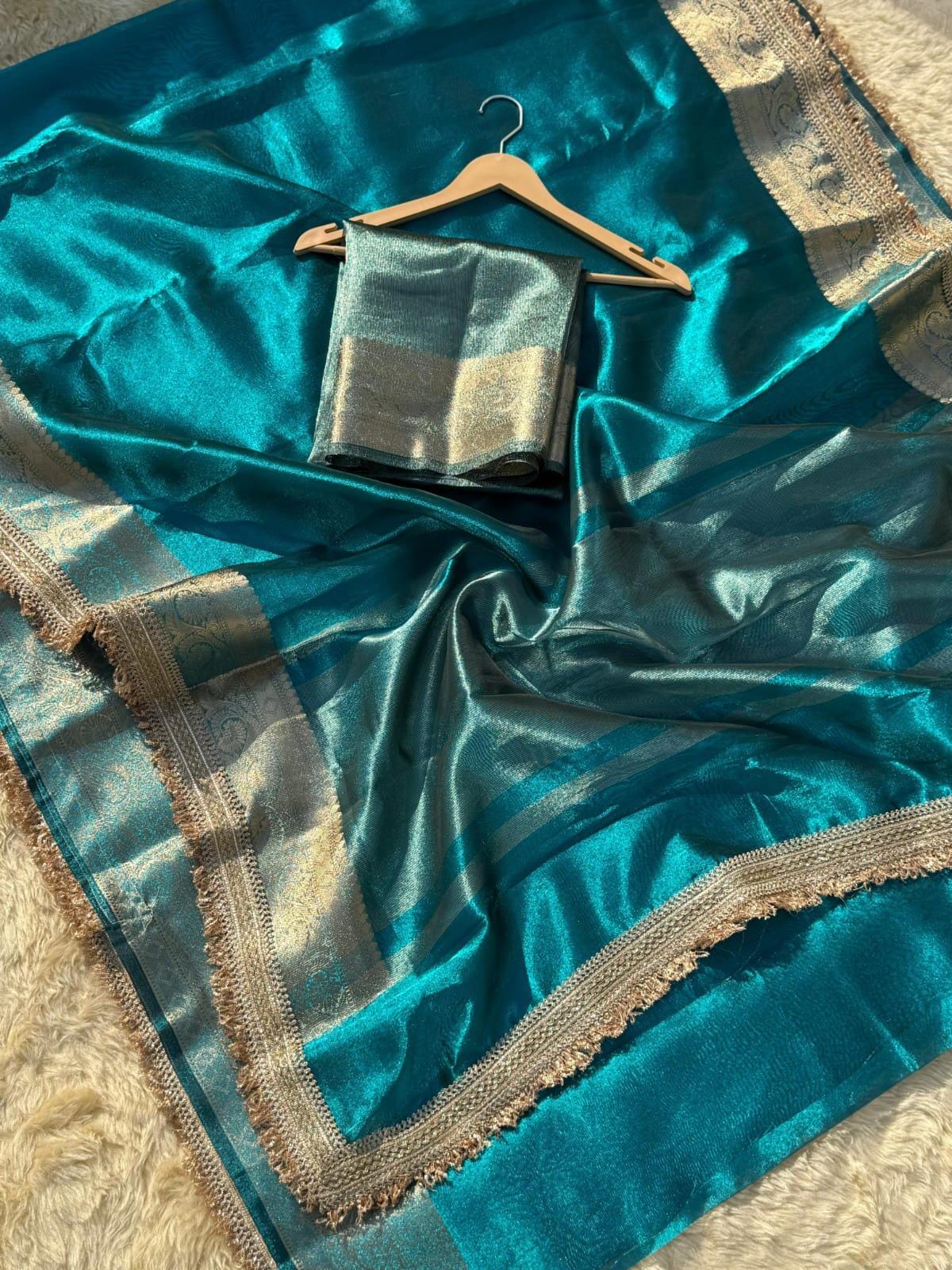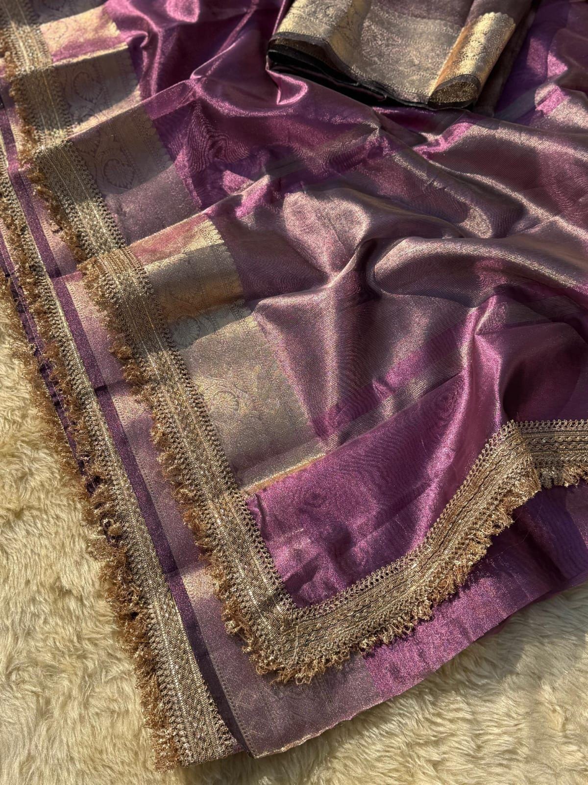 Handloom Kora Tissue Silk Saree, Varanasi Banarasi Border, Silk Mark