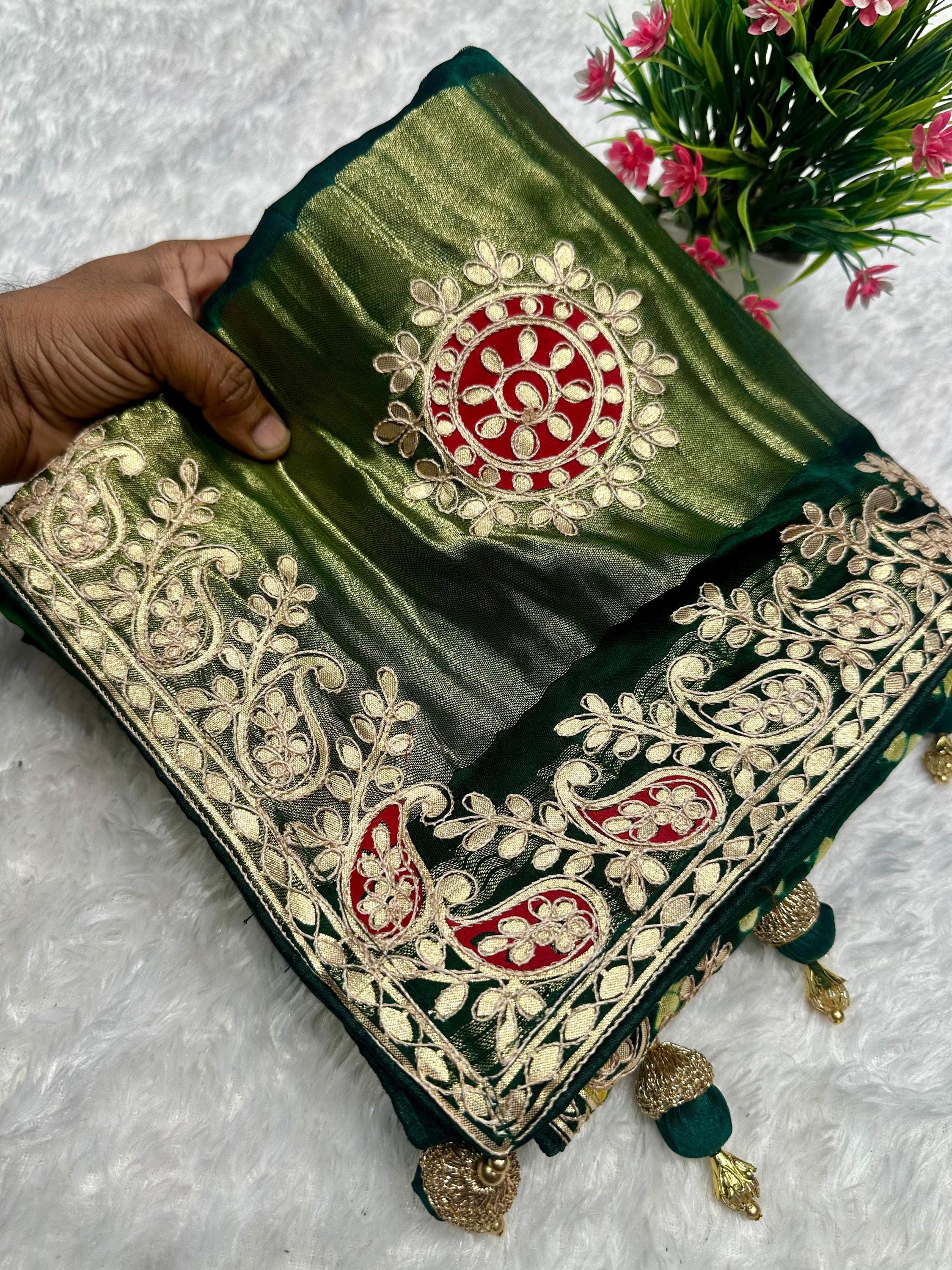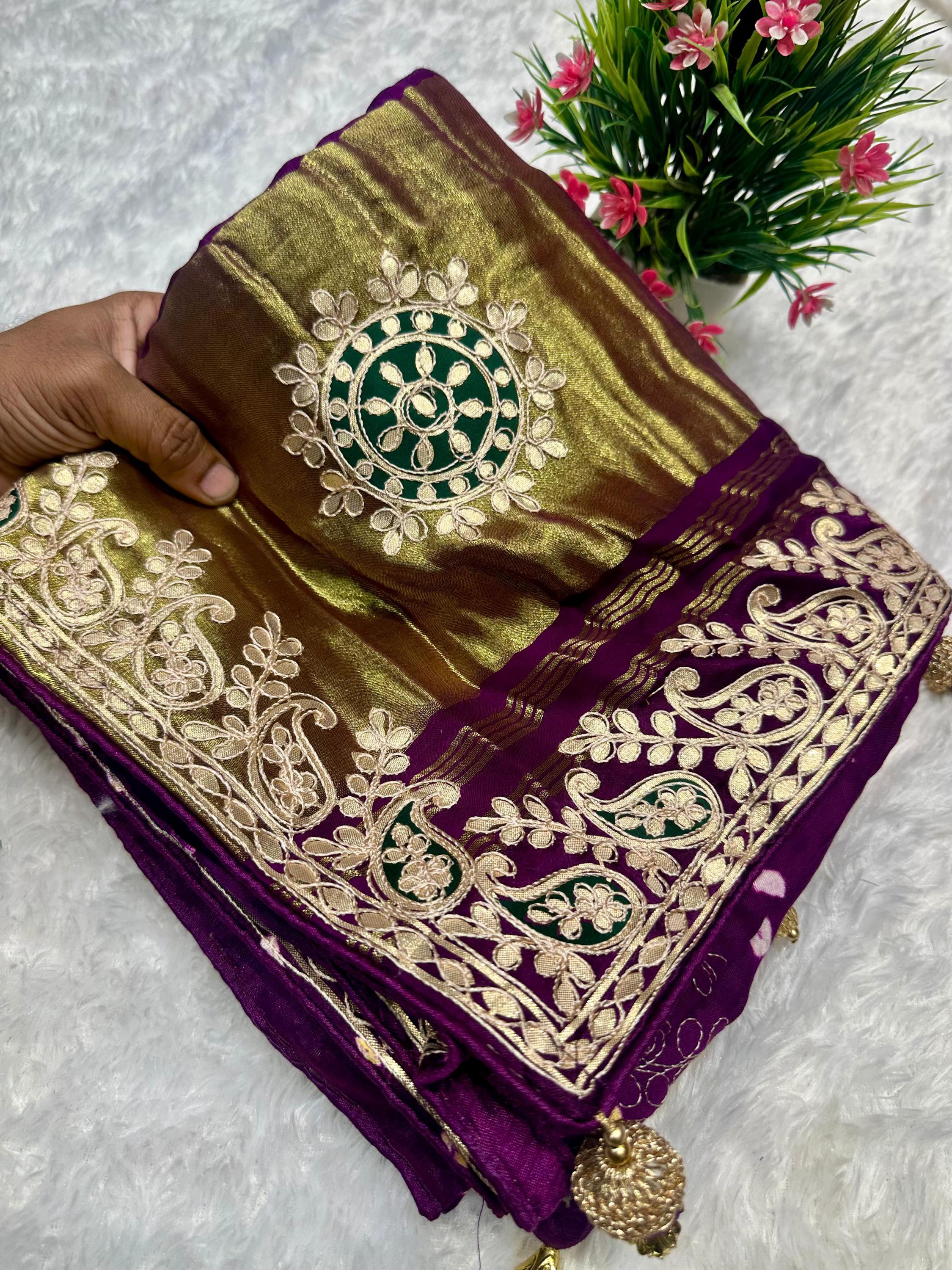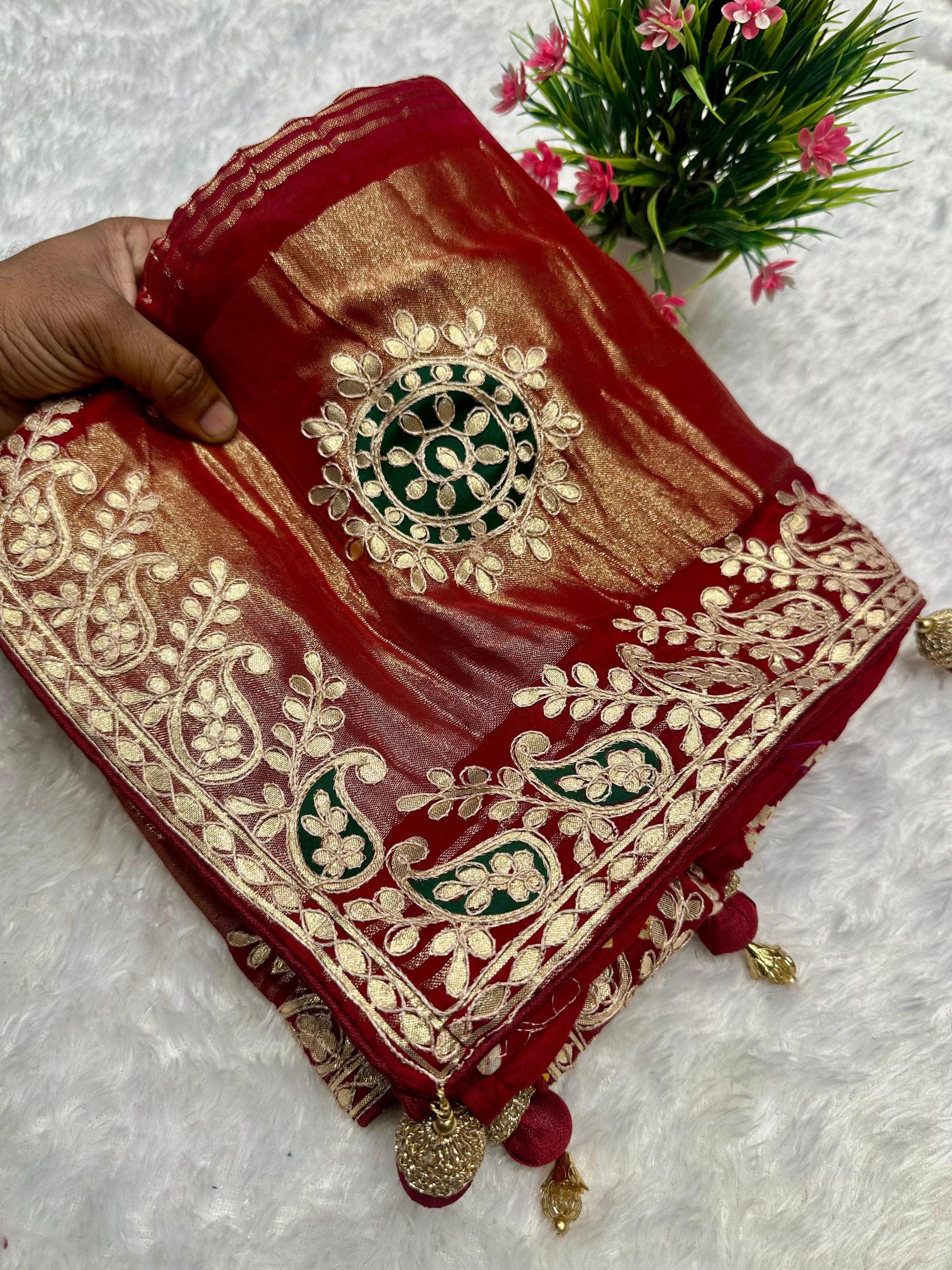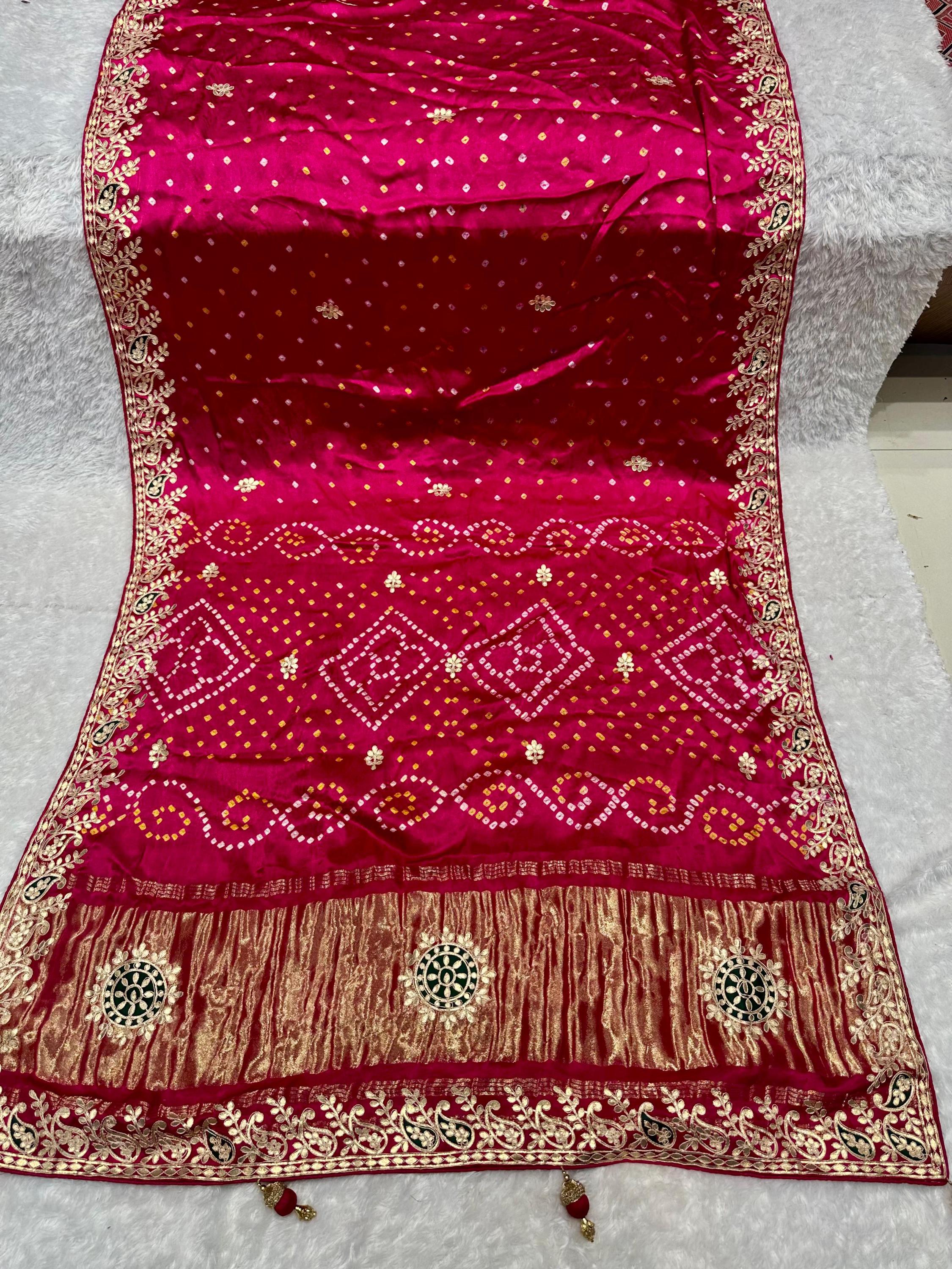 Experience the luxury of gaji Silk gota patti, adorned with exquisite traditional weaving and a stunning gaji silk fabric. This saree is a perfect fusion of heritage and contemporary elegance, making it ideal for weddings, festive occasions, and grand celebrations. A timeless masterpiece for your ethnic collection!