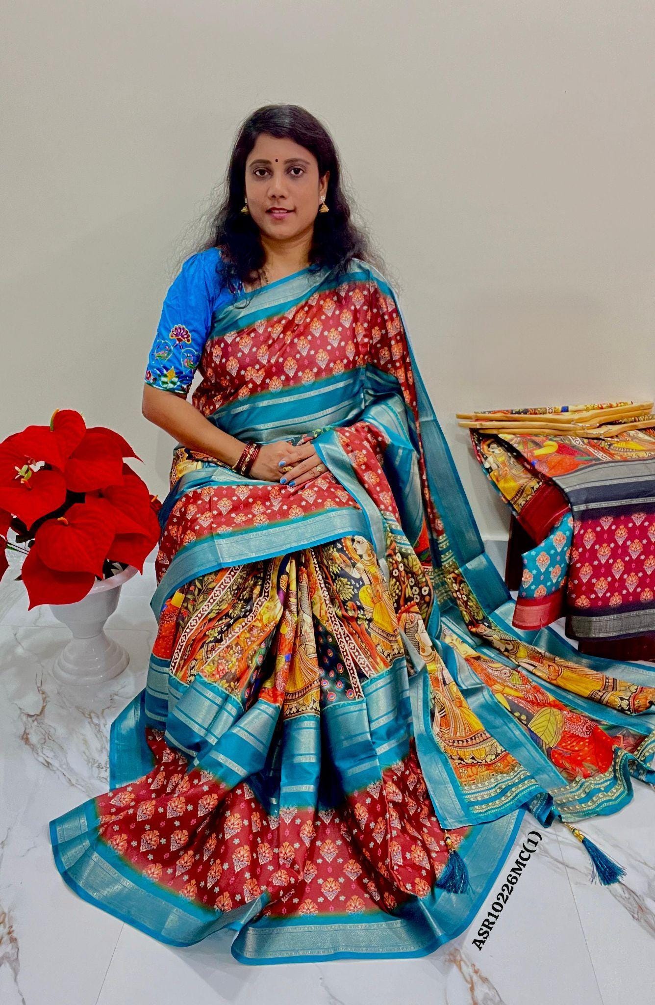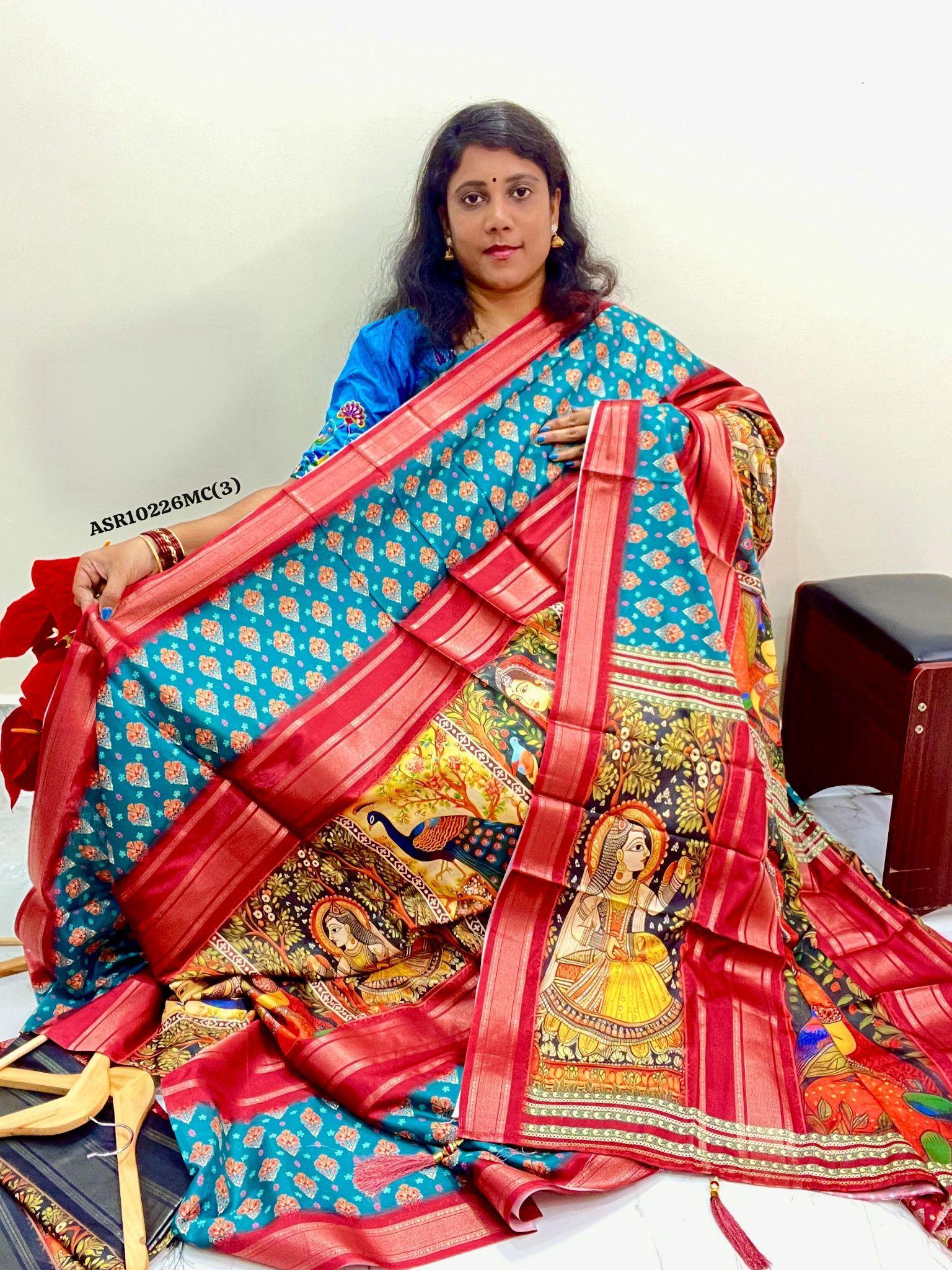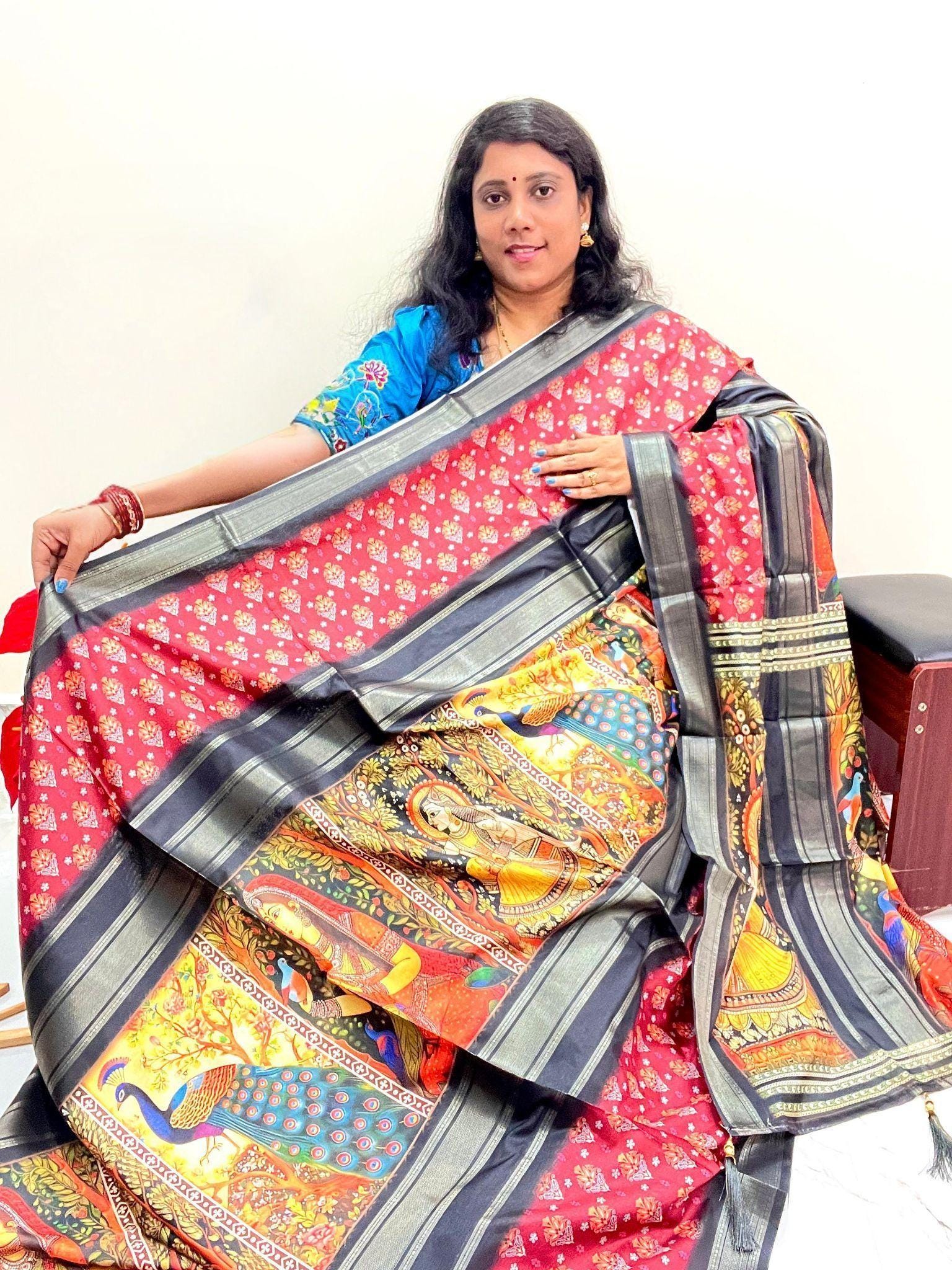Experience the luxury of kalamkari crepe Silk, adorned with exquisite handloom prints and a stunning organic muga silk weave. This saree is a perfect fusion of heritage and contemporary elegance, making it ideal for weddings, festive occasions, and grand celebrations. A timeless masterpiece for your ethnic collection!