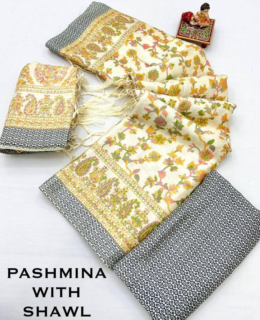 Pashmina Silk Saree, Handloom Wedding Sari with Blouse