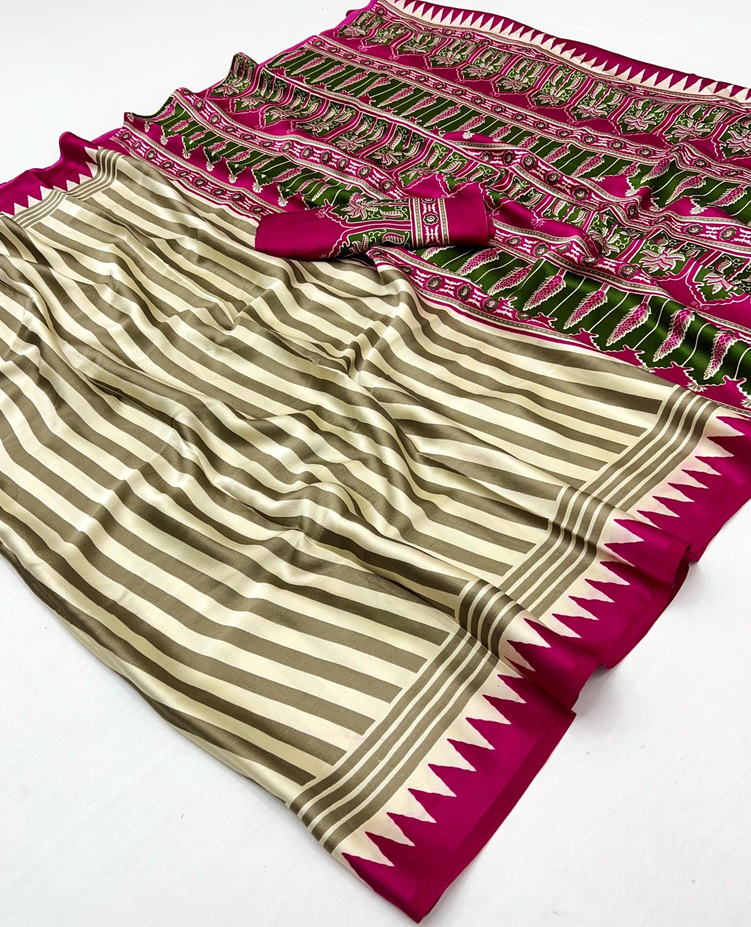 Experience the luxury of heavy modal Silk, adorned with exquisite retro prints and a stunning modal fabric. This saree is a perfect fusion of heritage and contemporary elegance, making it ideal for weddings, festive occasions, and grand celebrations. A timeless masterpiece for your ethnic collection!