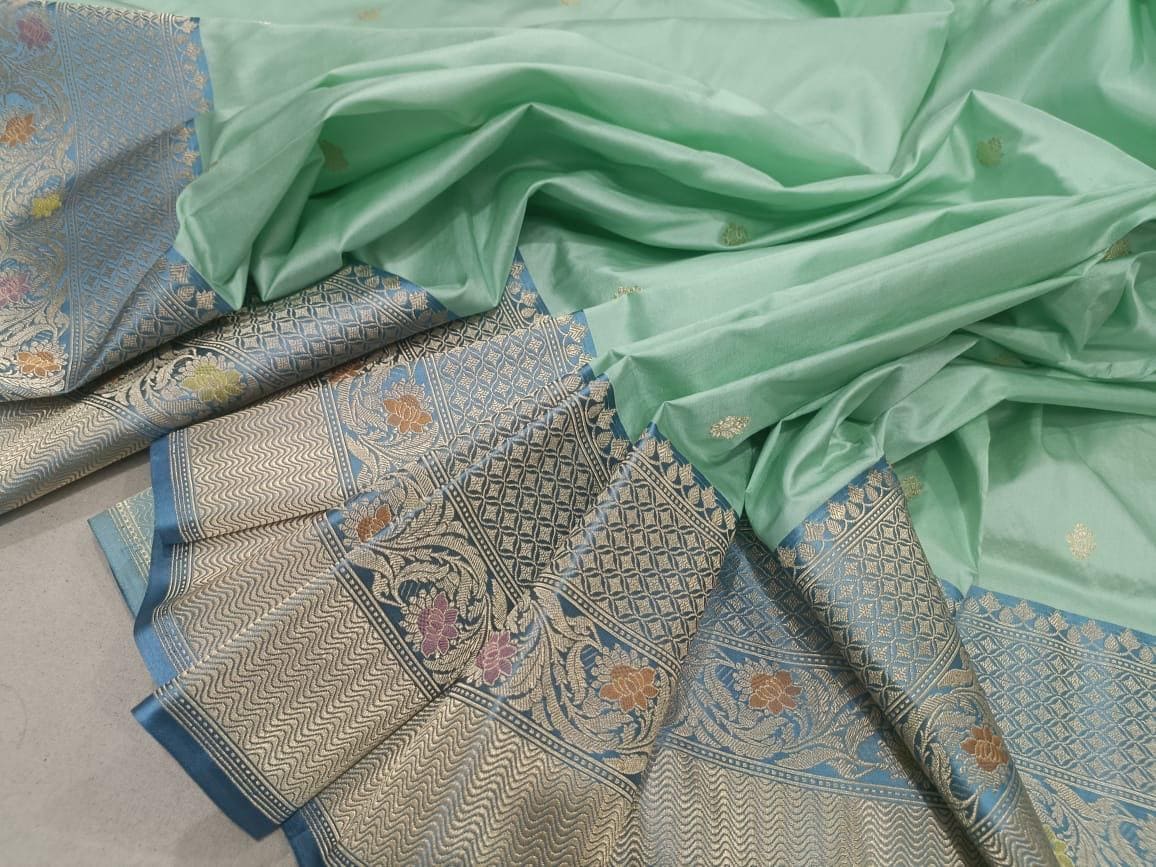 Katan Zari Silk Saree, Handloom Weaving, Banarasi Border, Wedding Saree