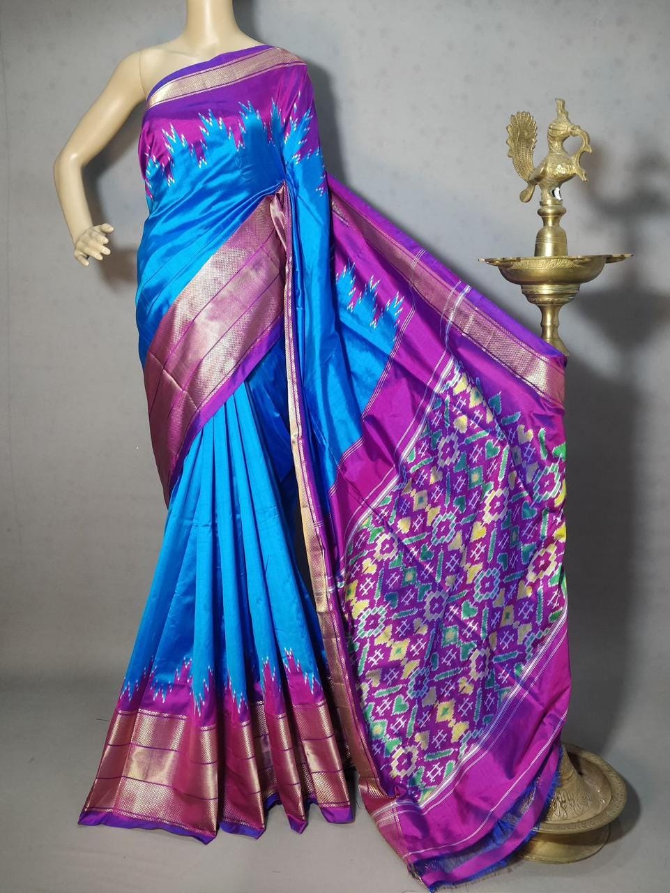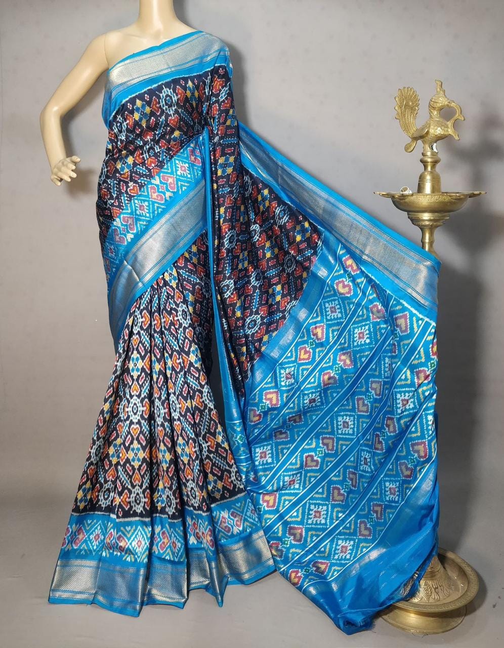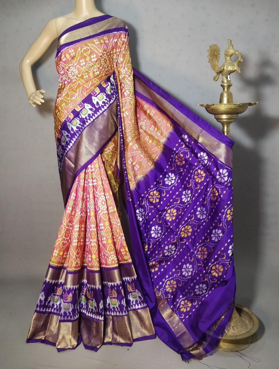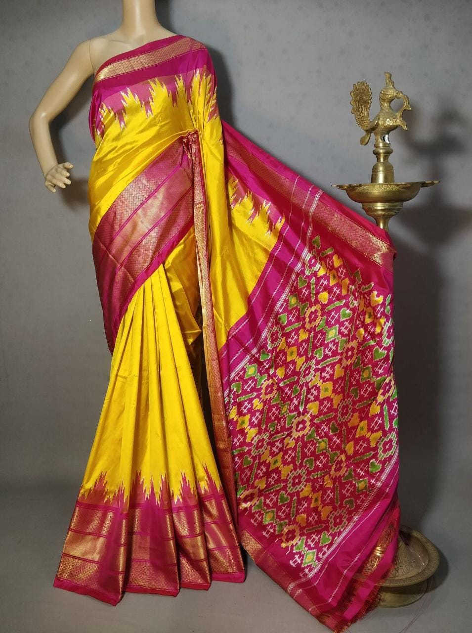 Handloom Double Silk Ikkat Pattu Saree, Silk Mark Certified