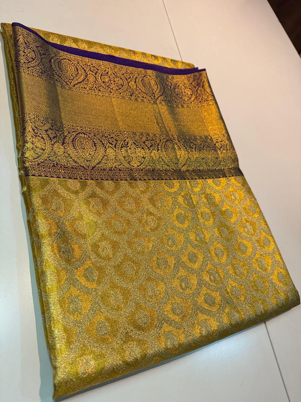 This luxurious pattu saree is lightweight yet grand, ensuring comfort along with a majestic look. Its golden zari shine adds a royal touch, making it a must-have in every saree lover’s collection. Pair it with gold jewelry for an authentic traditional appearance.