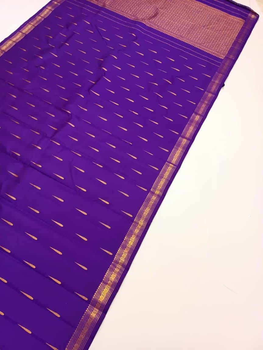This luxurious pattu saree is lightweight yet grand, ensuring comfort along with a majestic look. Its golden zari shine adds a royal touch, making it a must-have in every saree lover’s collection. Pair it with gold jewelry for an authentic traditional appearance.
