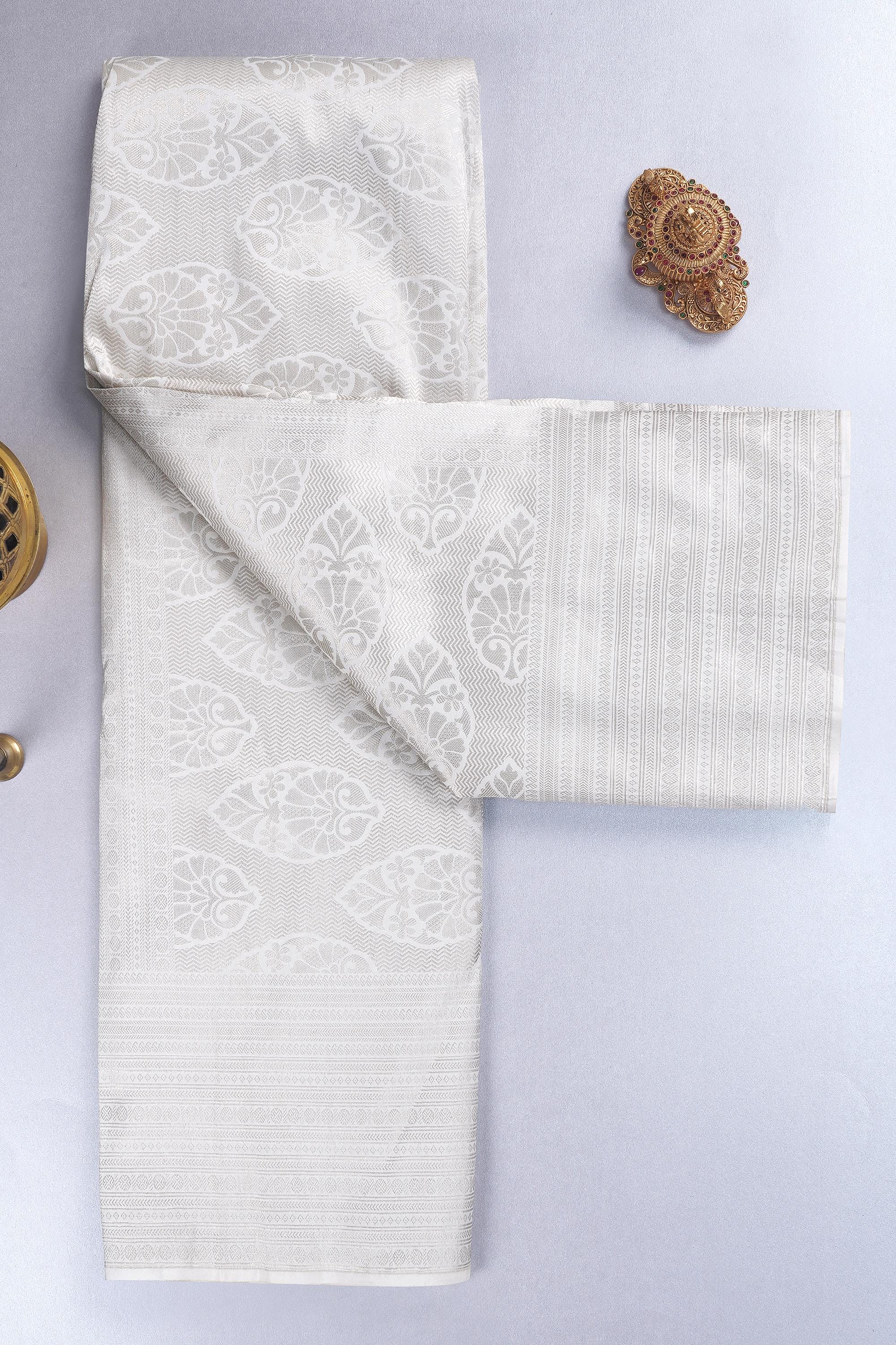 2 Gram White Gold Kancheepuram Silk Saree: Handloom Zari Bridal Pattu
