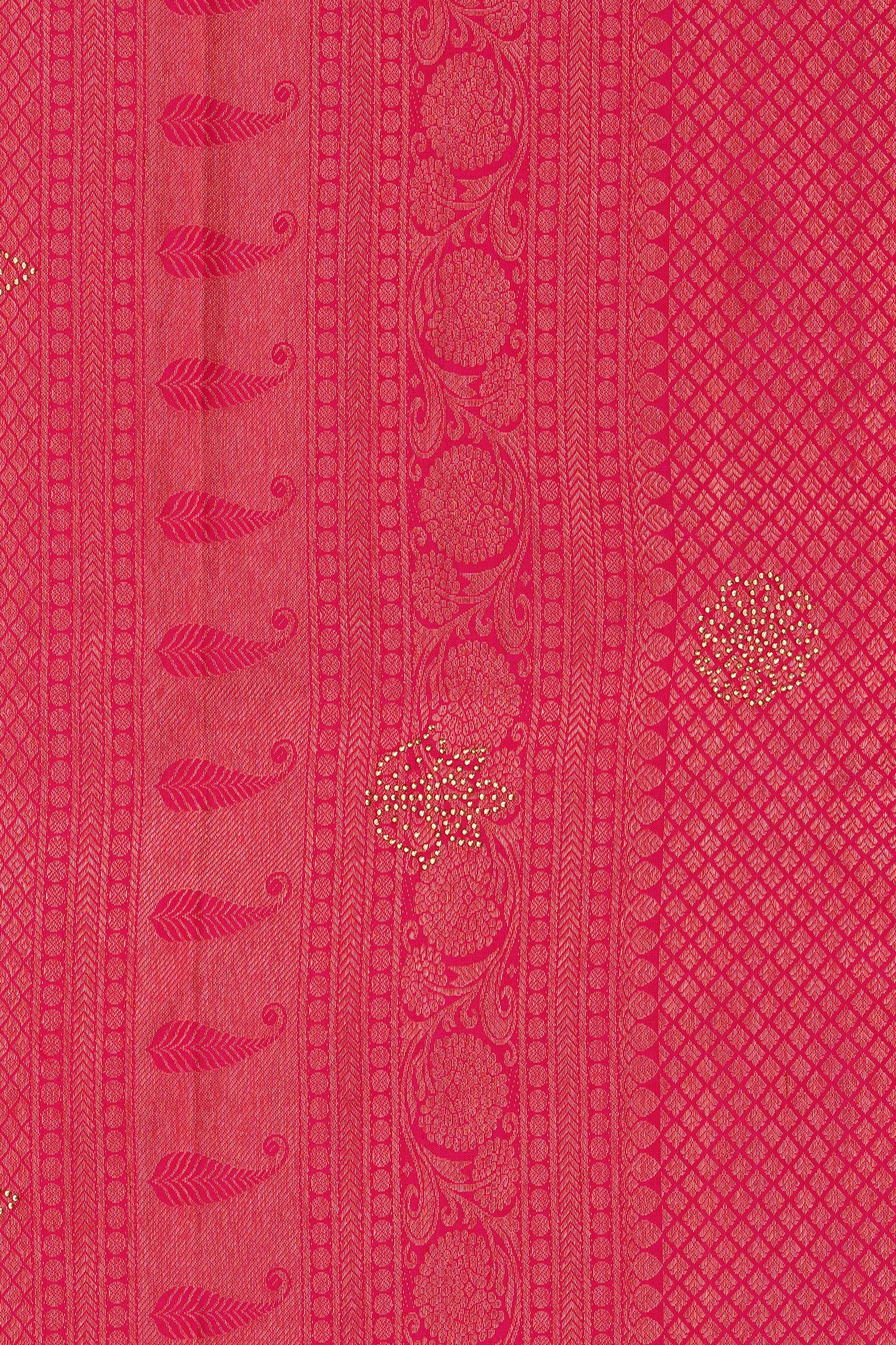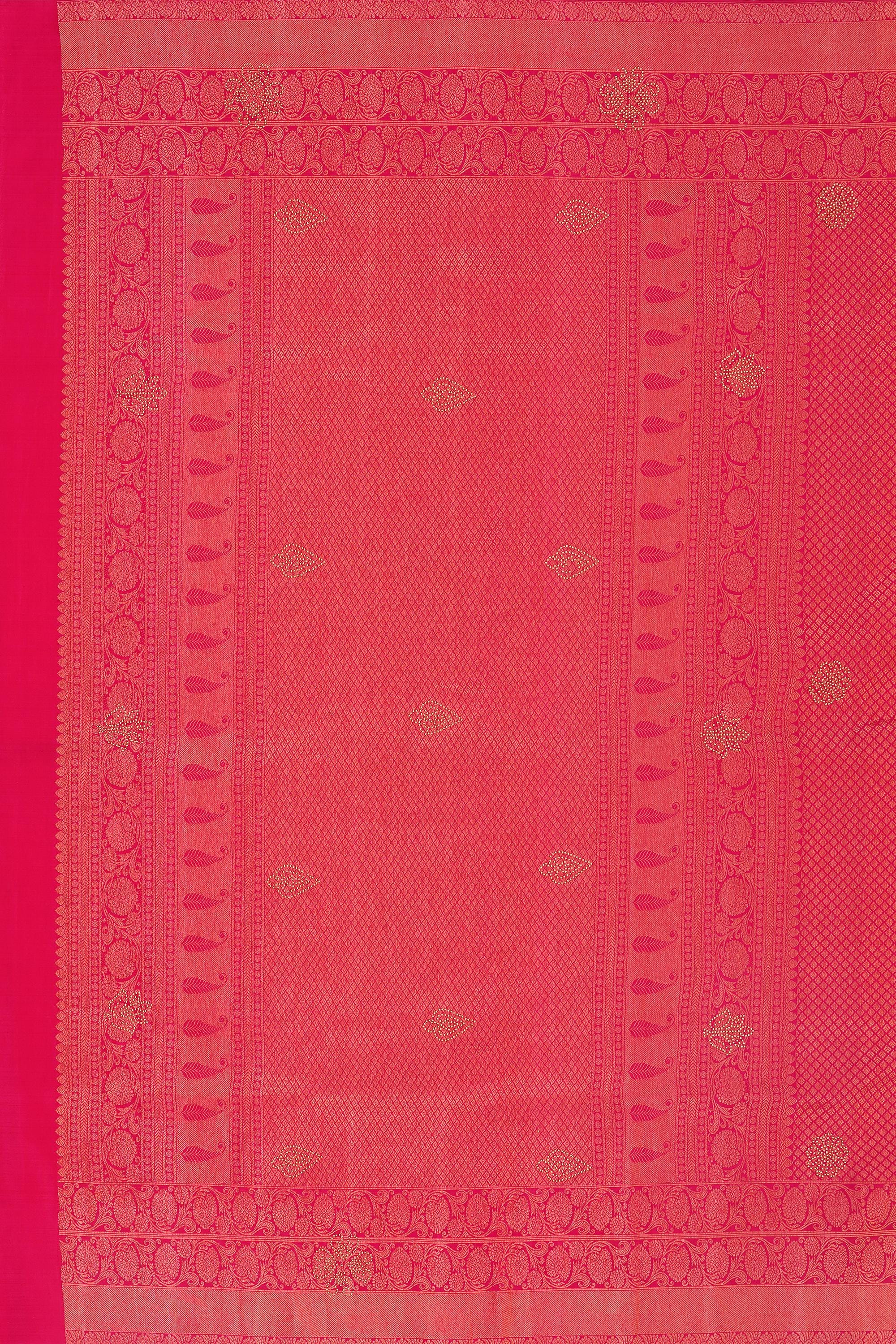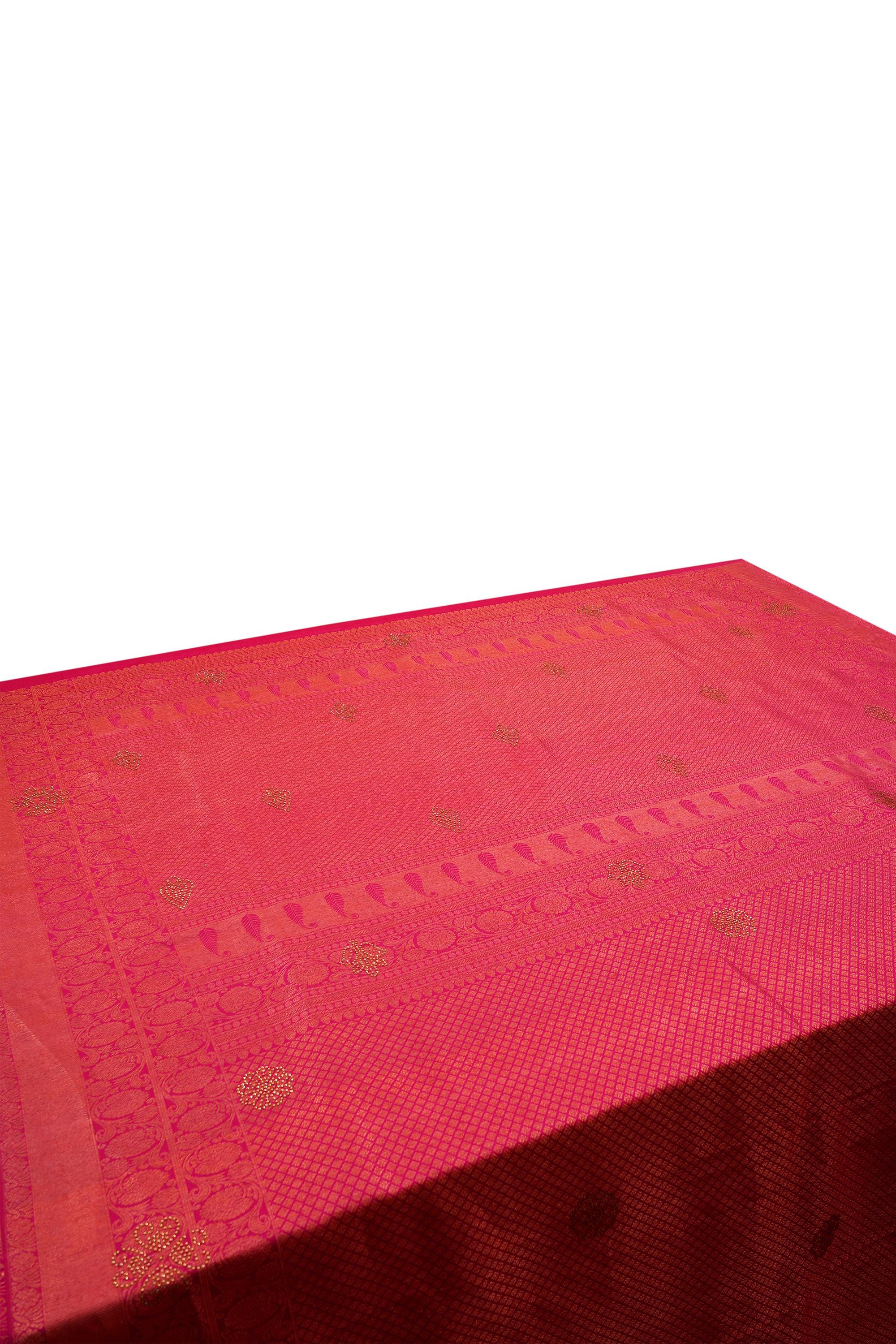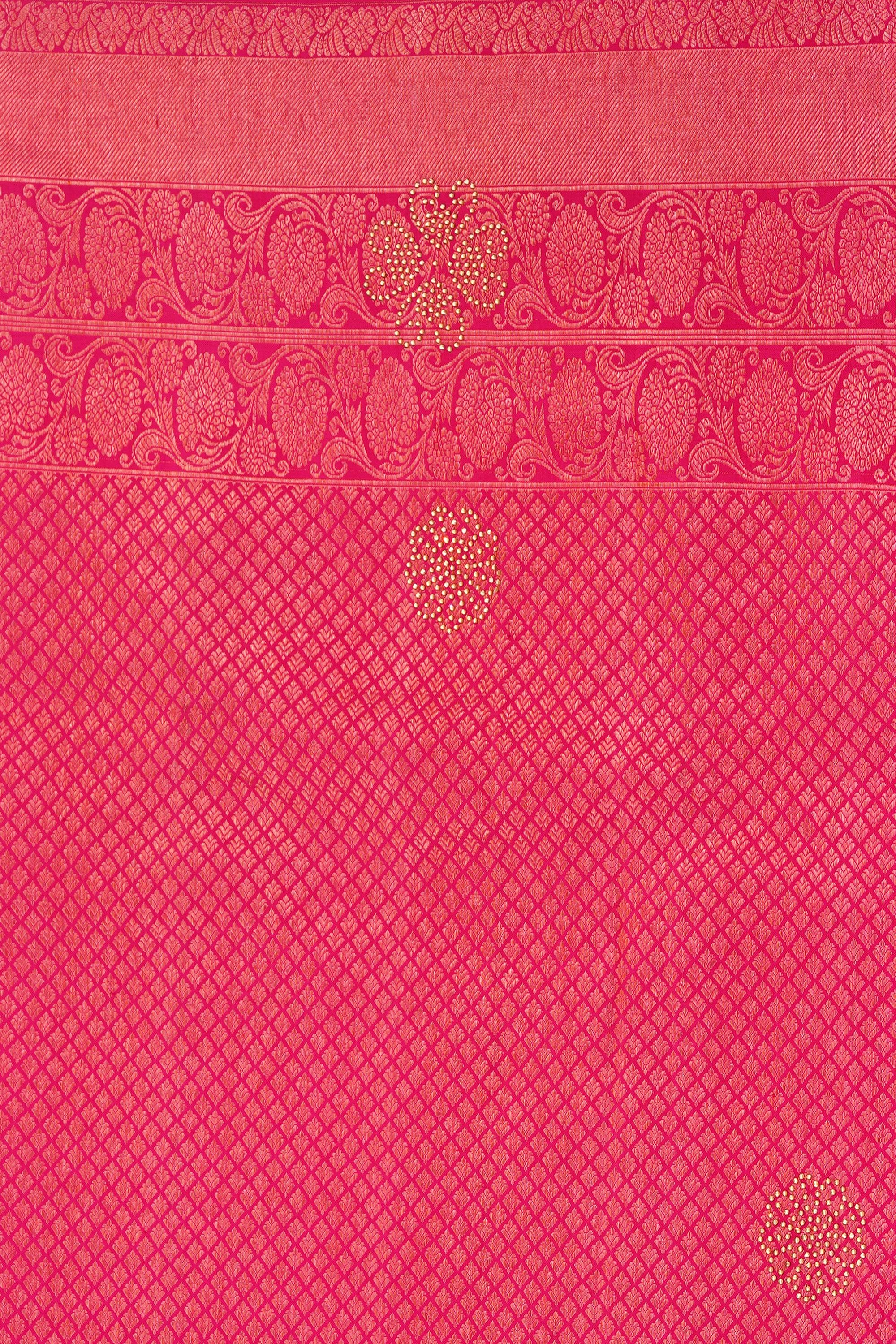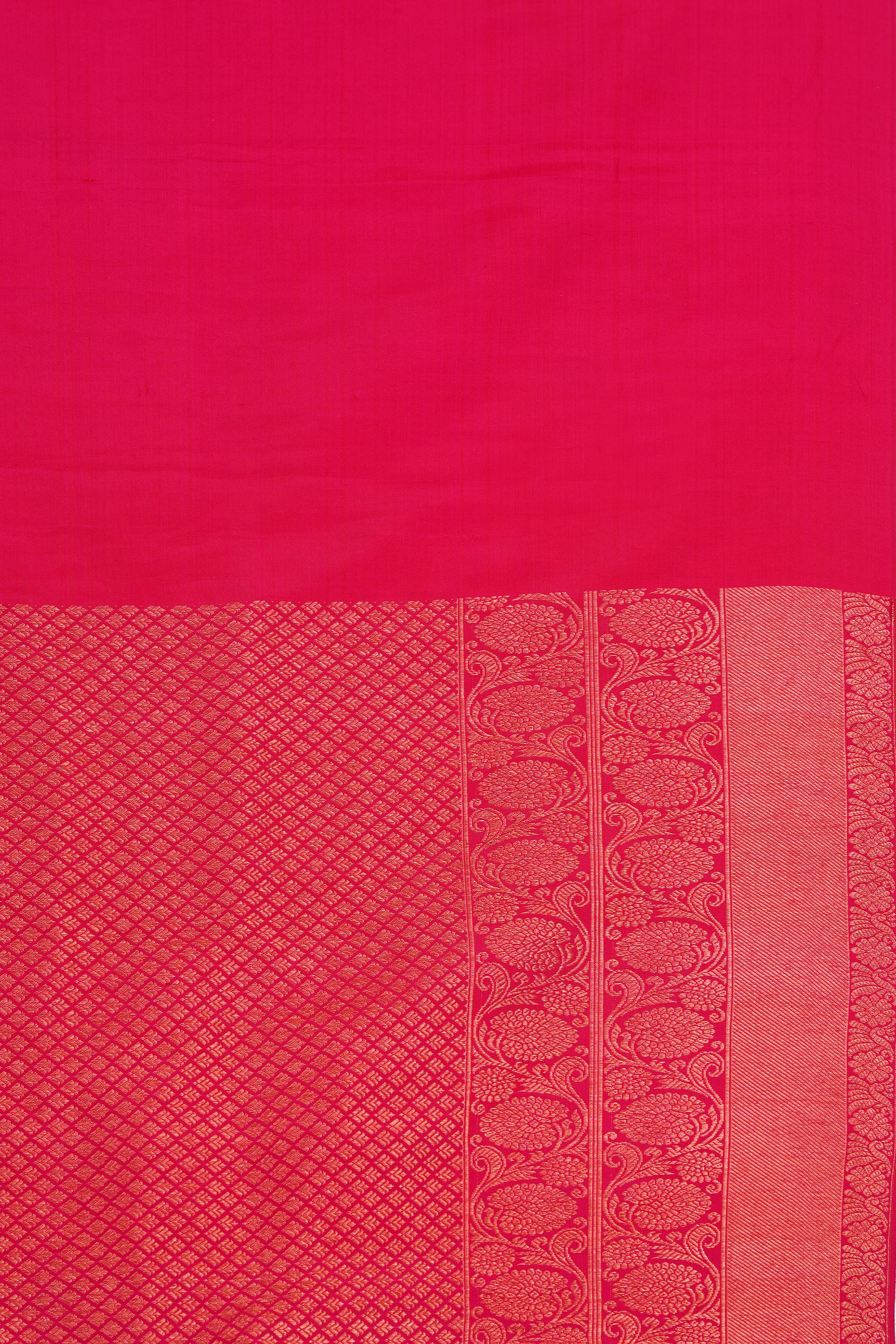 Drape yourself in timeless elegance with this 2 Gram Gold Kancheepuram Handloom Silk Saree, a masterpiece woven by skilled artisans of South India. Crafted from rich silk and adorned with pure zari work, this saree radiates regal charm in its vibrant magenta and golden weave. The intricate motifs and traditional border make it a perfect choice for weddings, bridal wear, temple occasions, and festive celebrations.