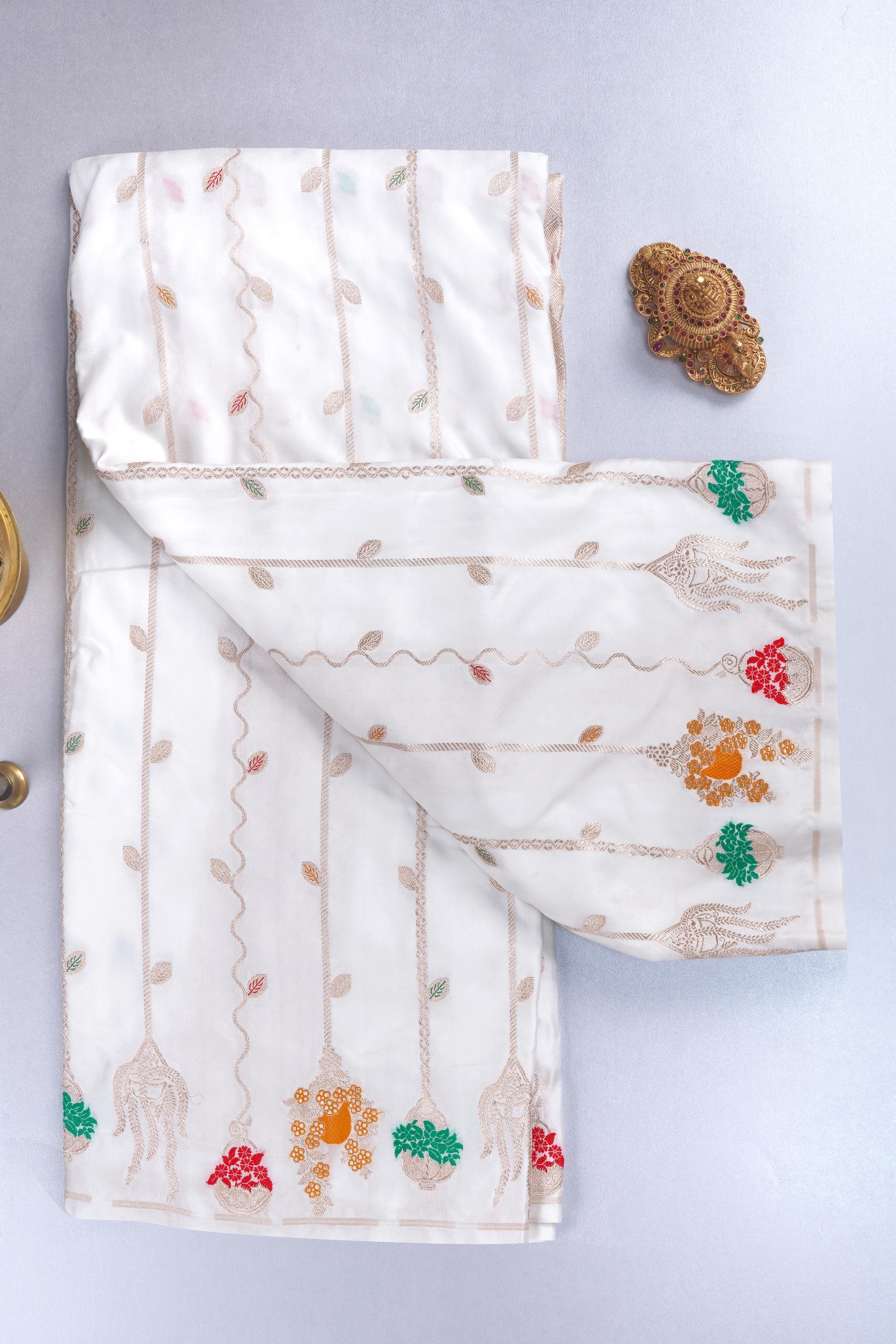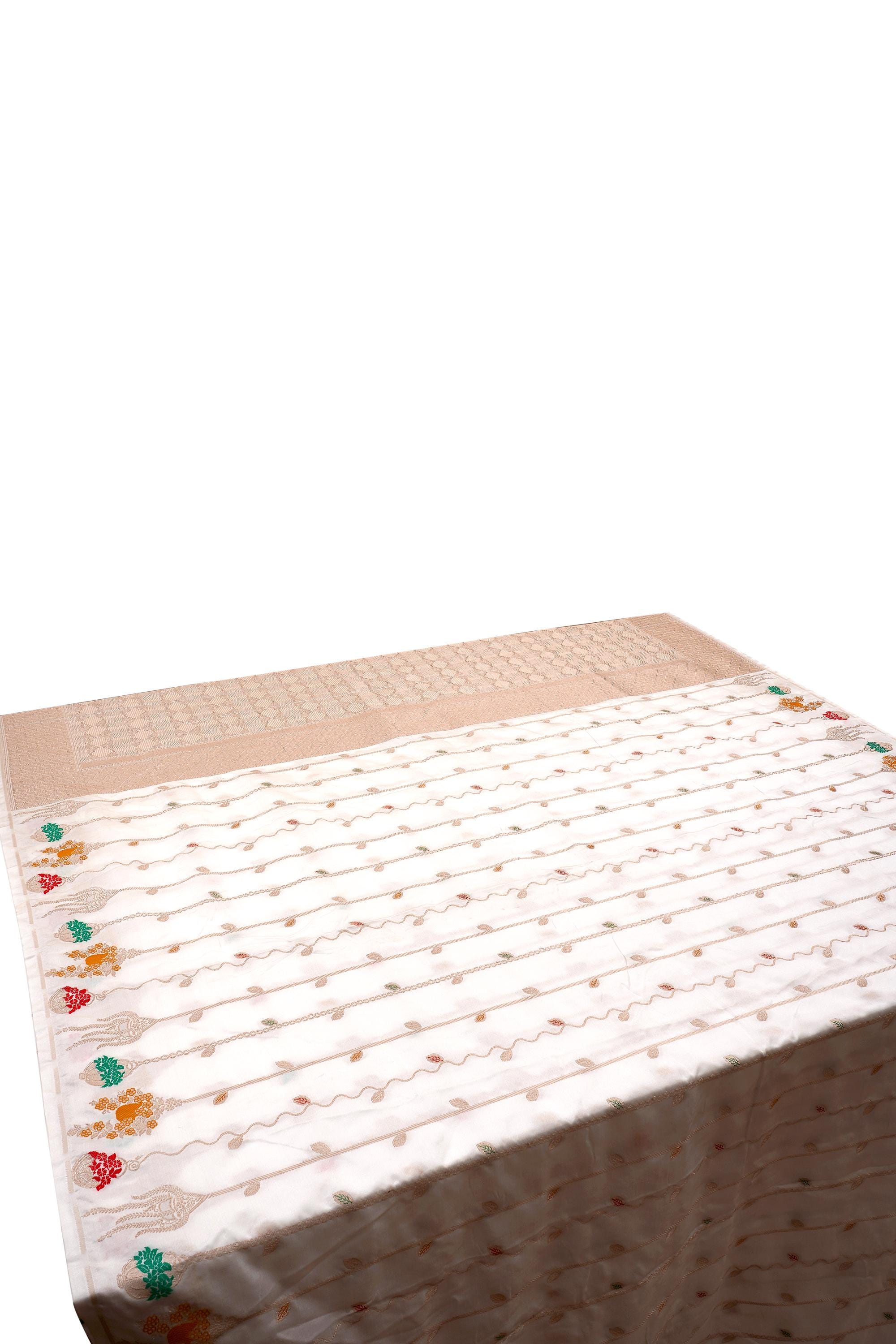 Mashru Meenakari Katan Zari Silk Saree: Handloom Banarasi Weave, Silk Mark.