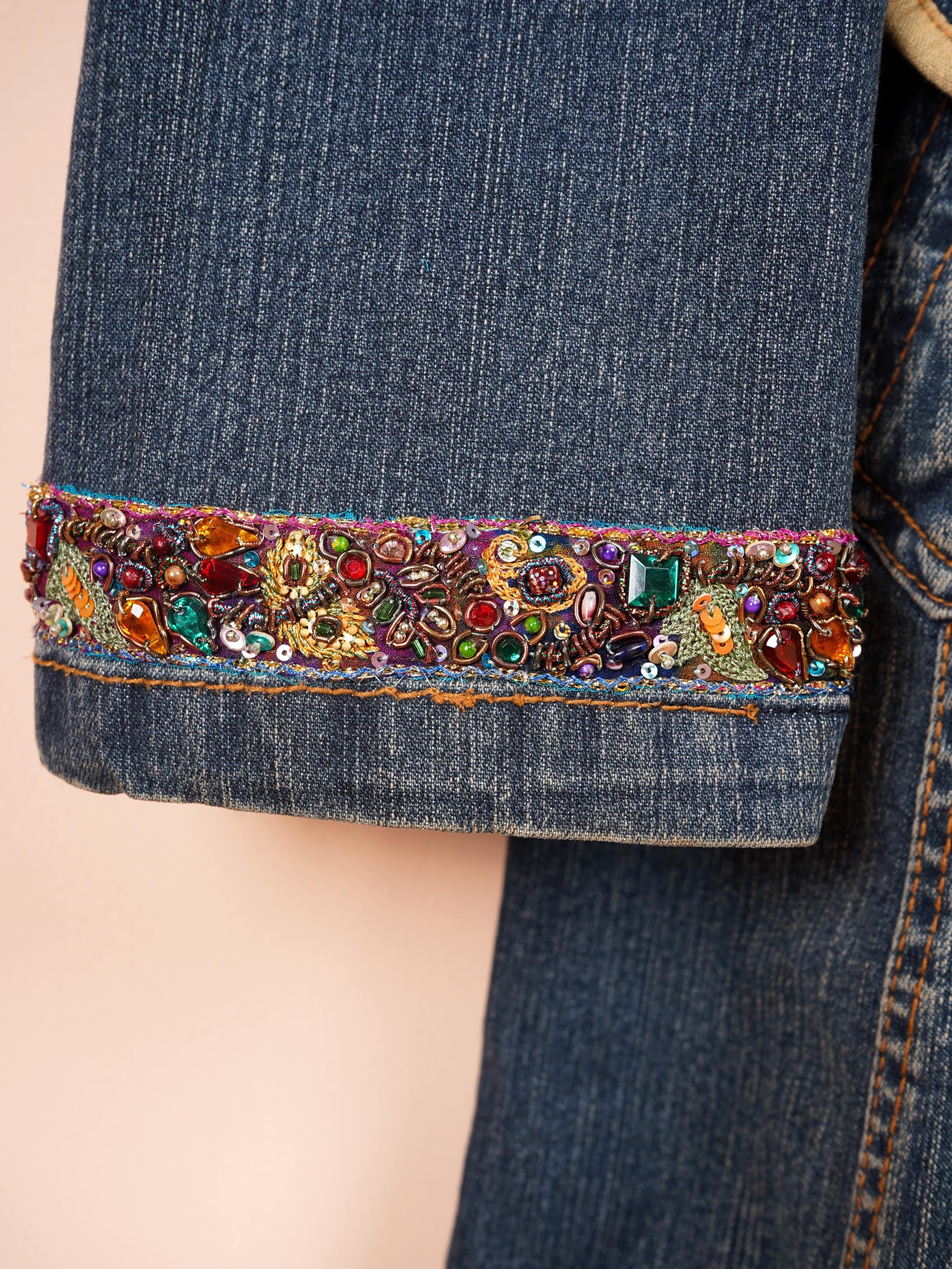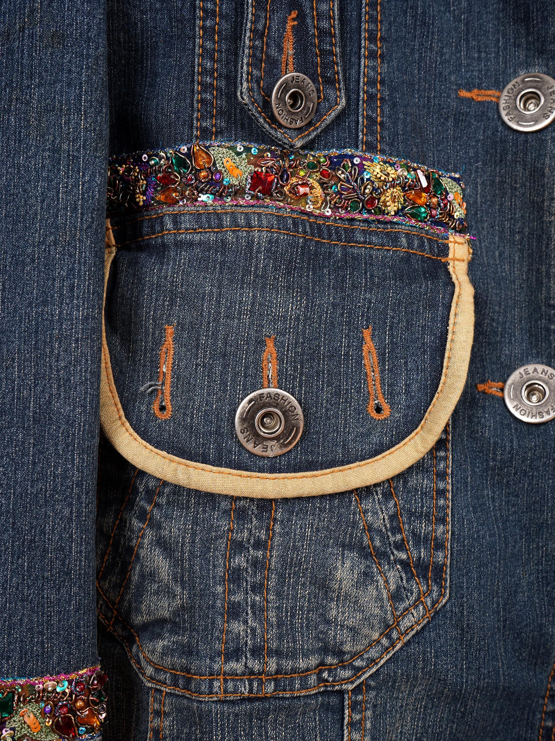 Whether you’re dancing at a festival, attending a casual outing, or looking for a statement piece for your wardrobe, this hand-embroidered denim jacket is your go-to choice.