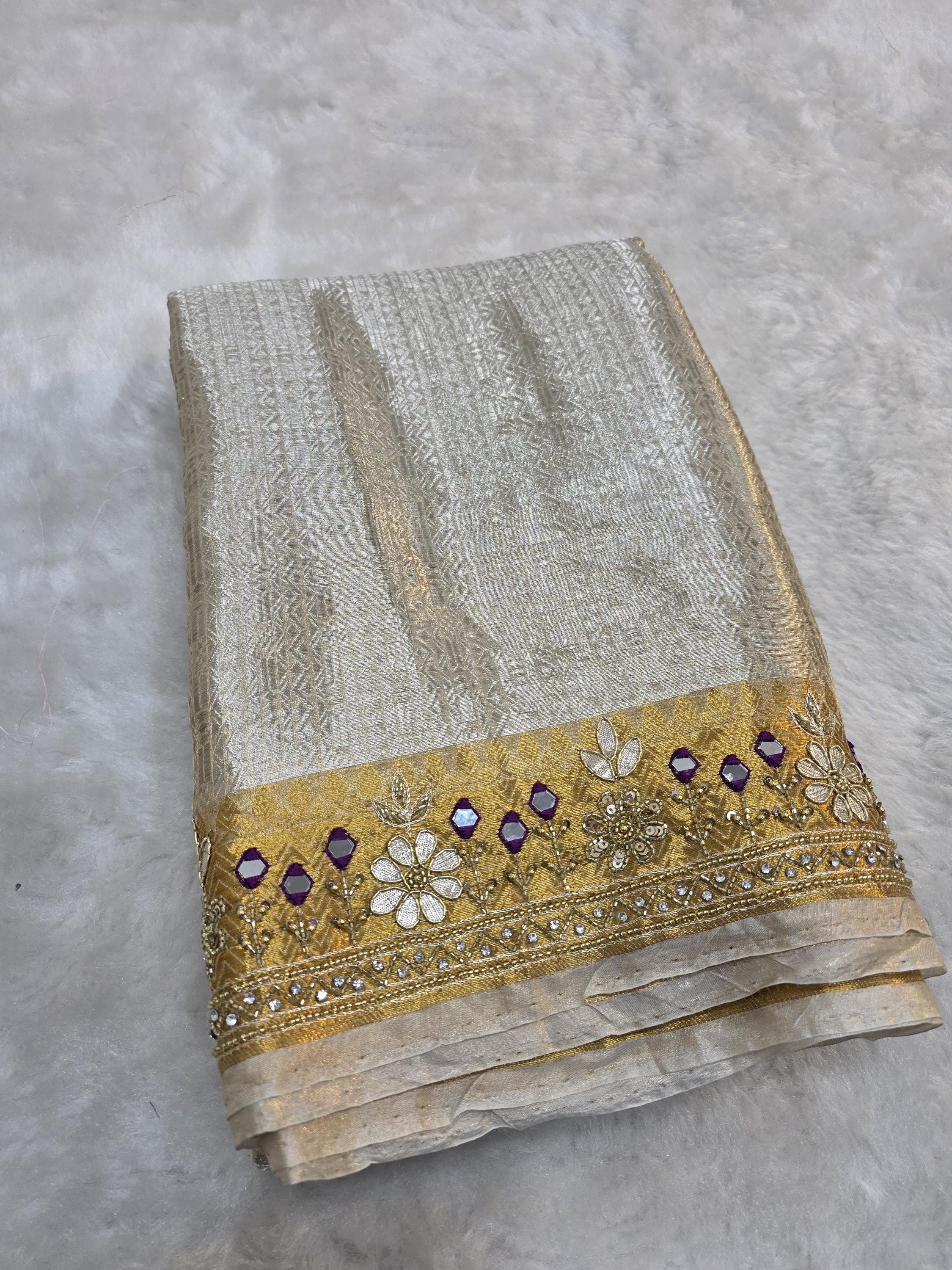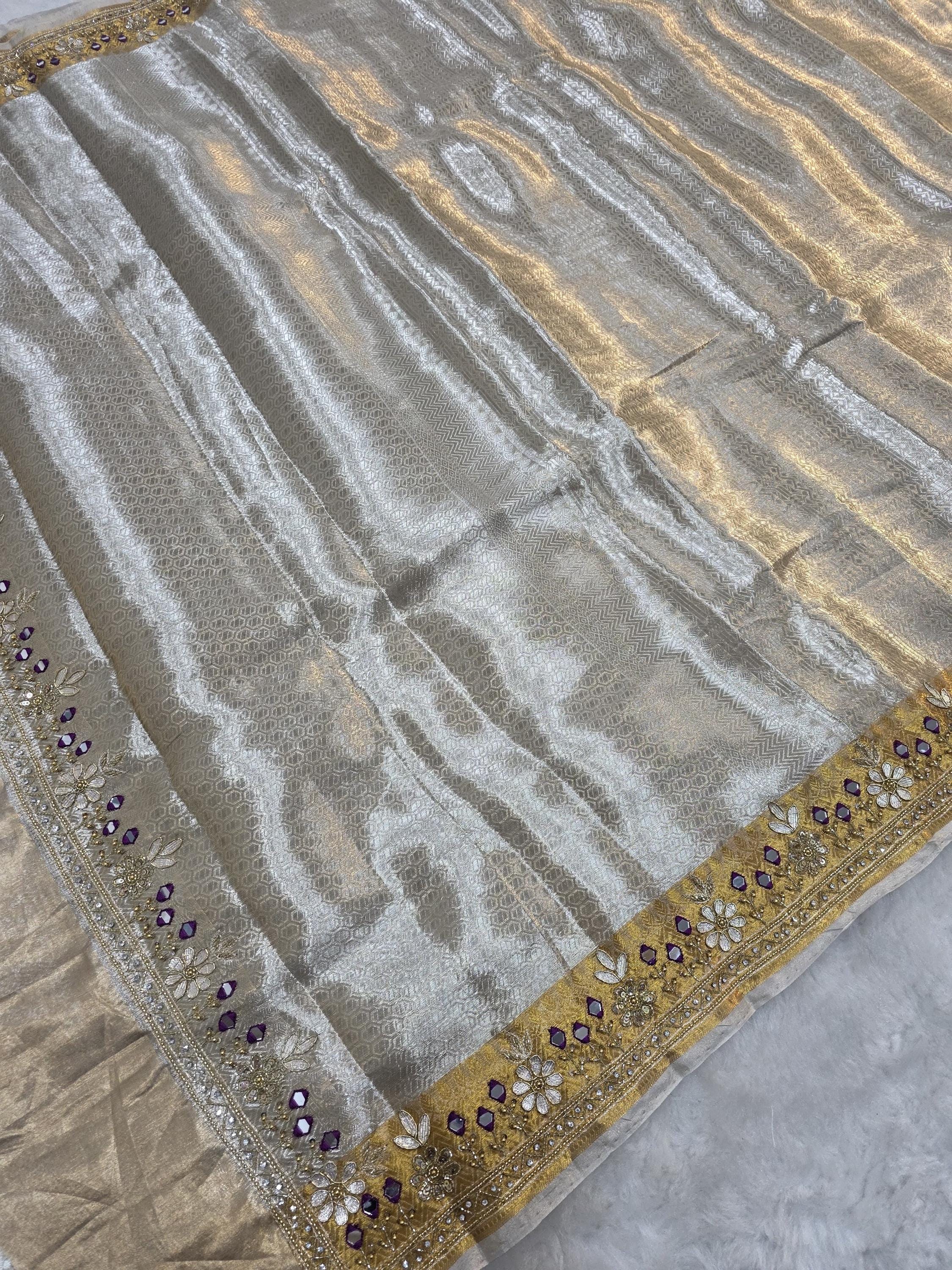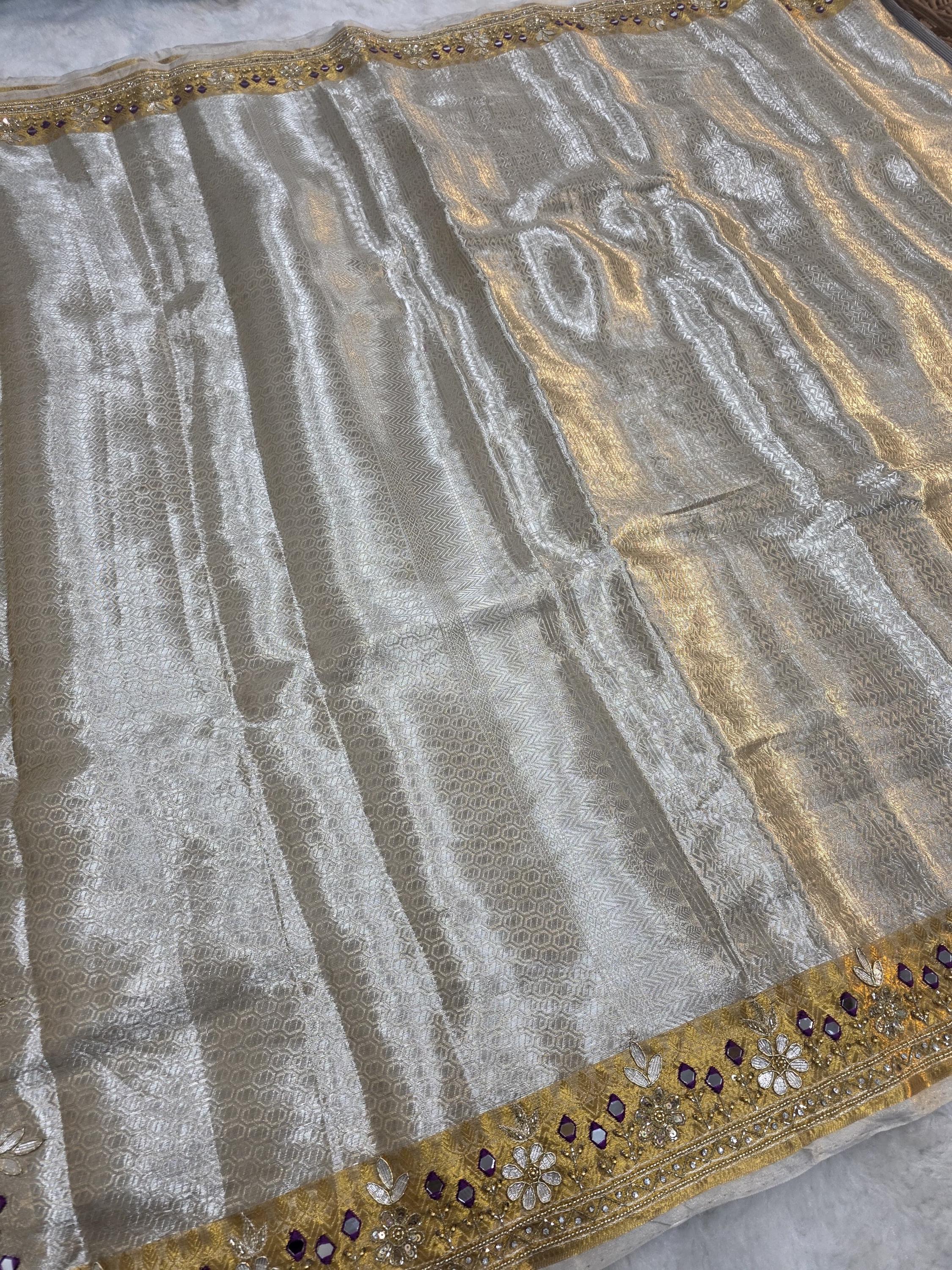 Embroidery tissue Saree, beaded hand work Weaving Handloom exclusive weaving ,banarasi border, silk mark, Manish Malhotra Inspired.