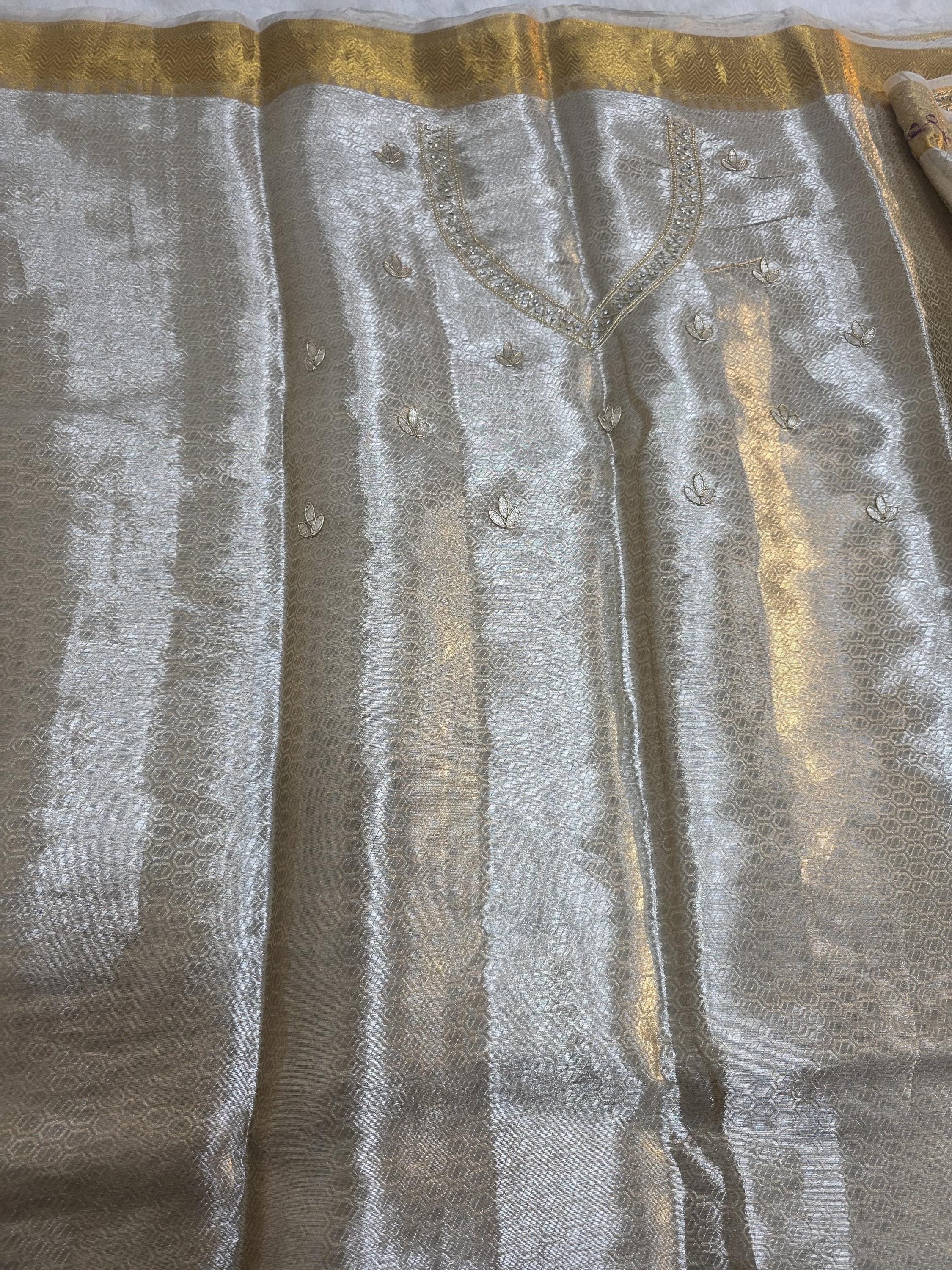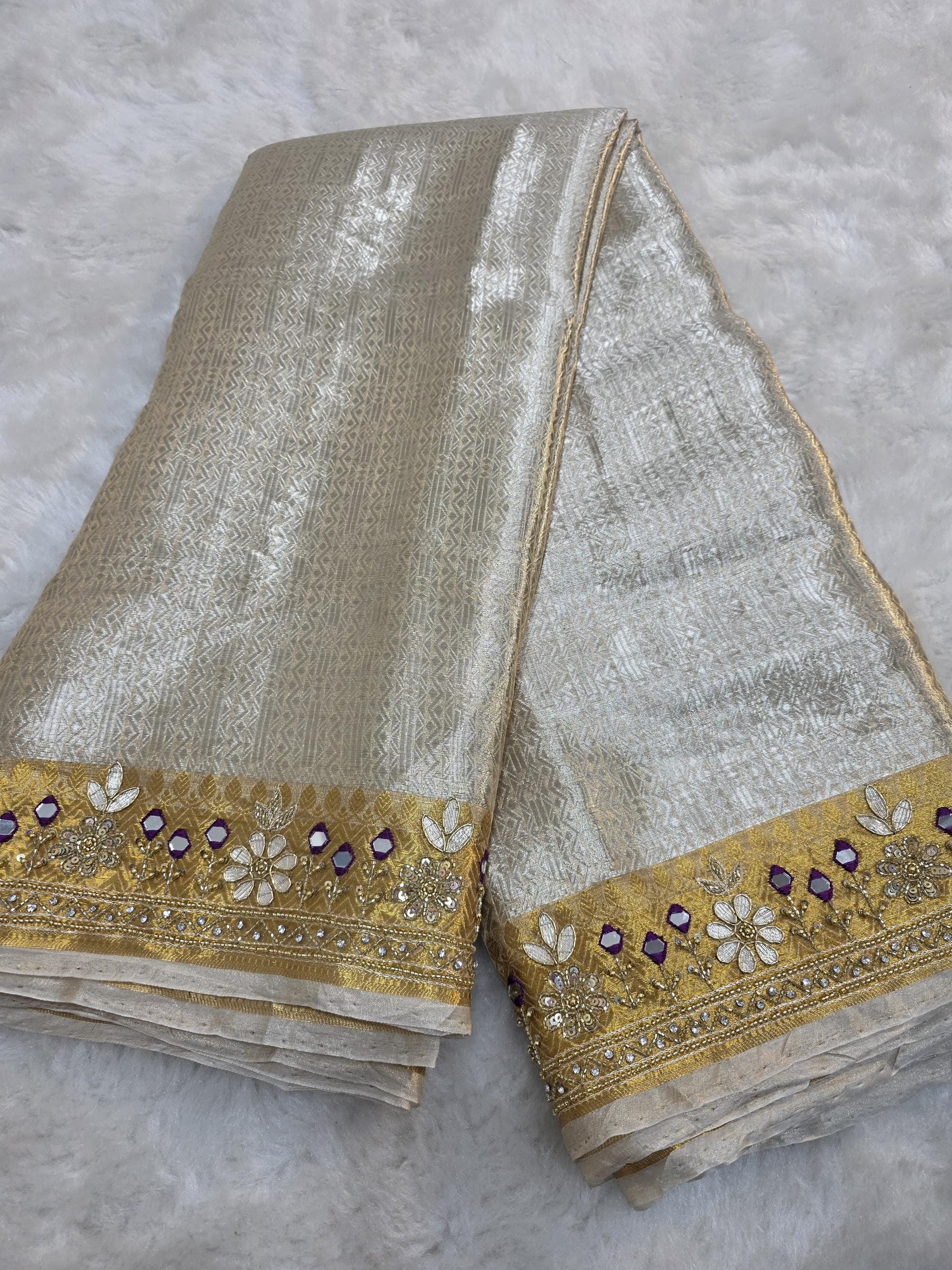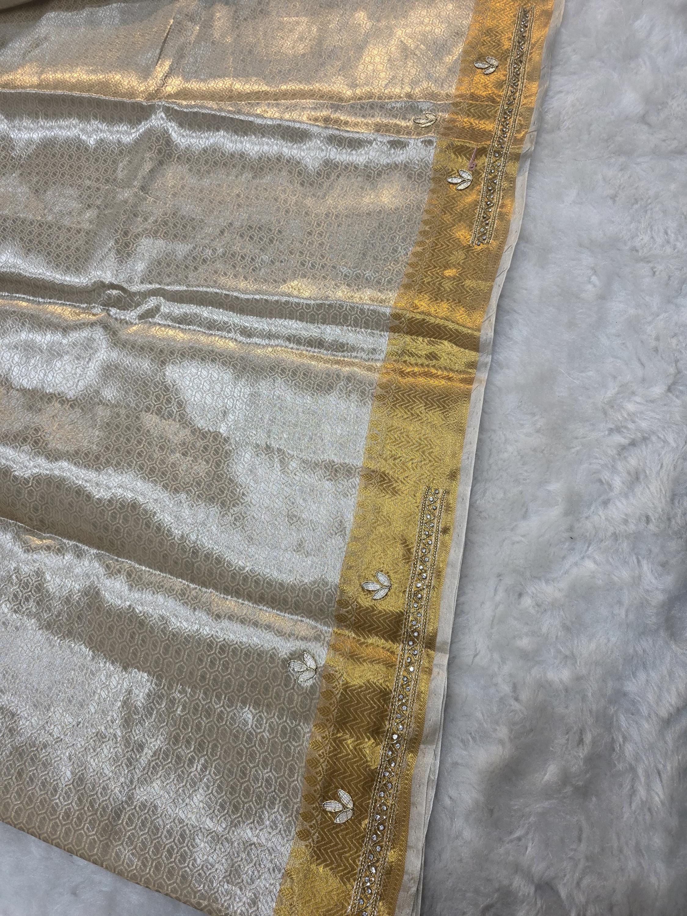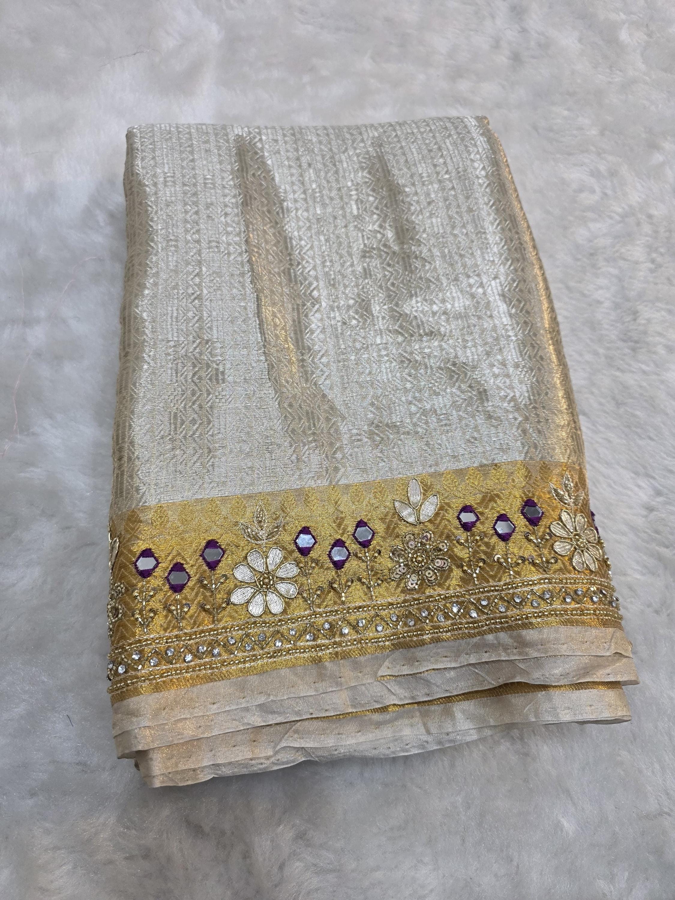 Embroidery tissue Saree, beaded hand work Weaving Handloom exclusive weaving ,banarasi border, silk mark, Manish Malhotra Inspired.