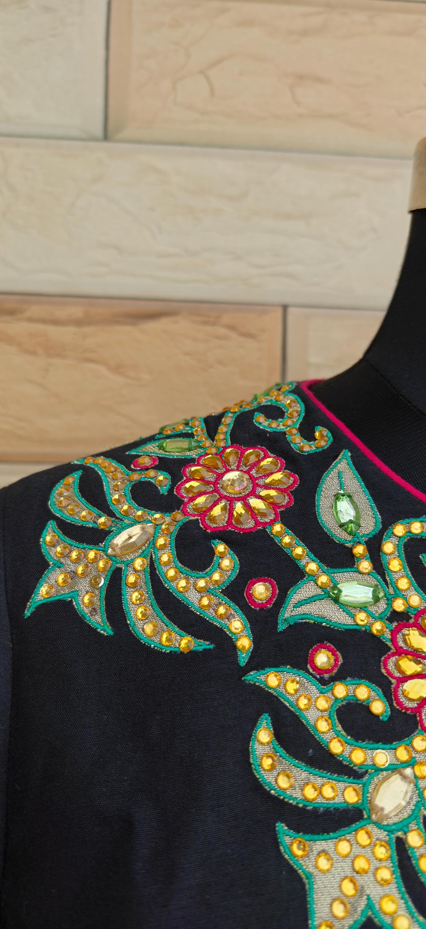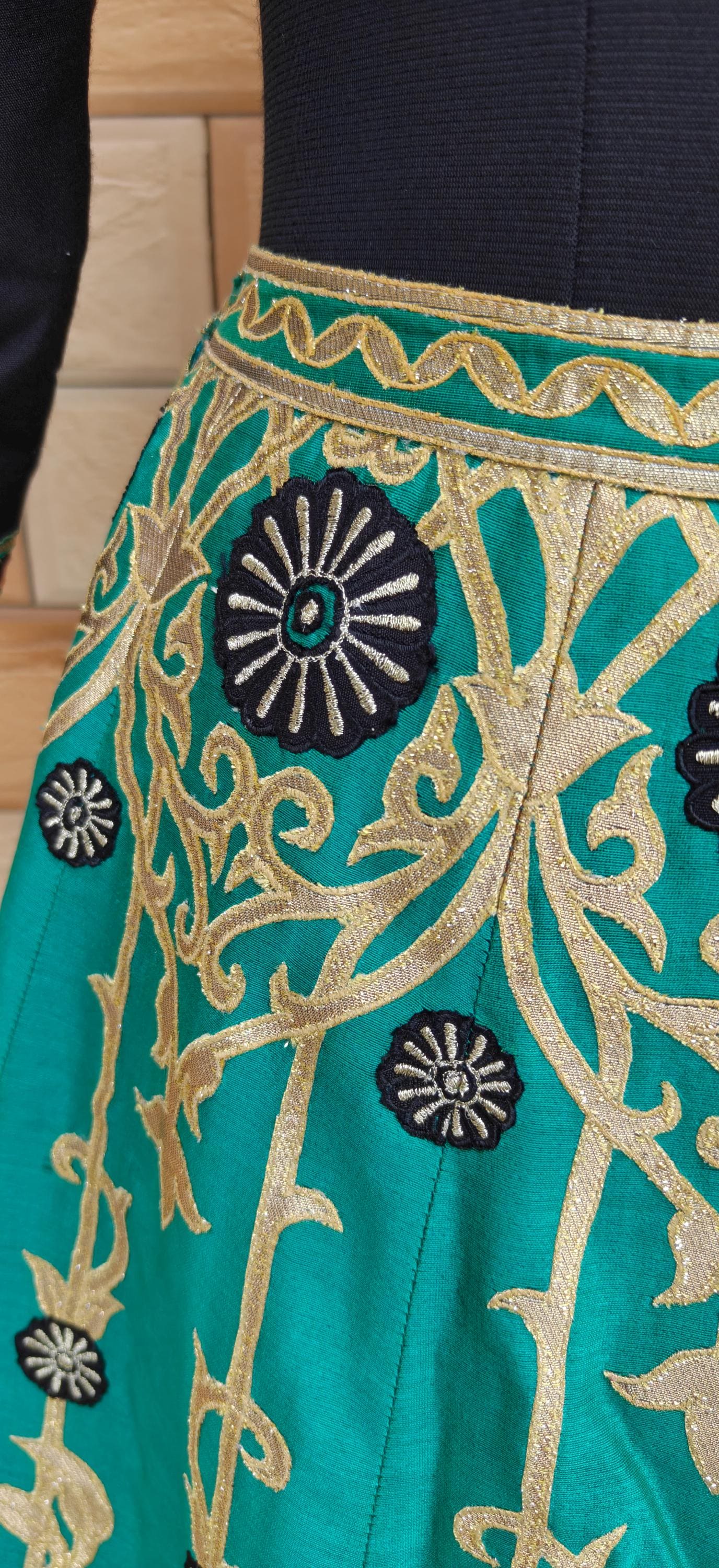 A regal, festive ensemble designed for special occasions, showcasing skilled craftsmanship and traditional artistry. Ideal for someone who wants to make a bold, beautiful statement at events.