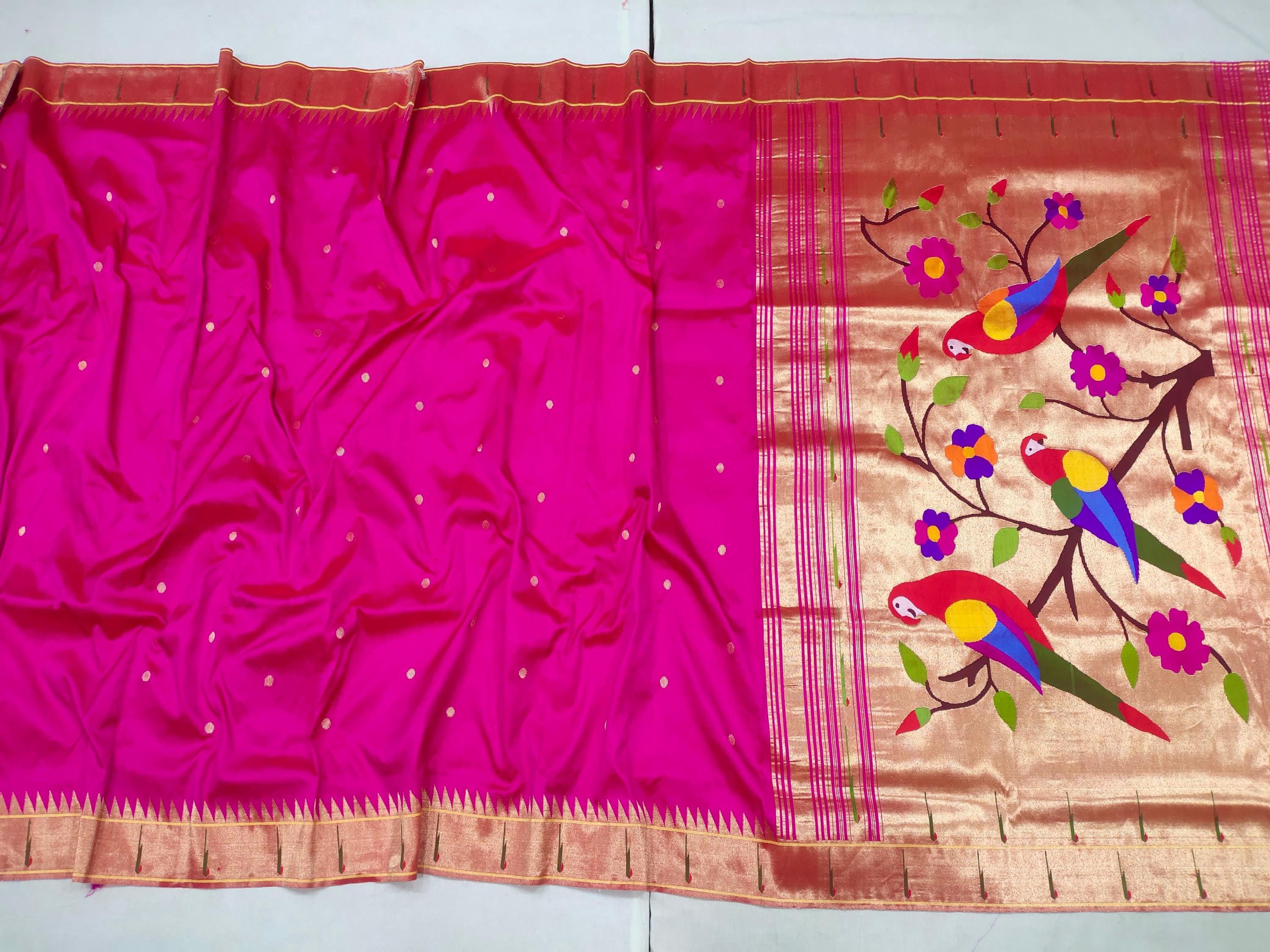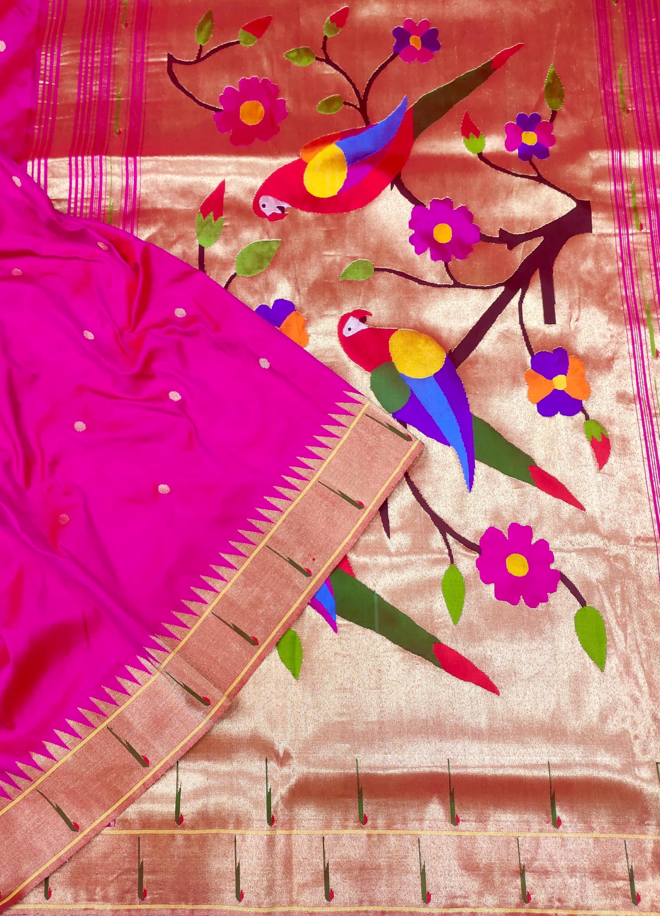 Parrot Kancheepuram Muniya Border Silk Saree | Pure Zari South Indian Wedding Pattu