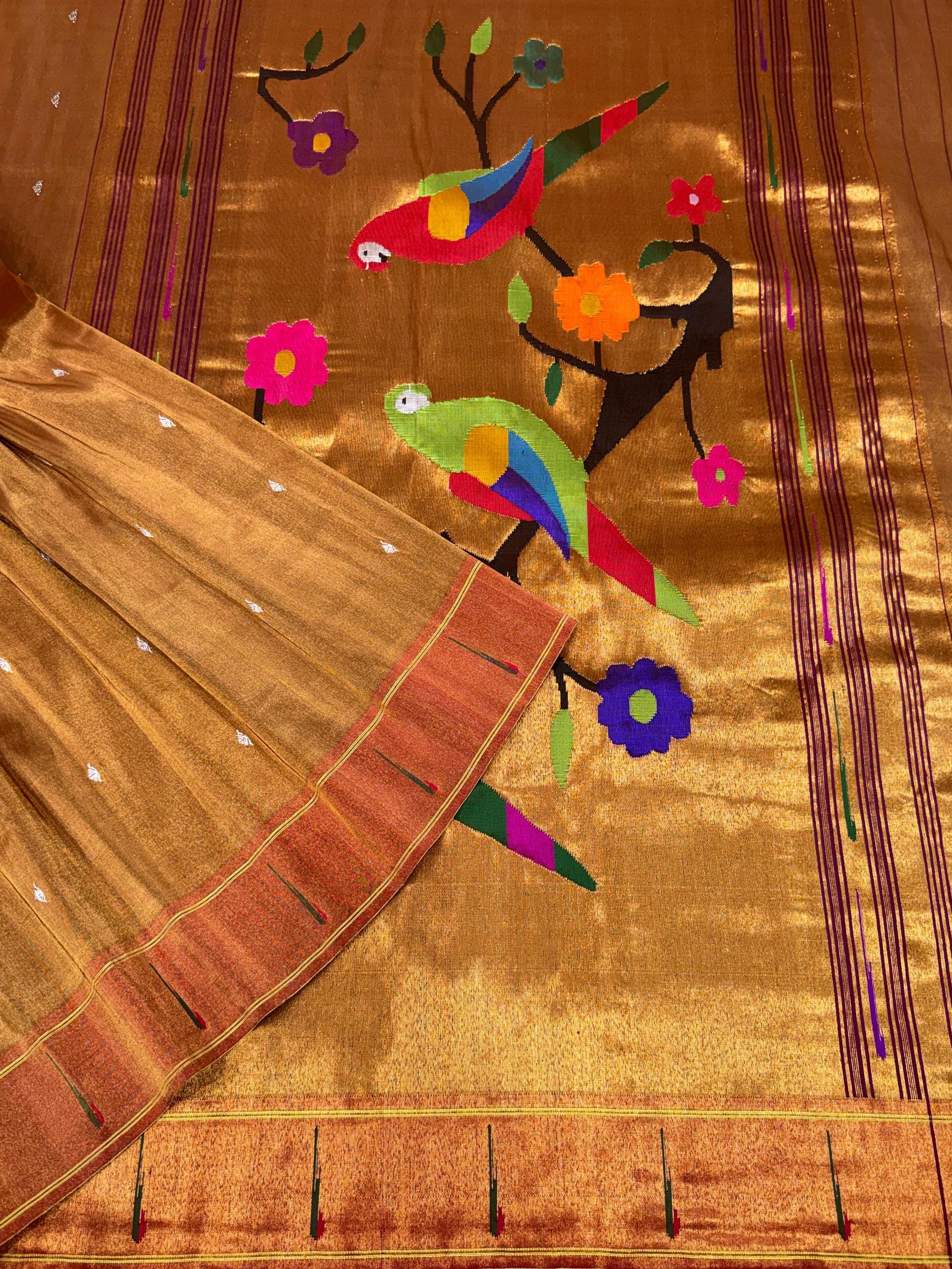 Parrot Kancheepuram Muniya Border Silk Saree | Pure Zari South Indian Wedding Pattu