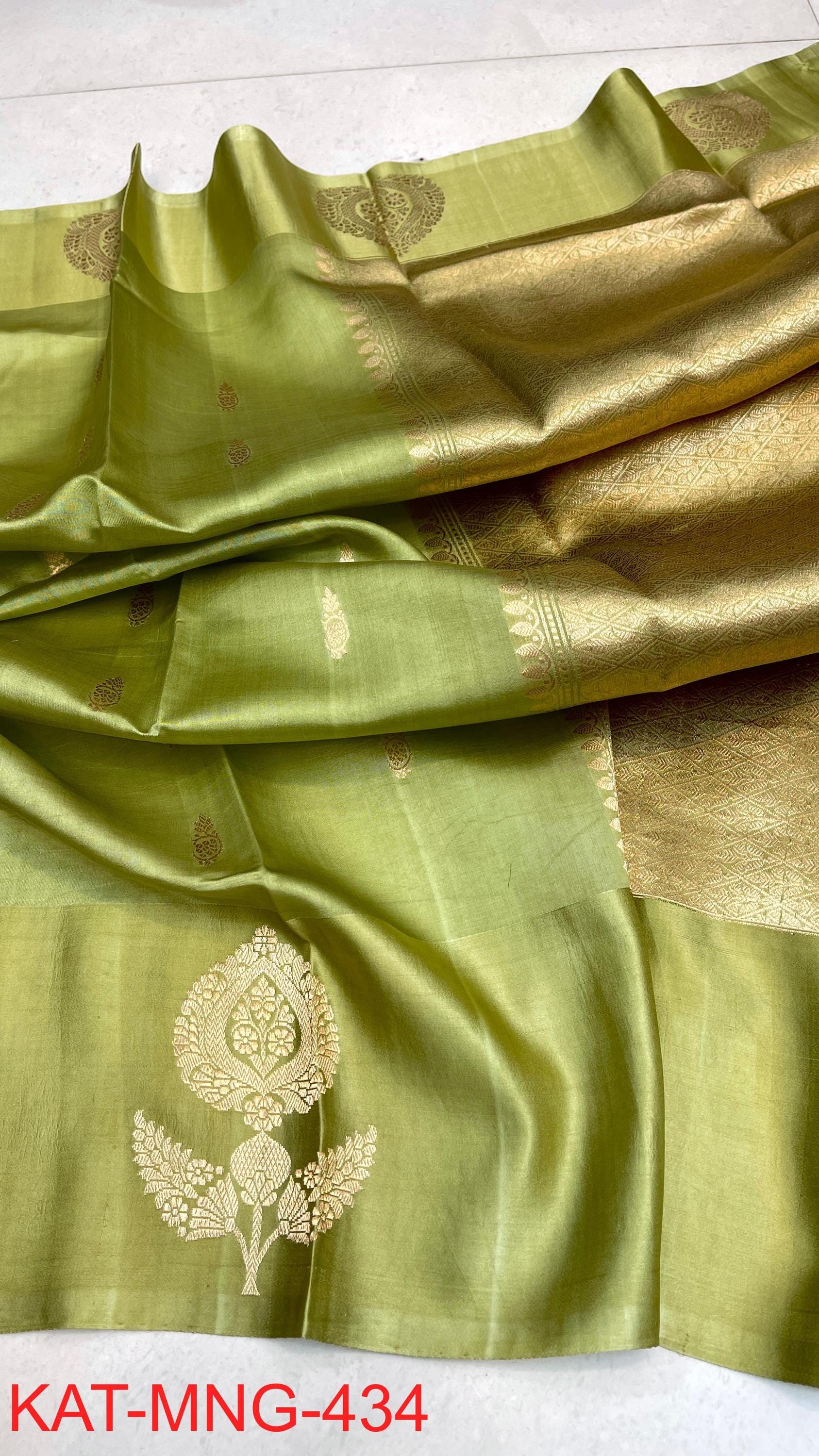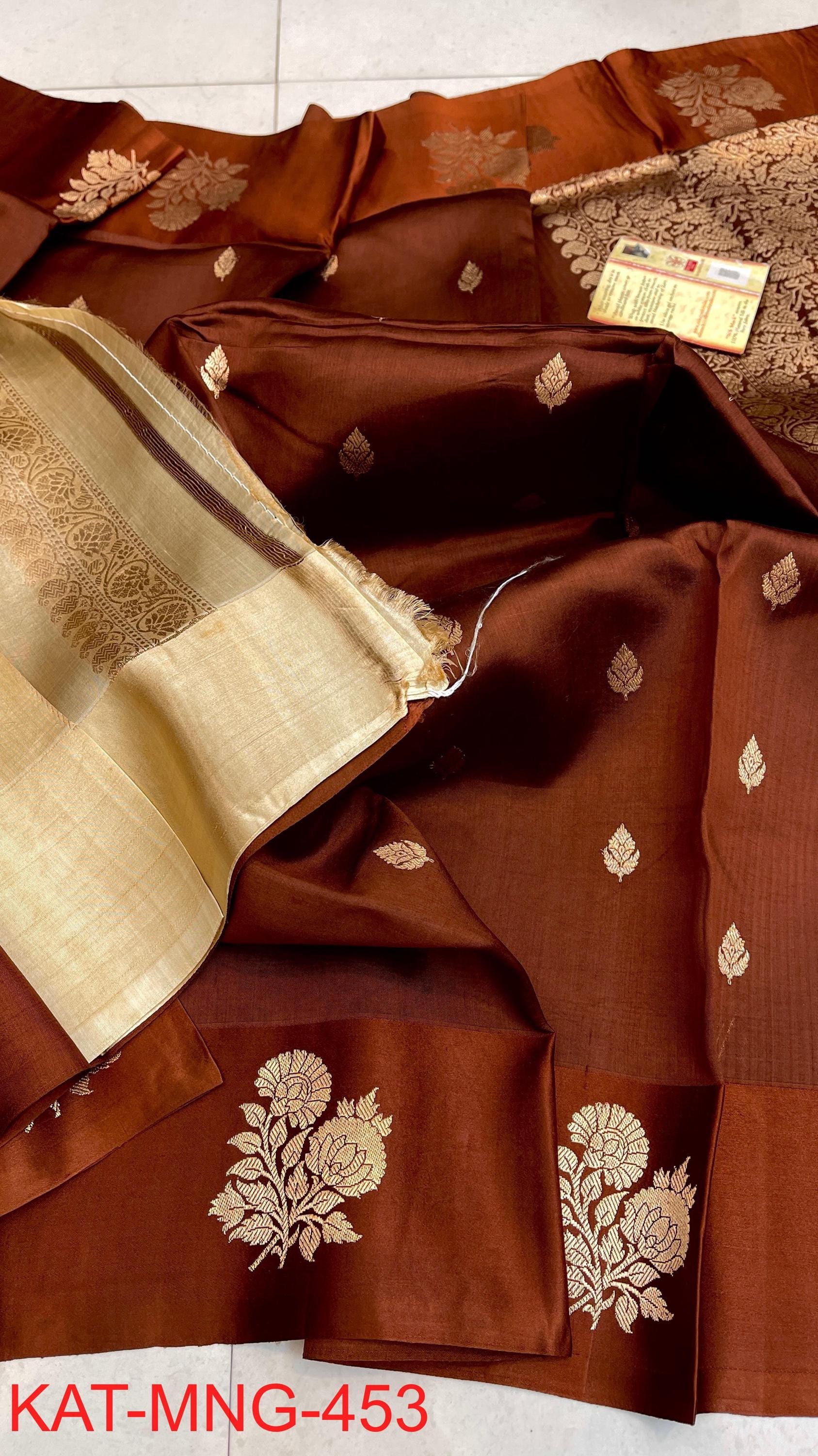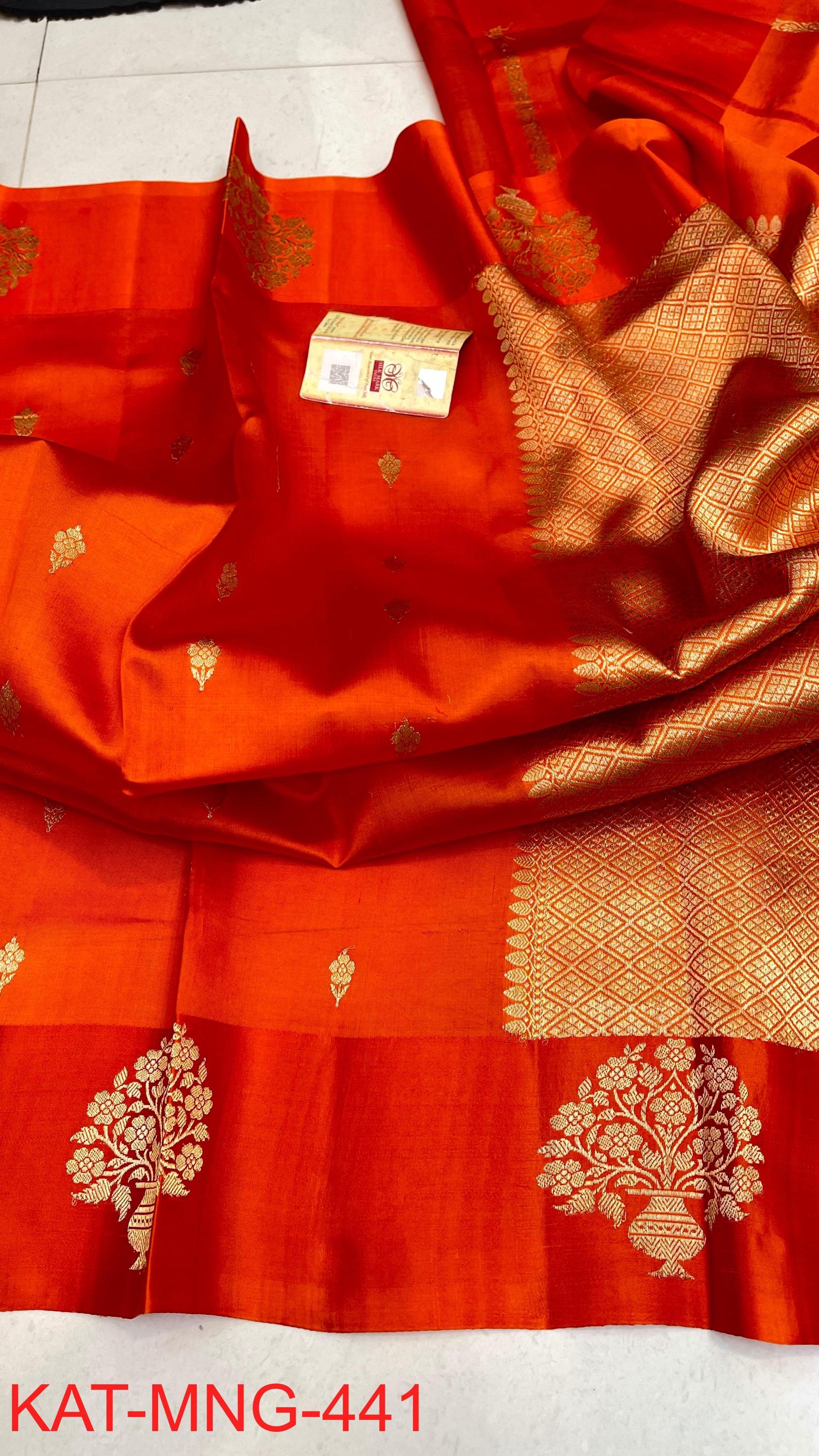Pure Authentic Hand Weave raw mango Banarasi Saree With Blouse Piece
