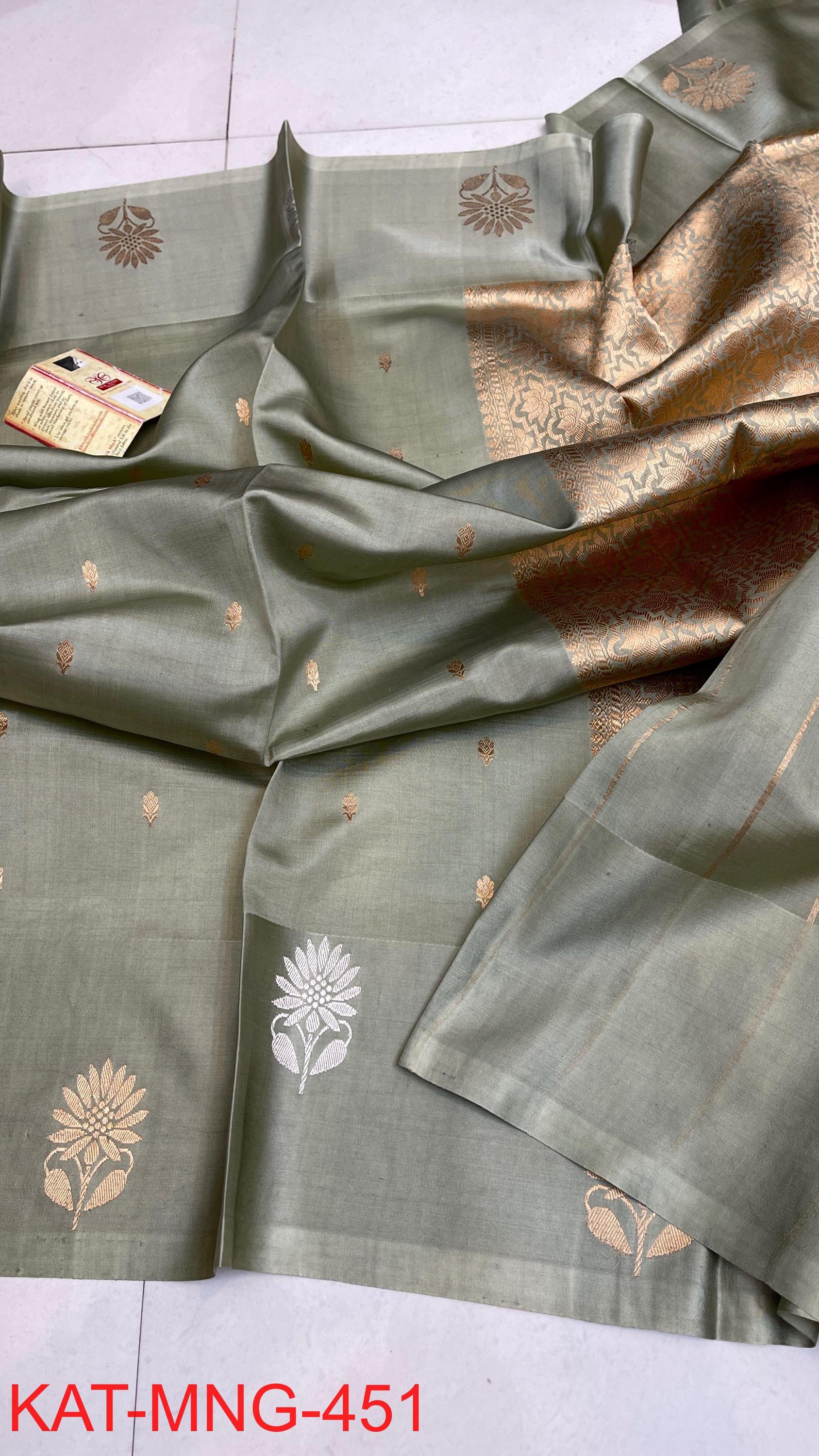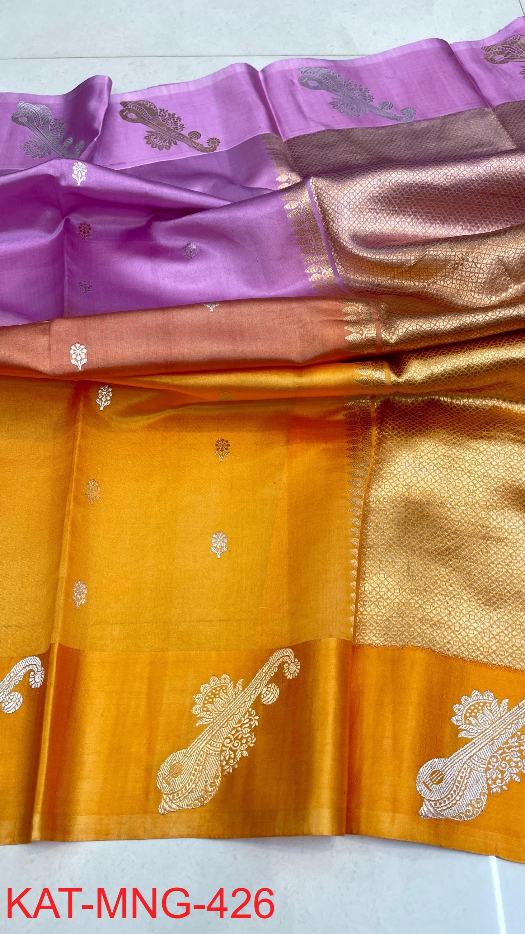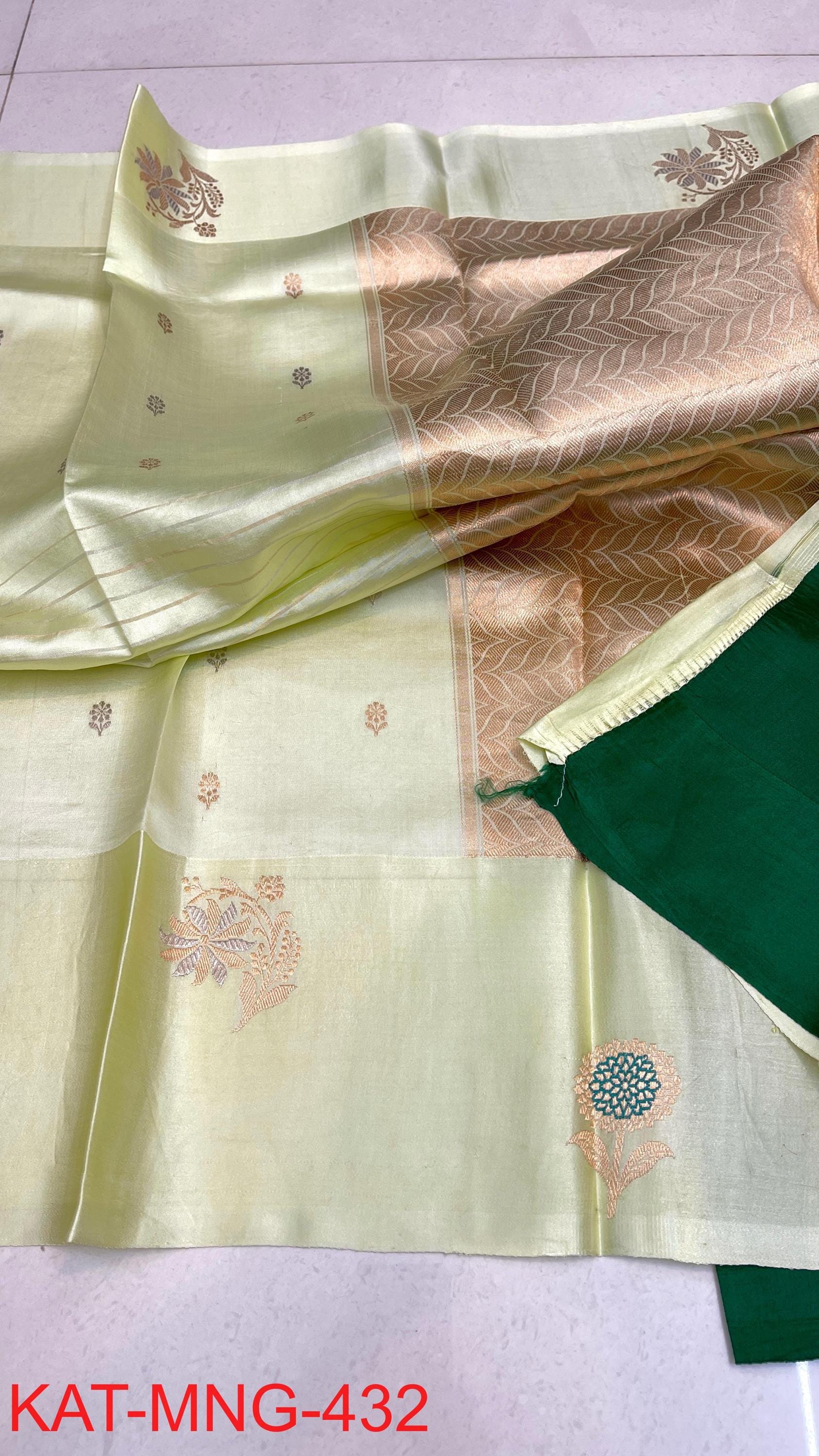 Pure Authentic Hand Weave raw mango Banarasi Saree With Blouse Piece