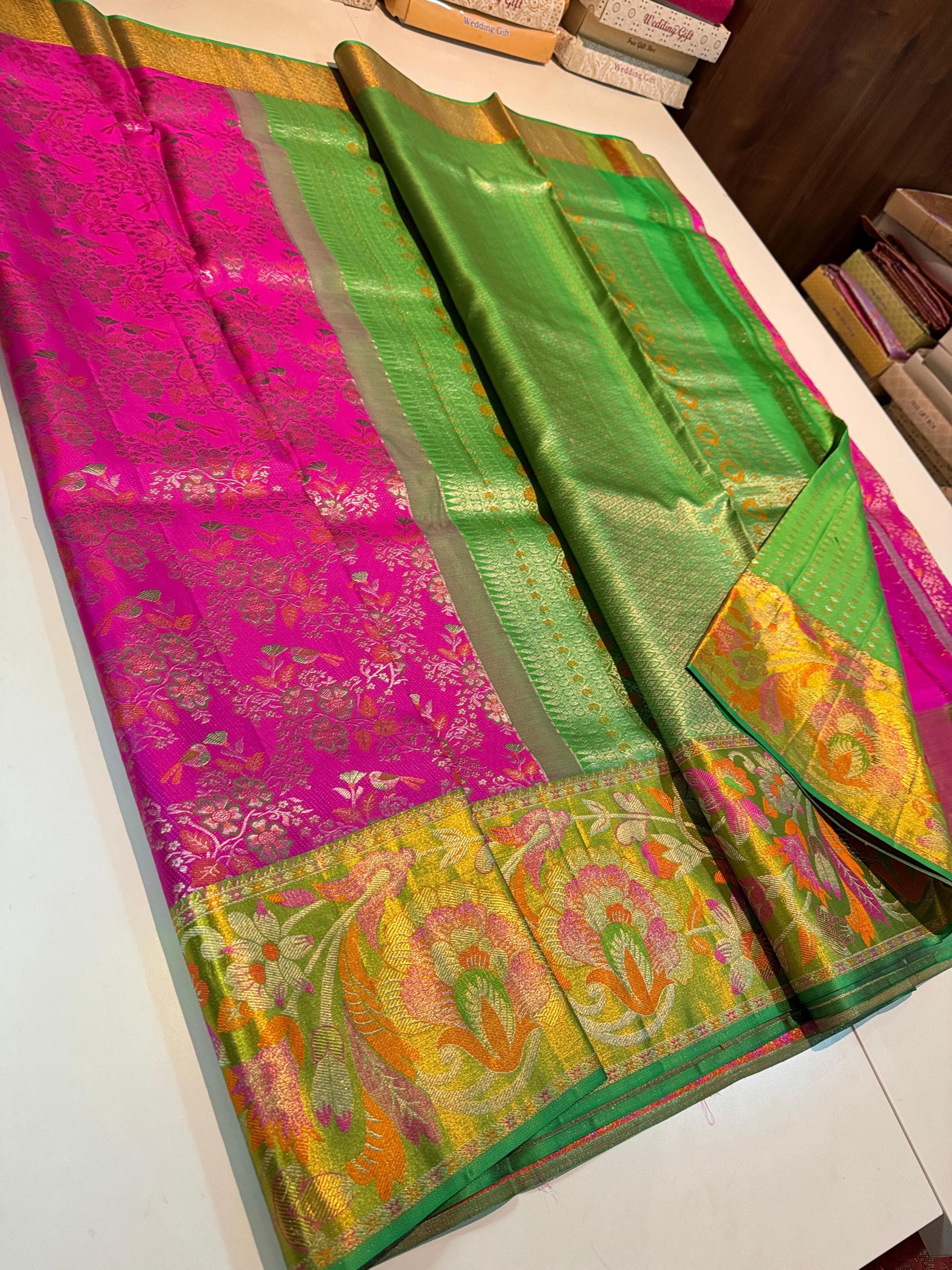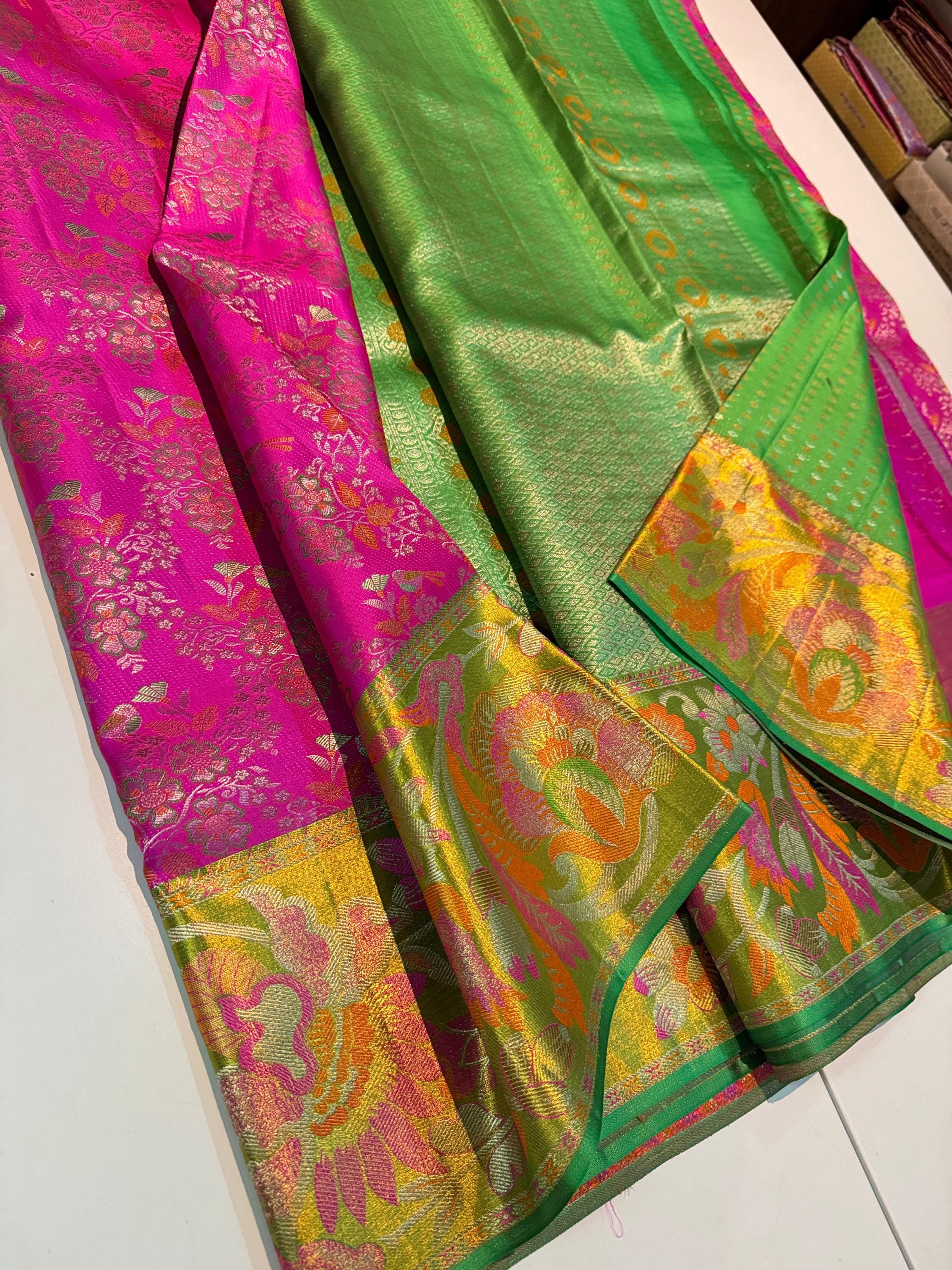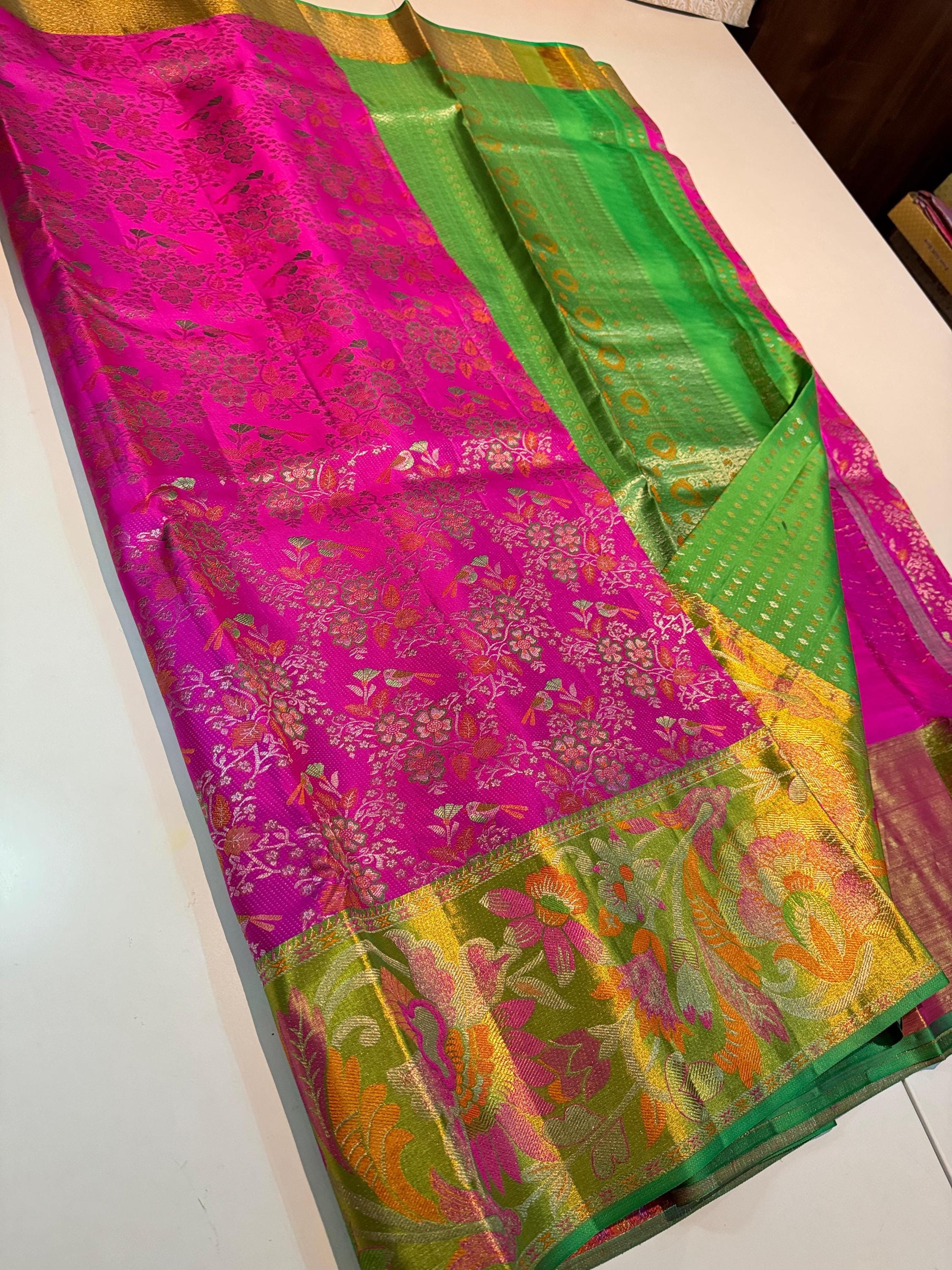 2 Gram hot pink Gold Kancheepuram Silk Saree: Handloom Zari Bridal Pattu