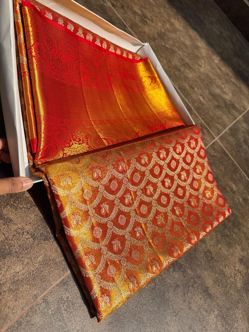 Ideal as a bridal saree, festive wear, or a gift for loved ones, this Kancheepuram silk saree carries the legacy of Indian heritage in every thread.