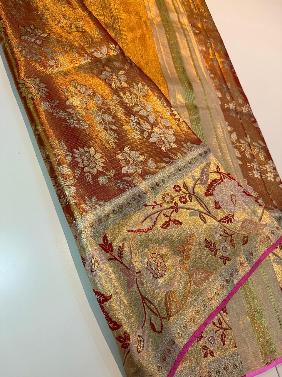 2 Gram flower motifs Gold Kancheepuram Silk Saree: Handloom Zari Bridal Pattu
