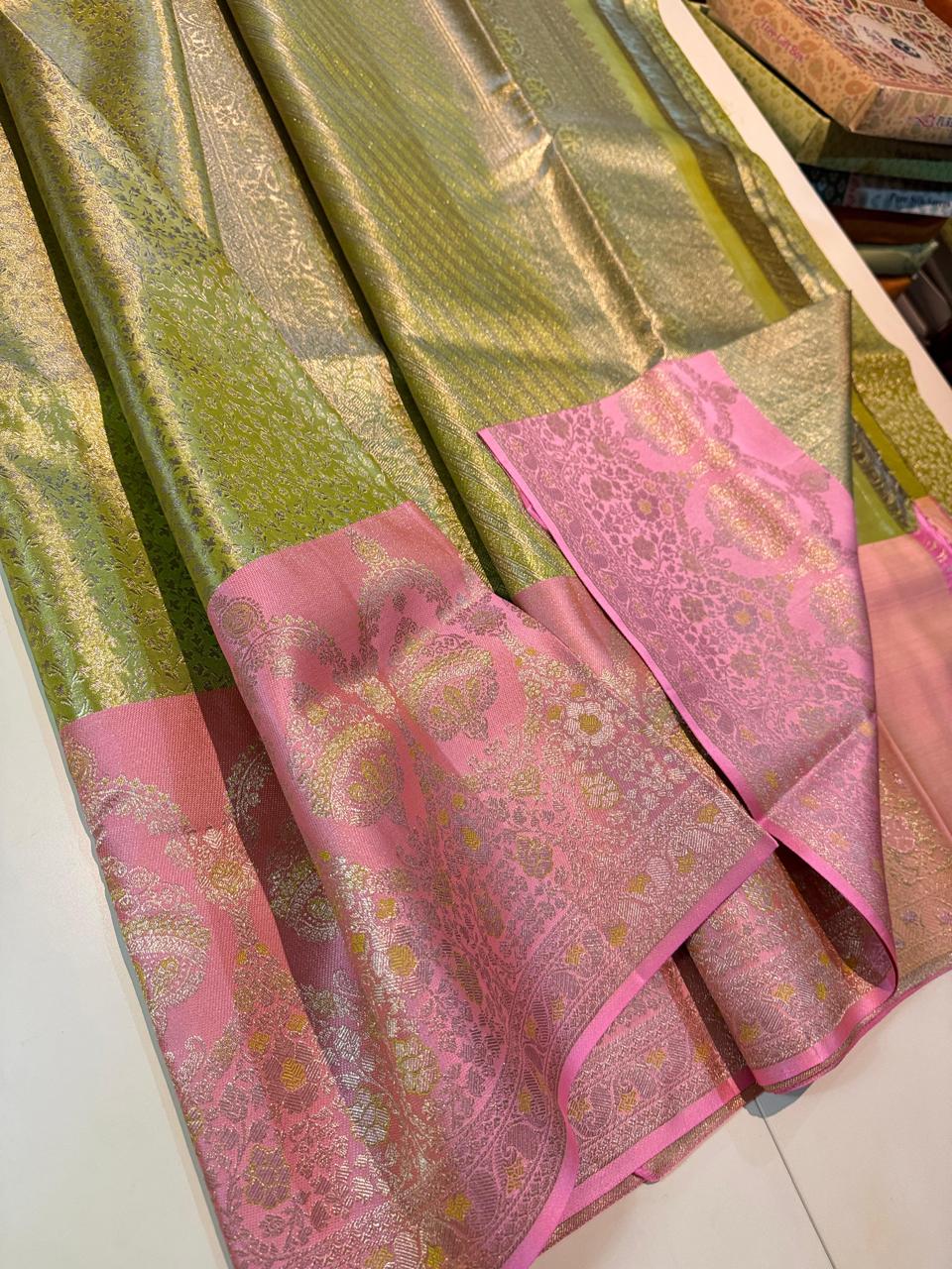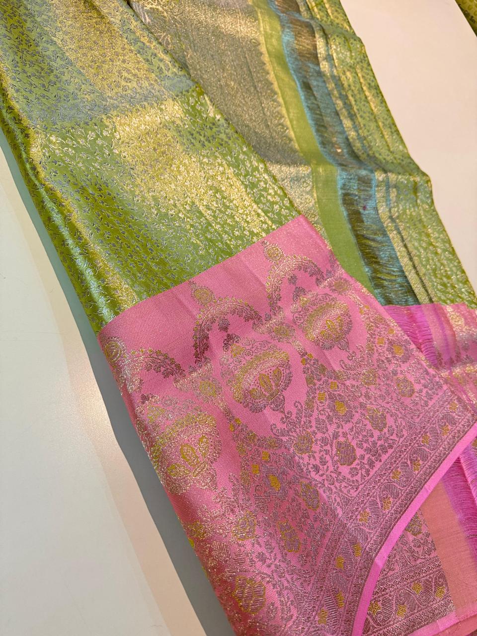 2 Gram light green Gold Kancheepuram Silk Saree: Handloom Zari Bridal Pattu