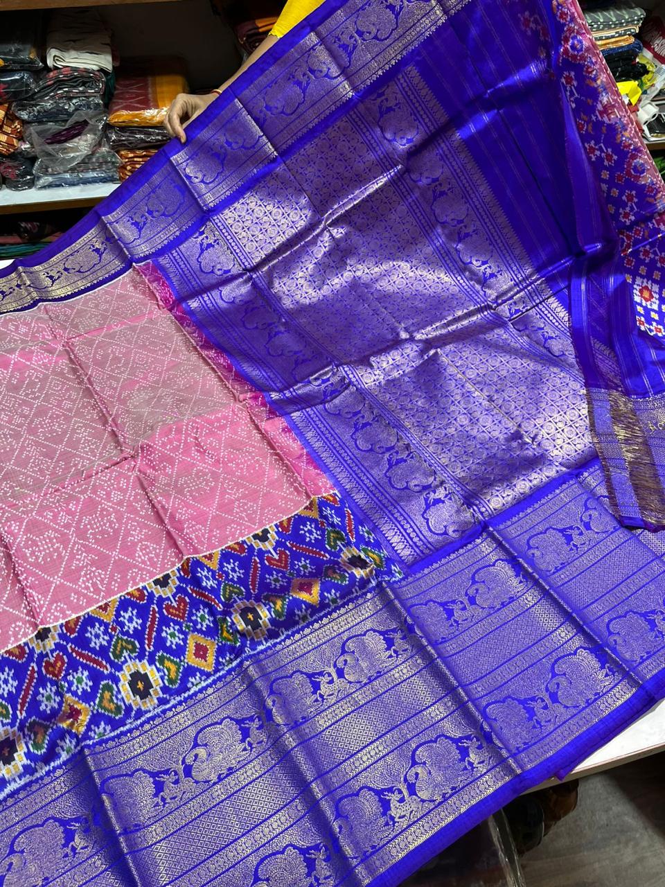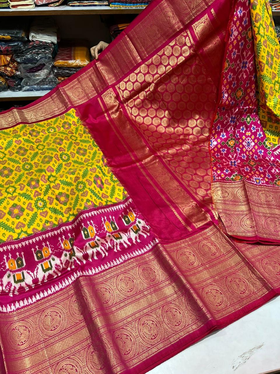 This luxurious pattu saree is lightweight yet grand, ensuring comfort along with a majestic look. Its golden zari shine adds a royal touch, making it a must-have in every saree lover’s collection. Pair it with gold jewelry for an authentic traditional appearance.