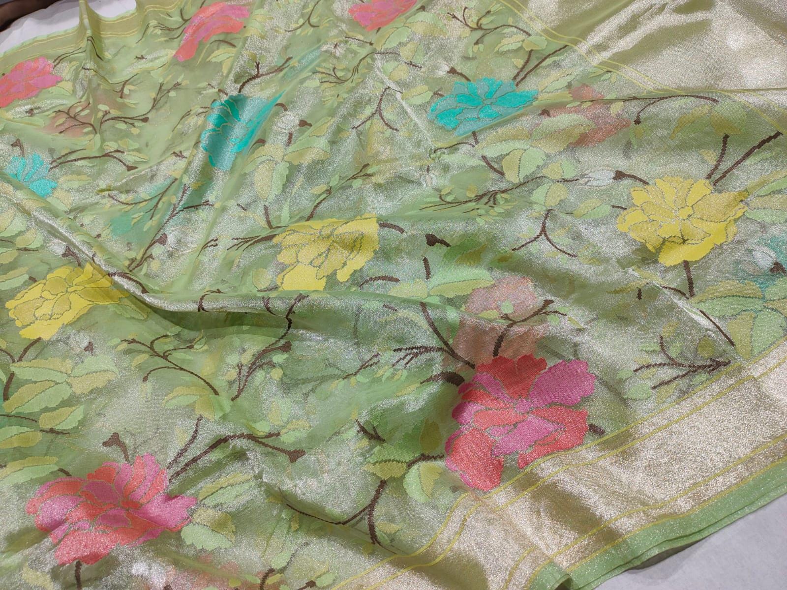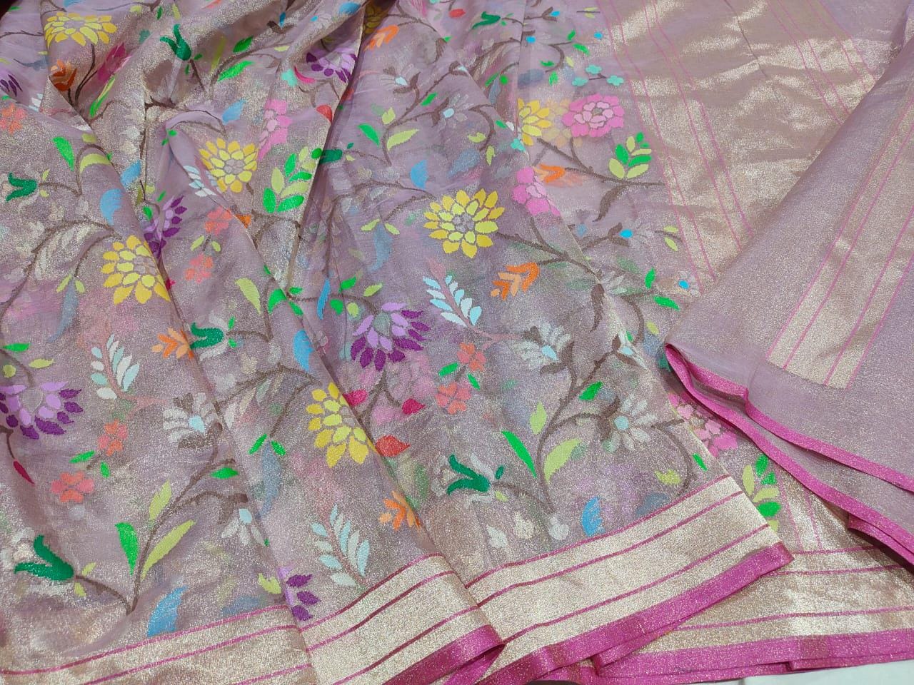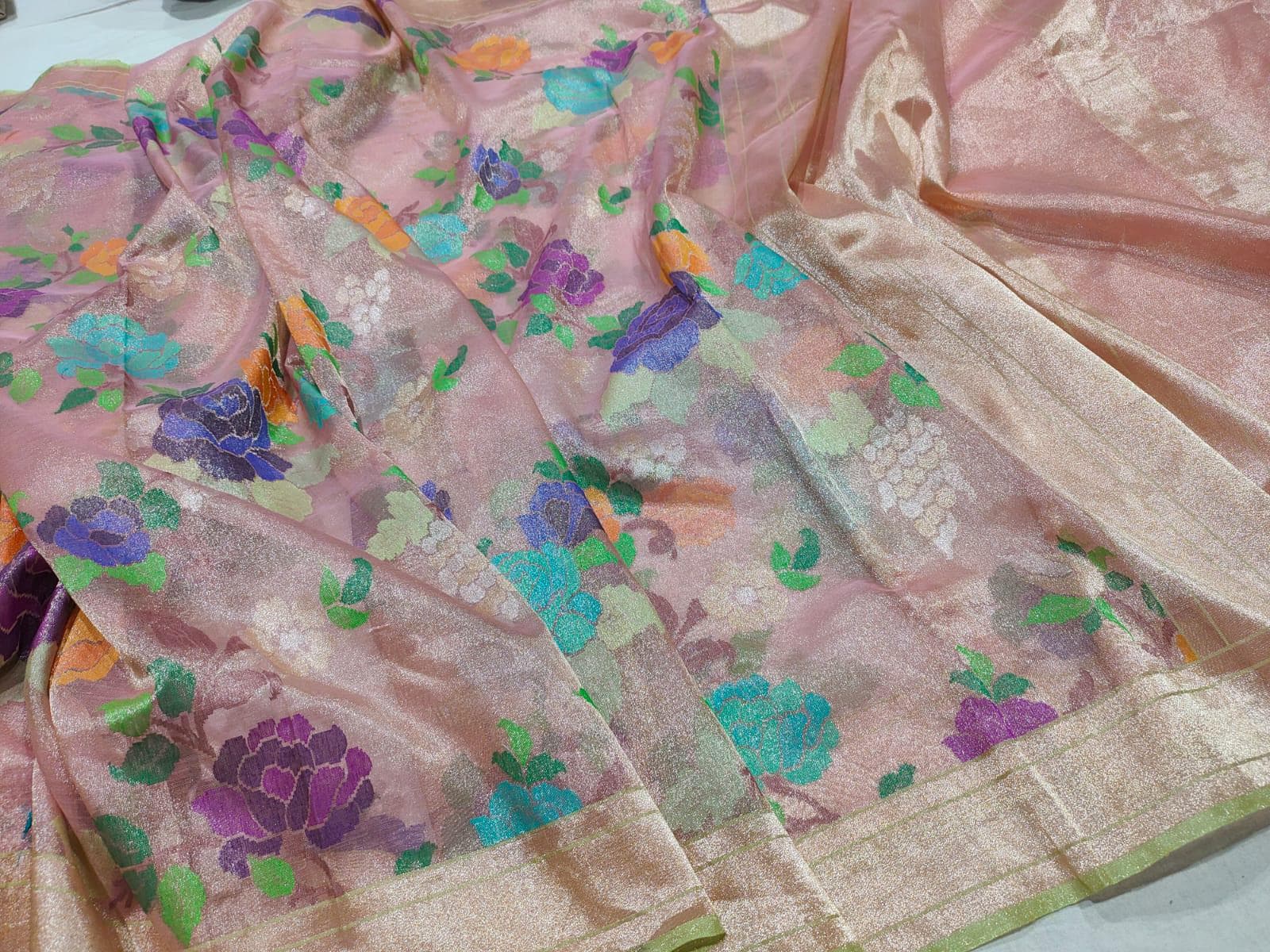 Katan Real gold Zari Saree by handloom weavers of Banaras, silk mark certified.
