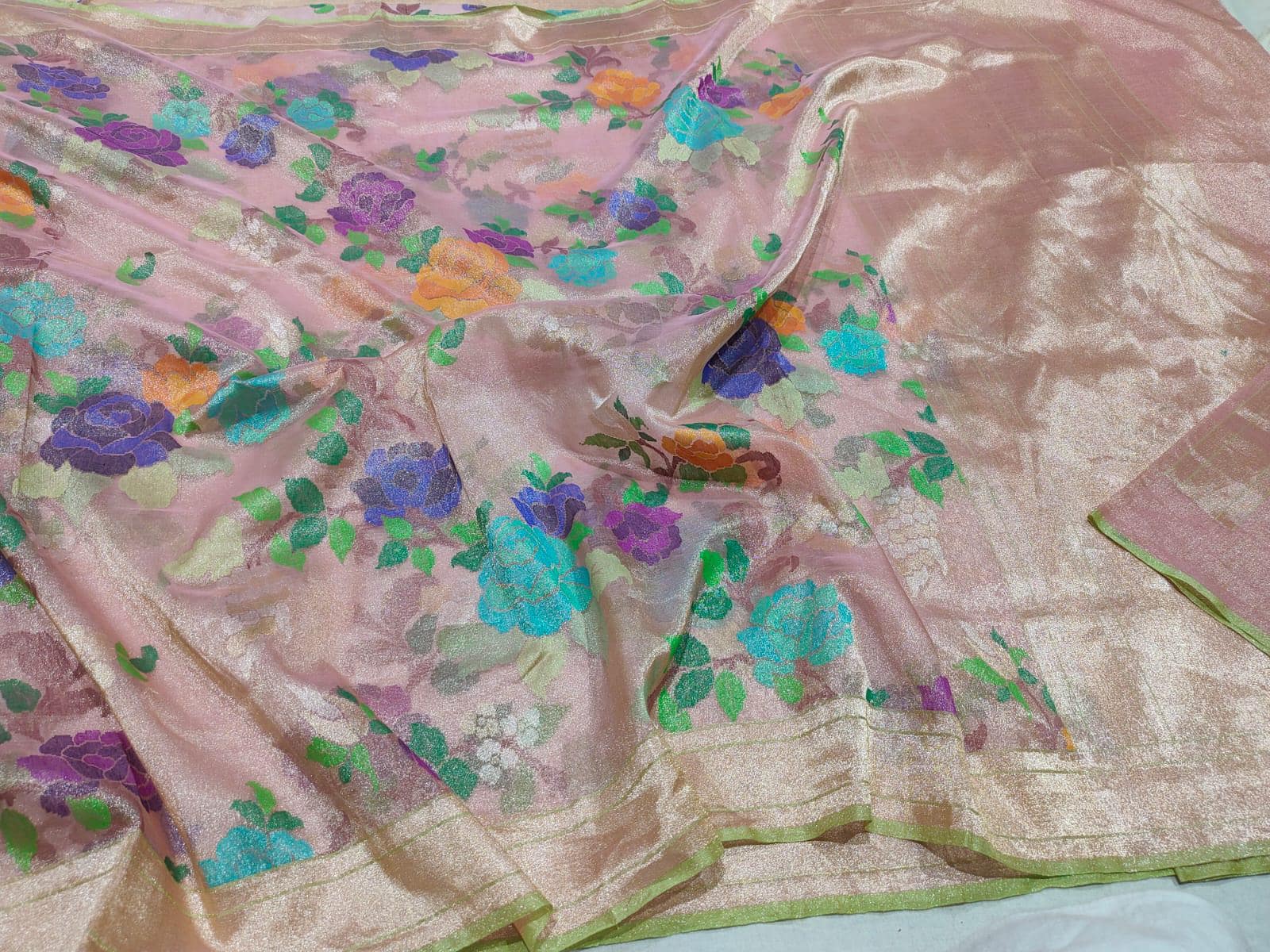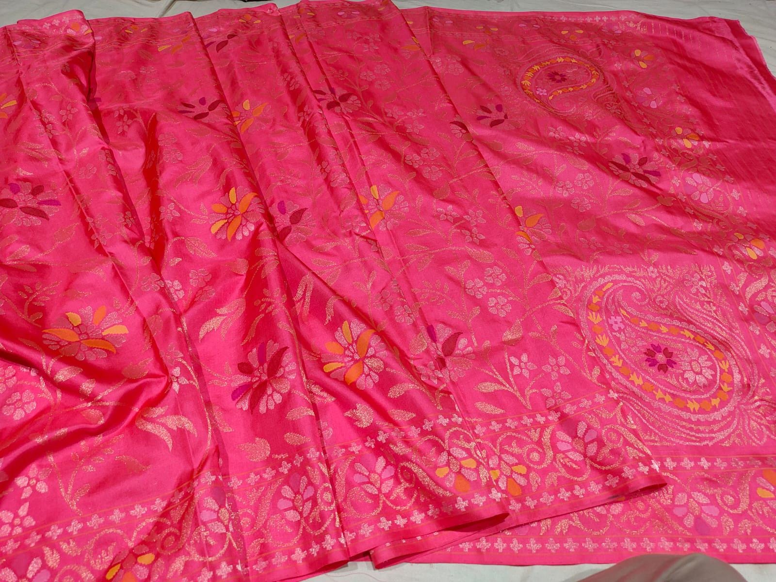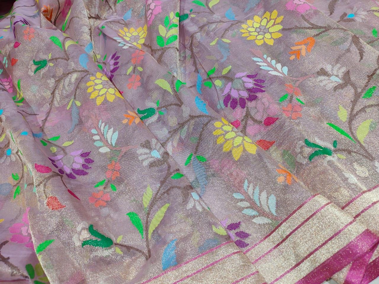 Katan Real gold Zari Saree by handloom weavers of Banaras, silk mark certified.